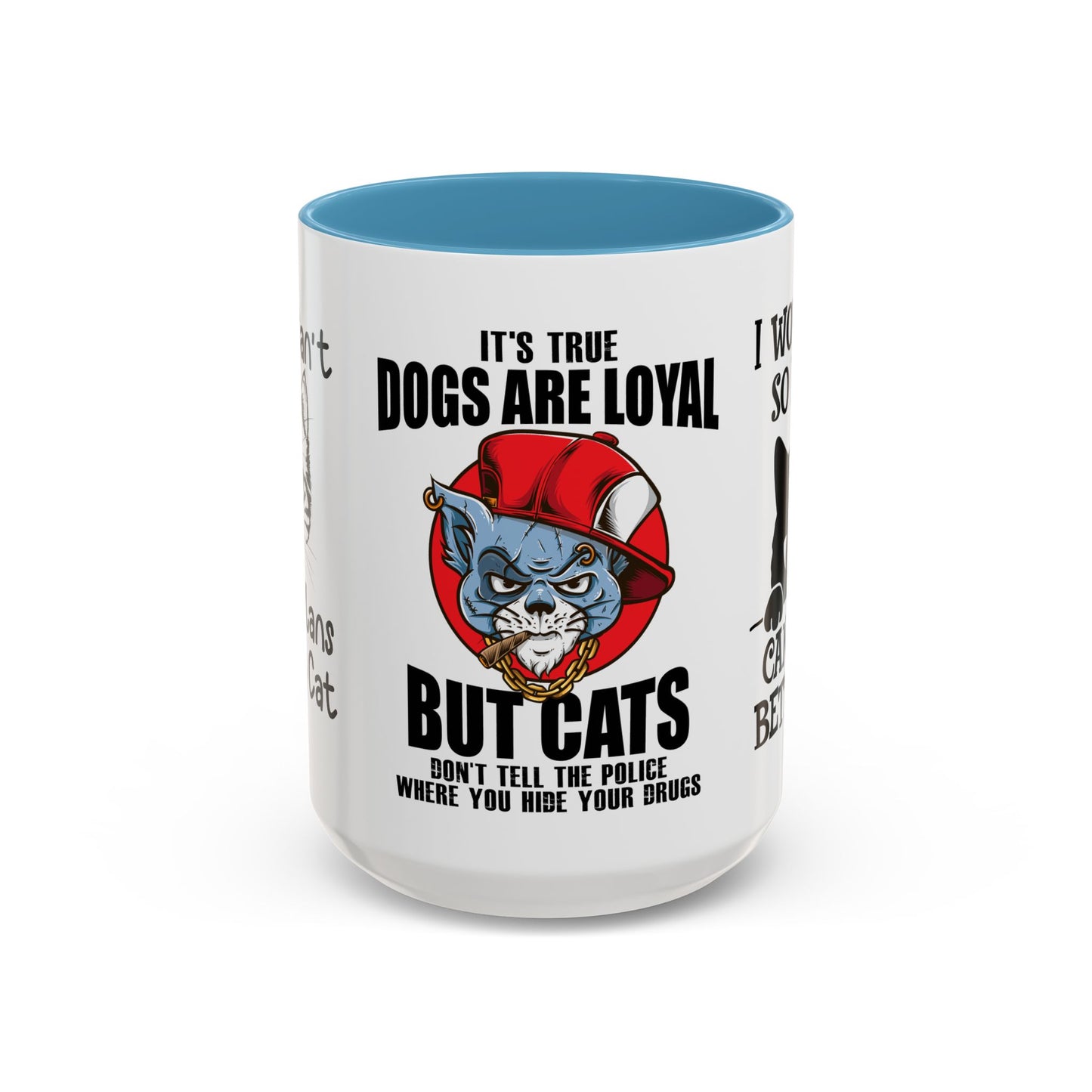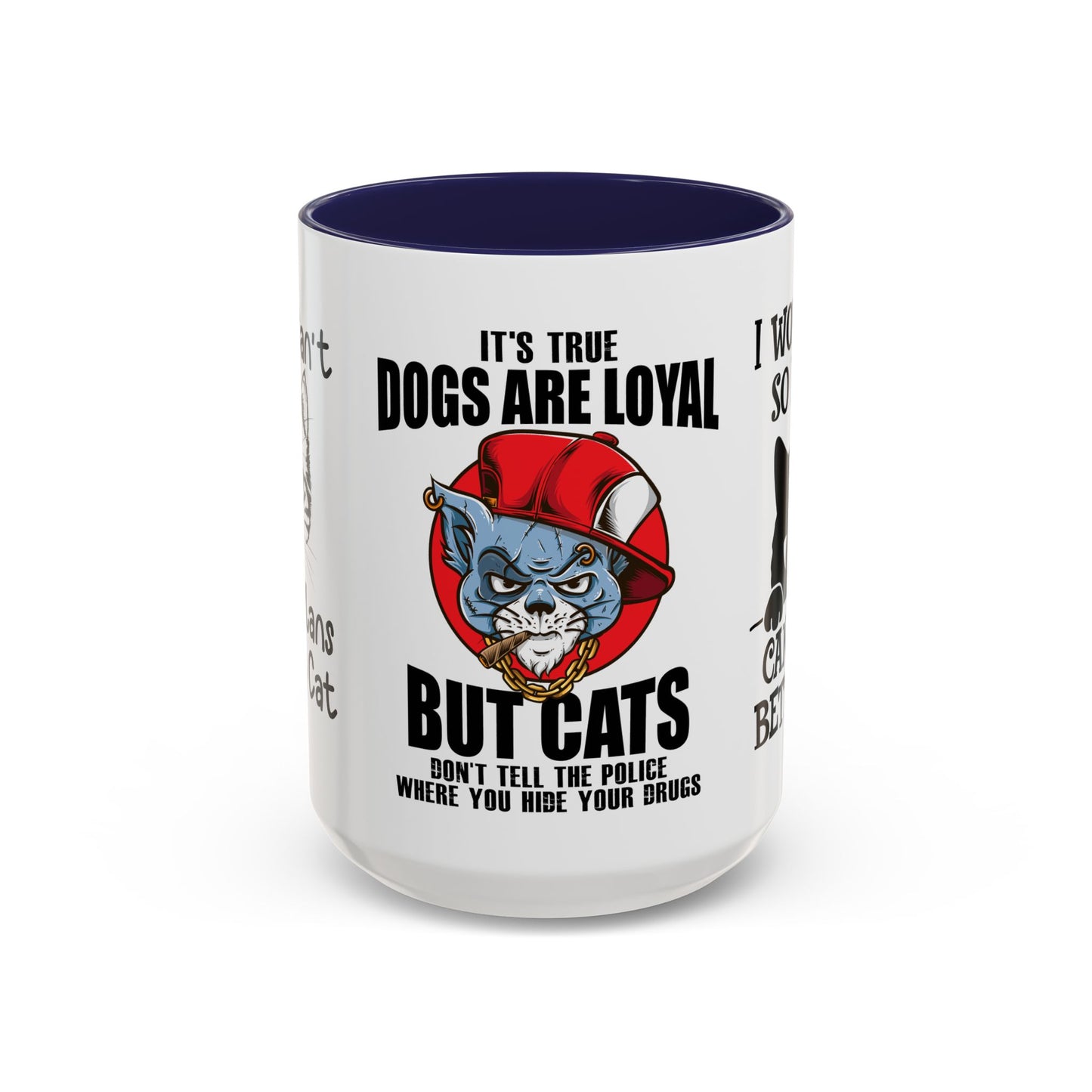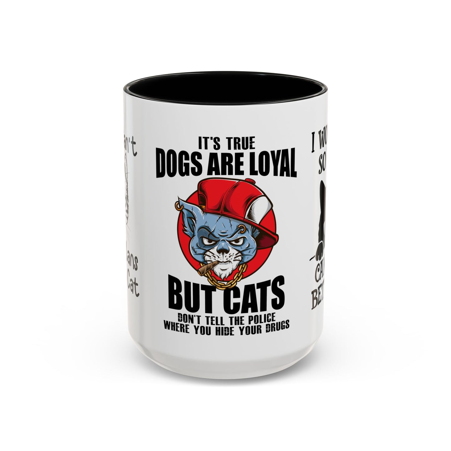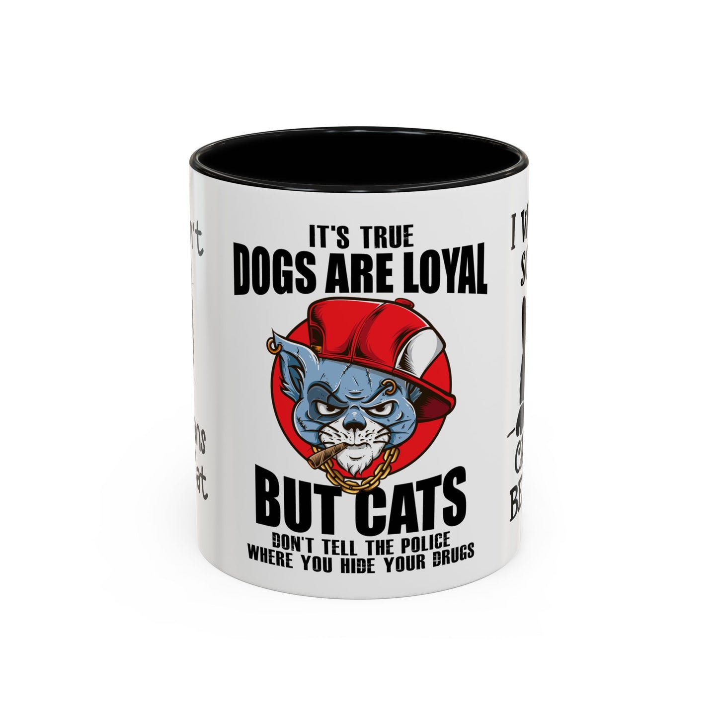 It's True Dogs Are Loyal, But Cats Don't Tell The Police Where You Hide Your Things - Accent Coffee Mug (11, 15oz)