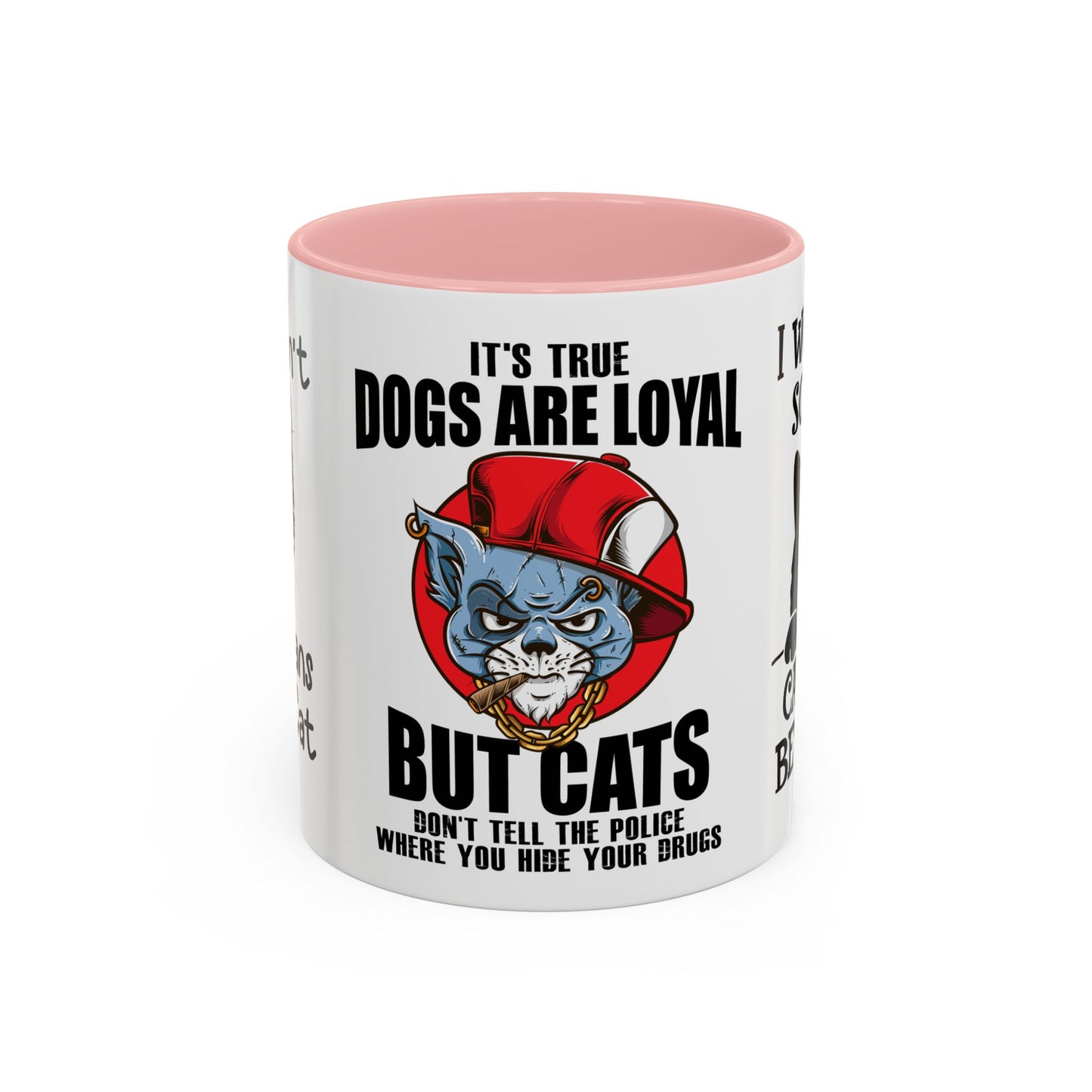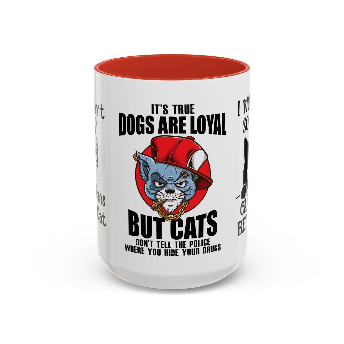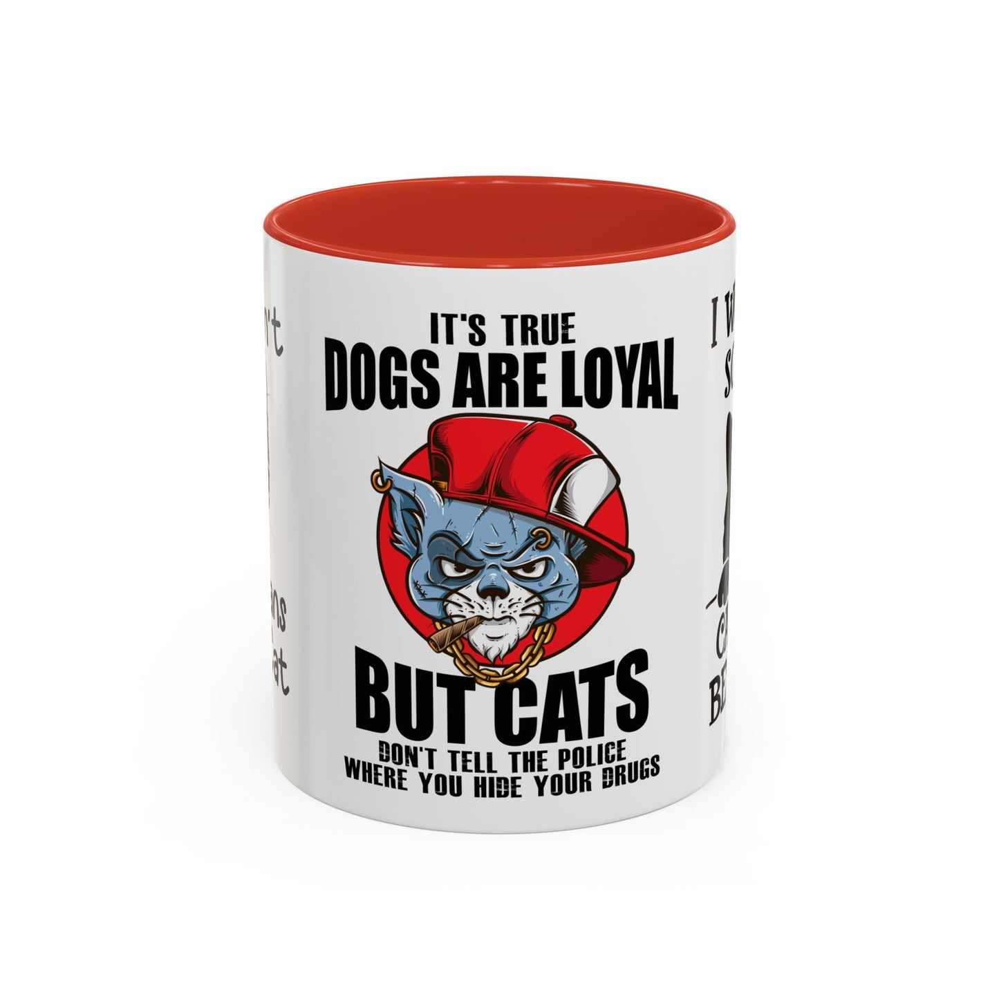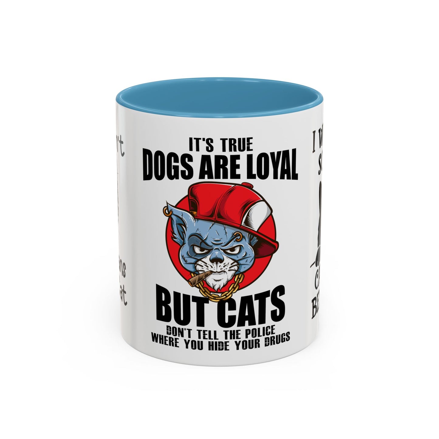 It's True Dogs Are Loyal, But Cats Don't Tell The Police Where You Hide Your Things - Accent Coffee Mug (11, 15oz)