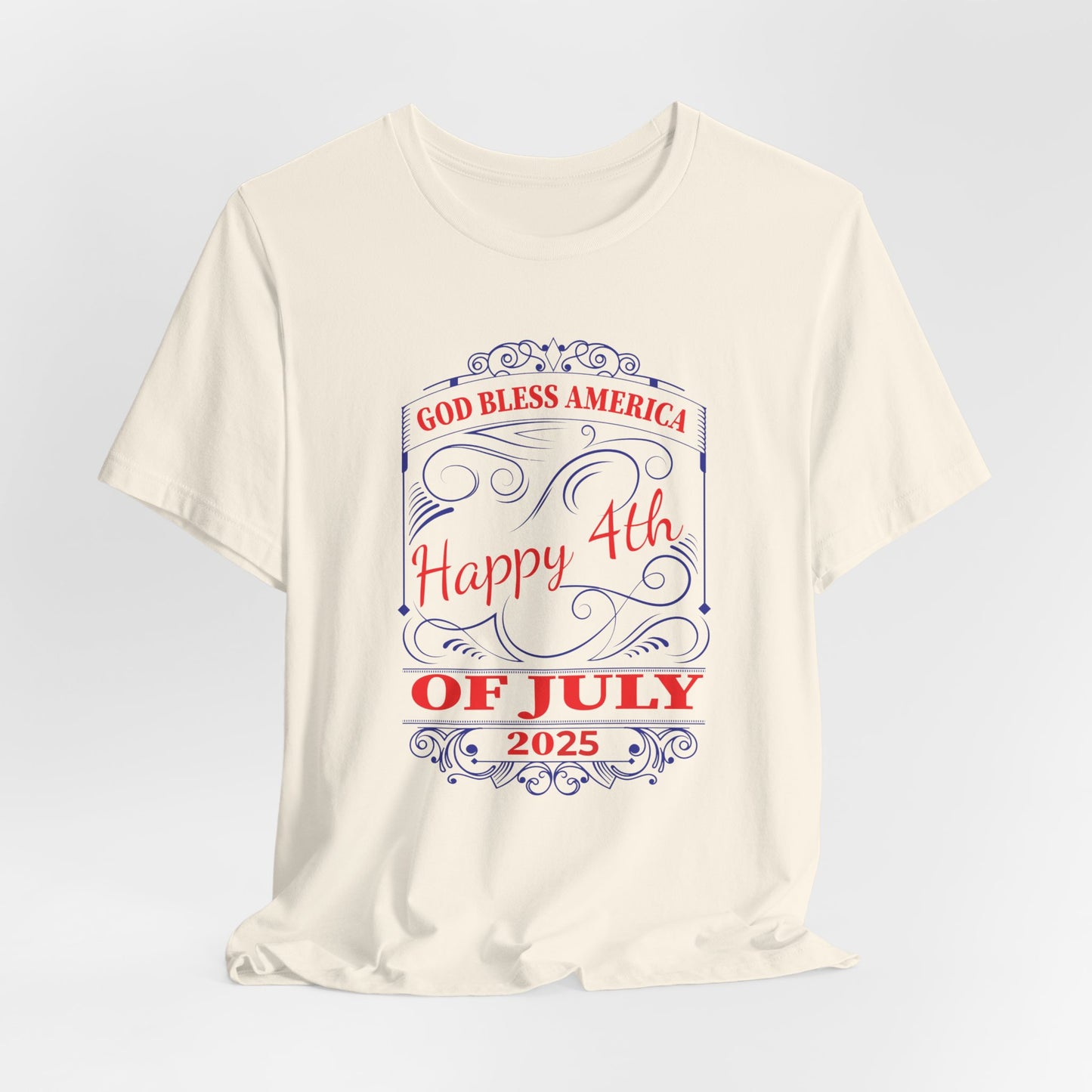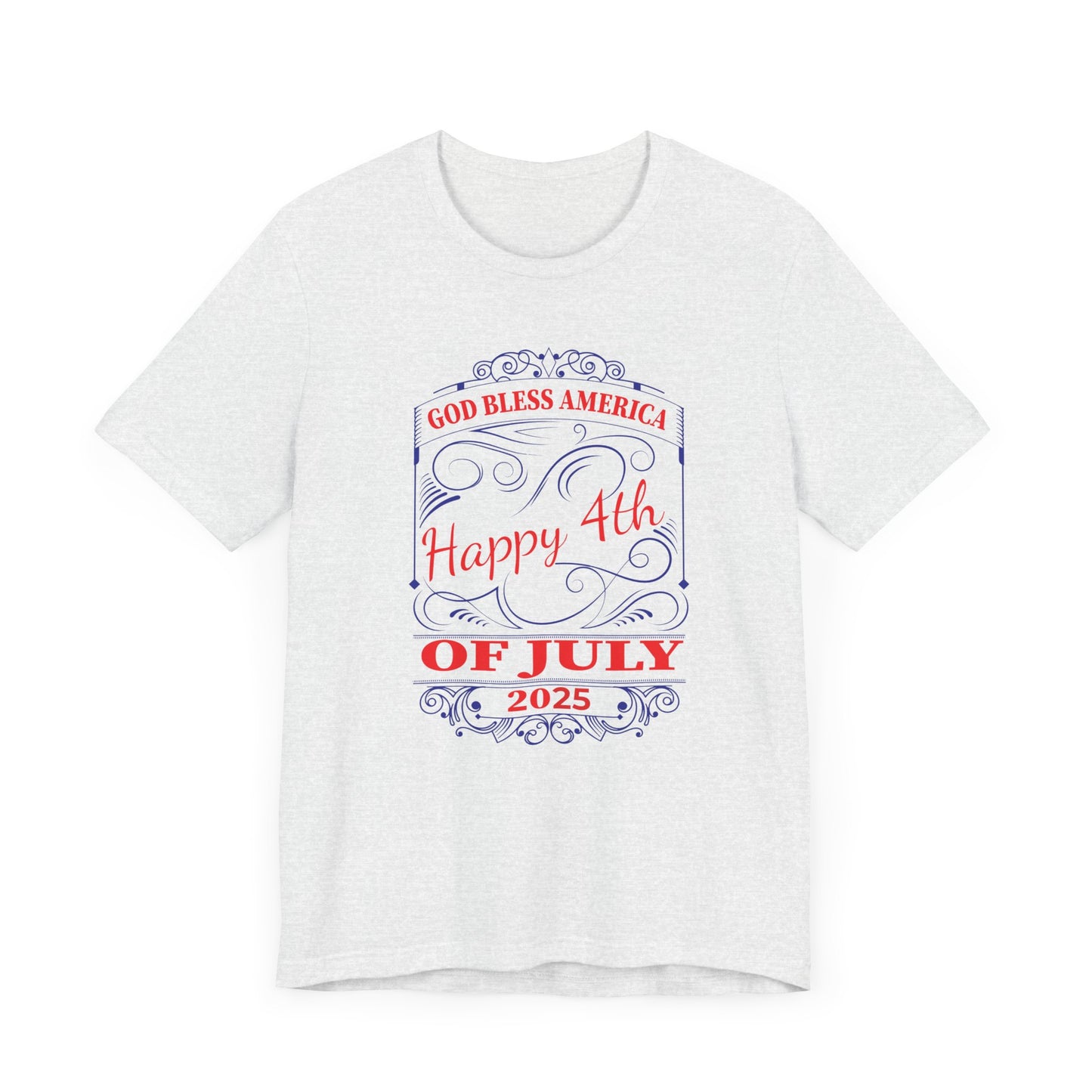 Celebrate the spirit of patriotism and independence with our "July 4, God Bless America" unisex jersey short sleeve tee. Perfect for showing your love for the USA on Independence Day, this tee combines style with a heartfelt message.