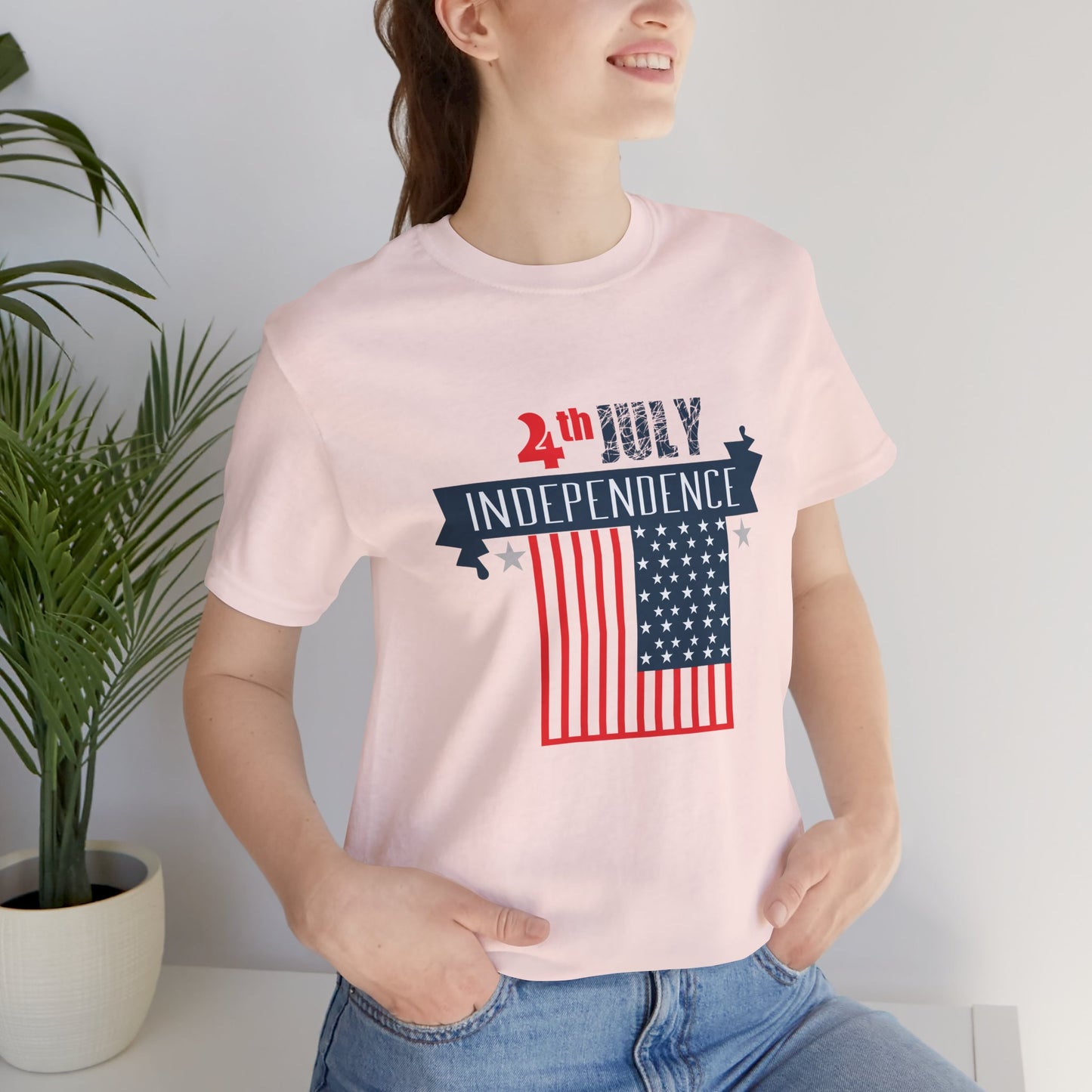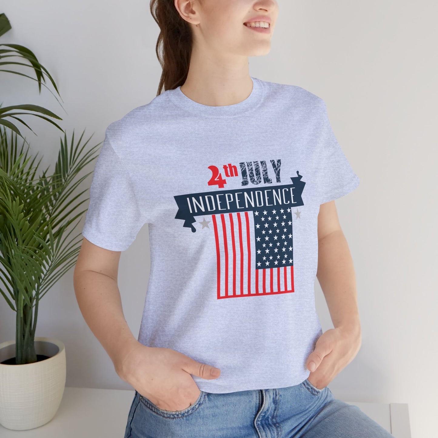Celebrate the spirit of Independence Day in style with our "July 4, Independence" unisex jersey short sleeve tee. This tee is perfect for showing your patriotic pride and commemorating this historic day.