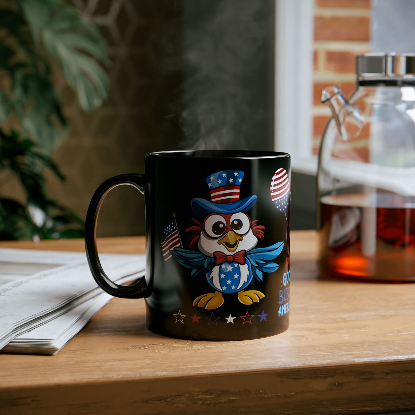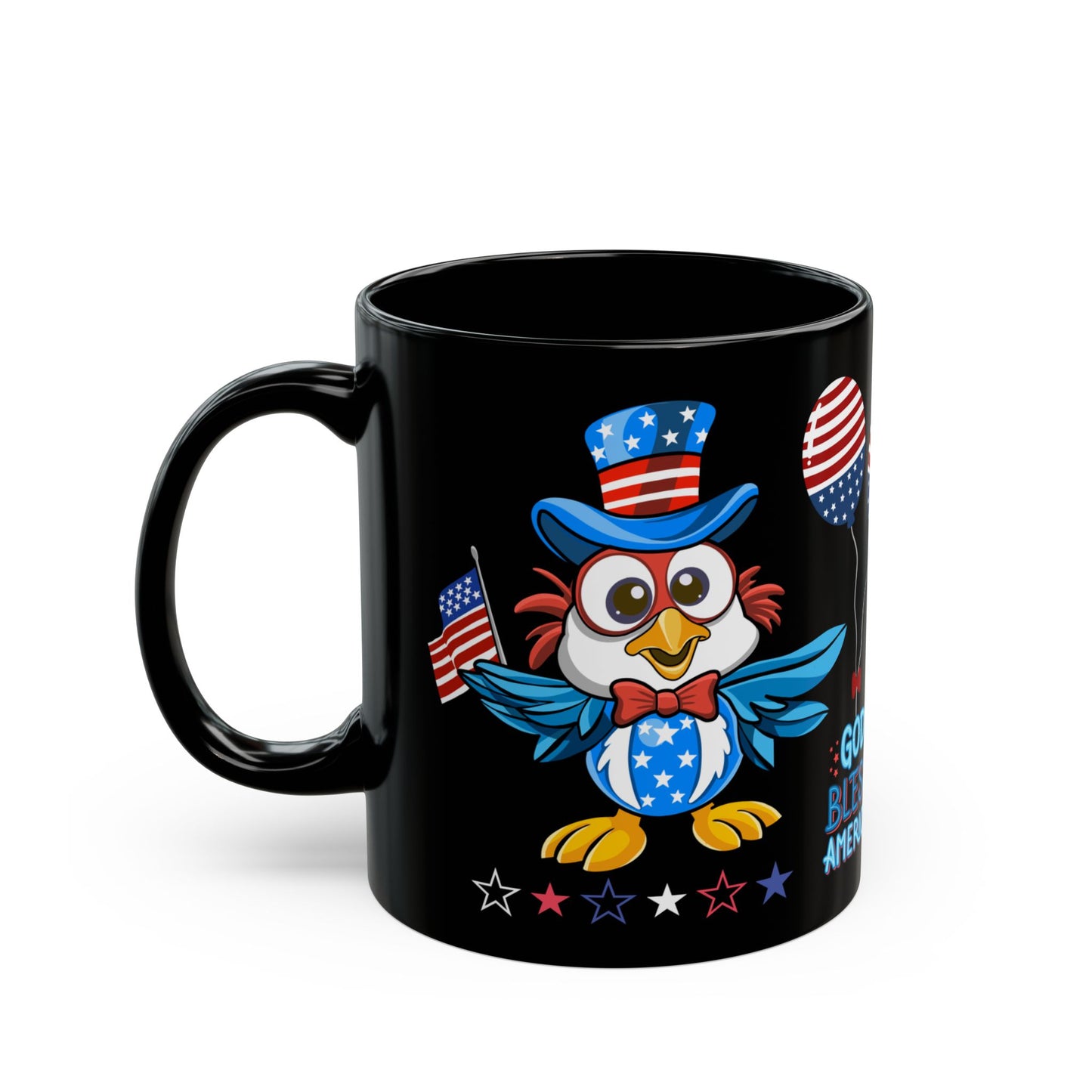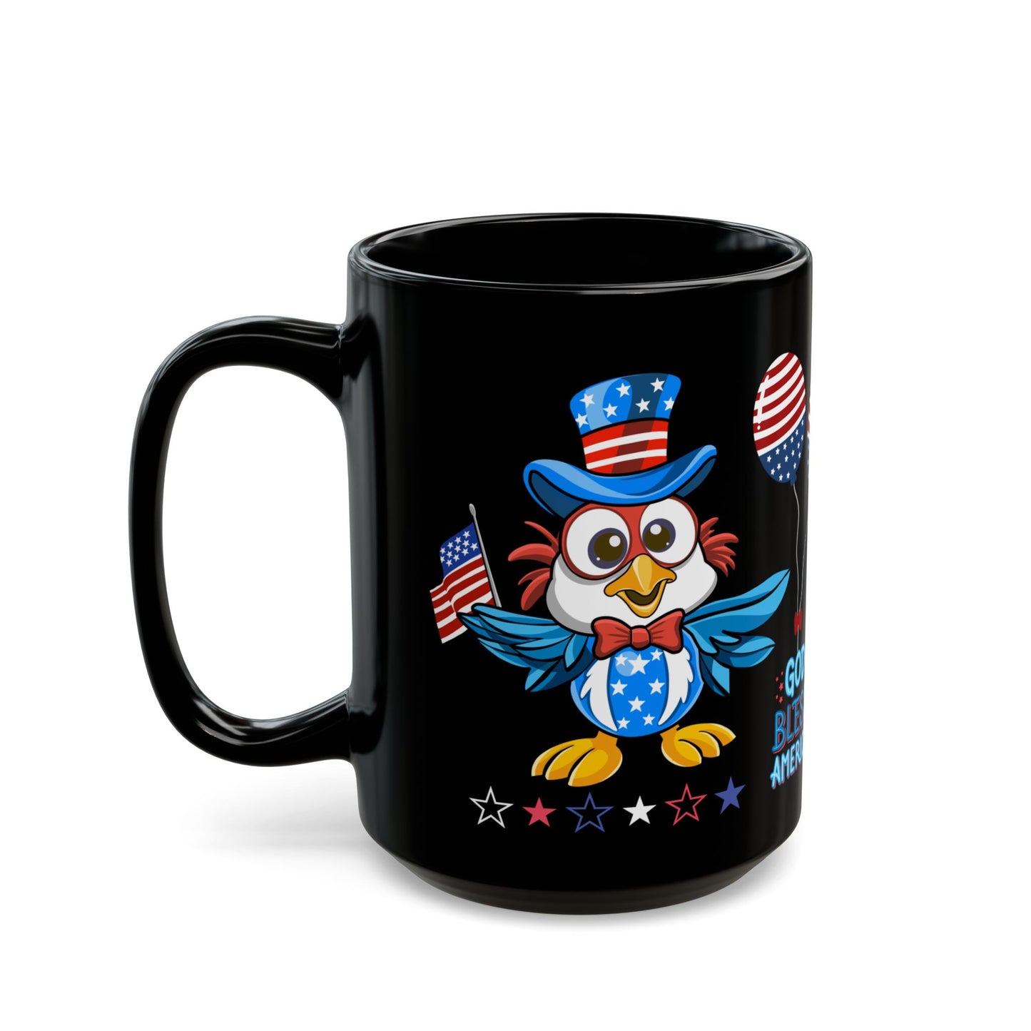 - Bold Patriotic Design: Featuring a majestic eagle with American flag elements, this black mug is perfect for Independence Day celebrations and daily use.