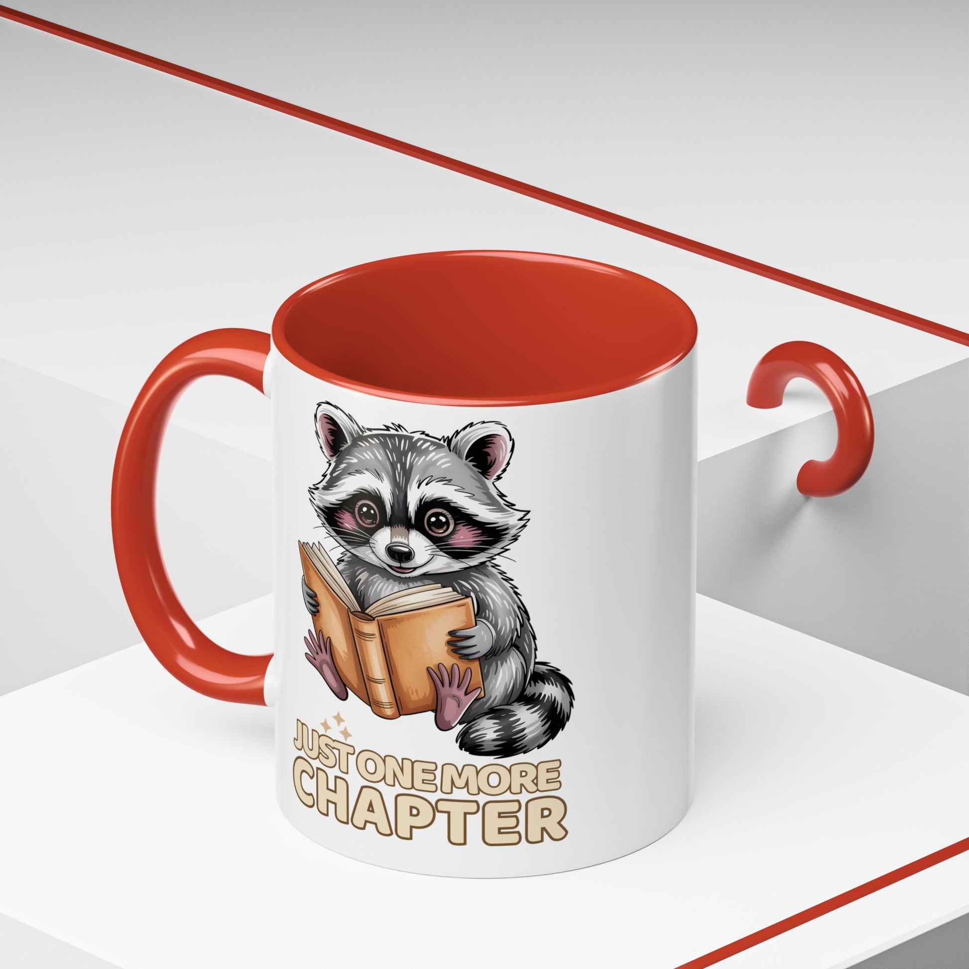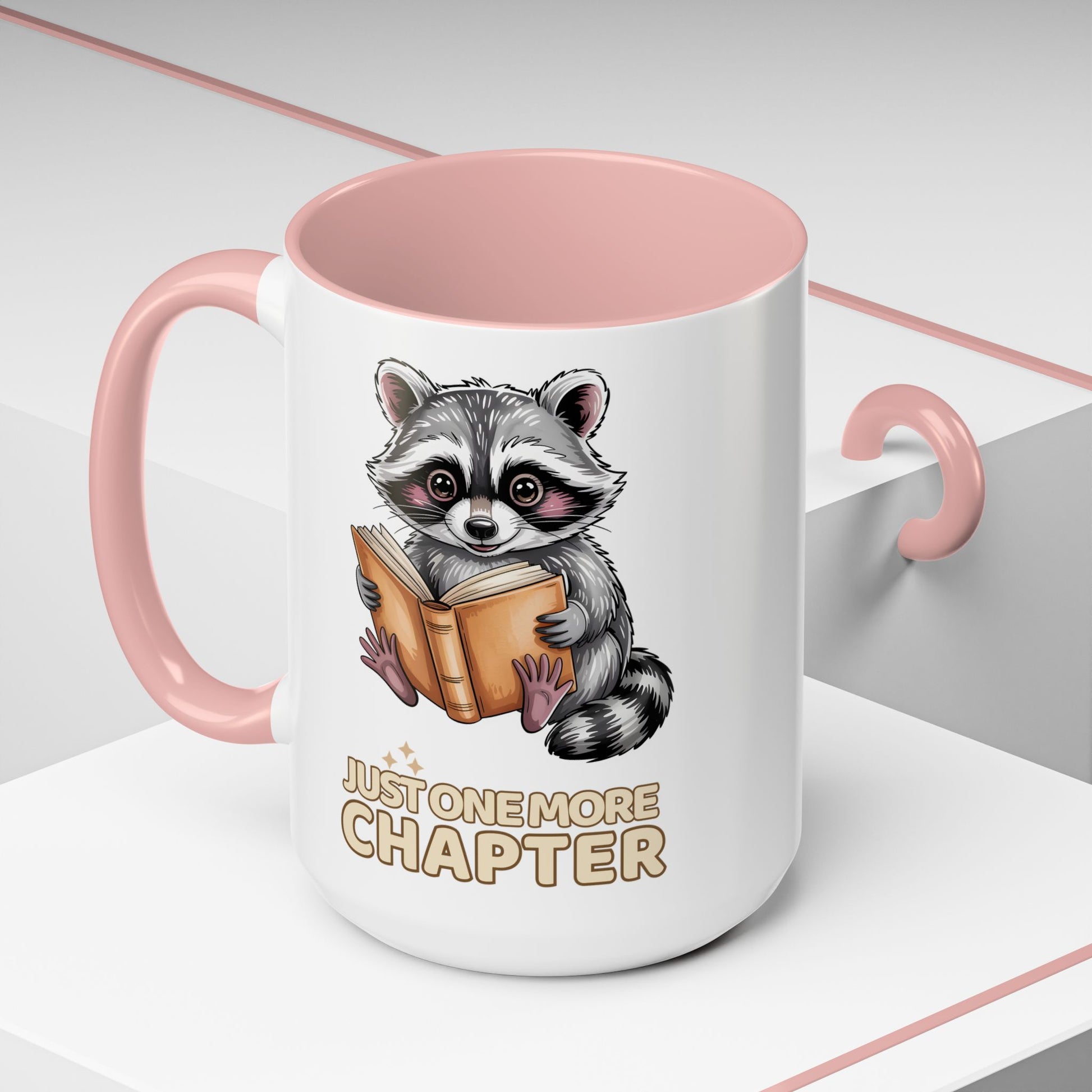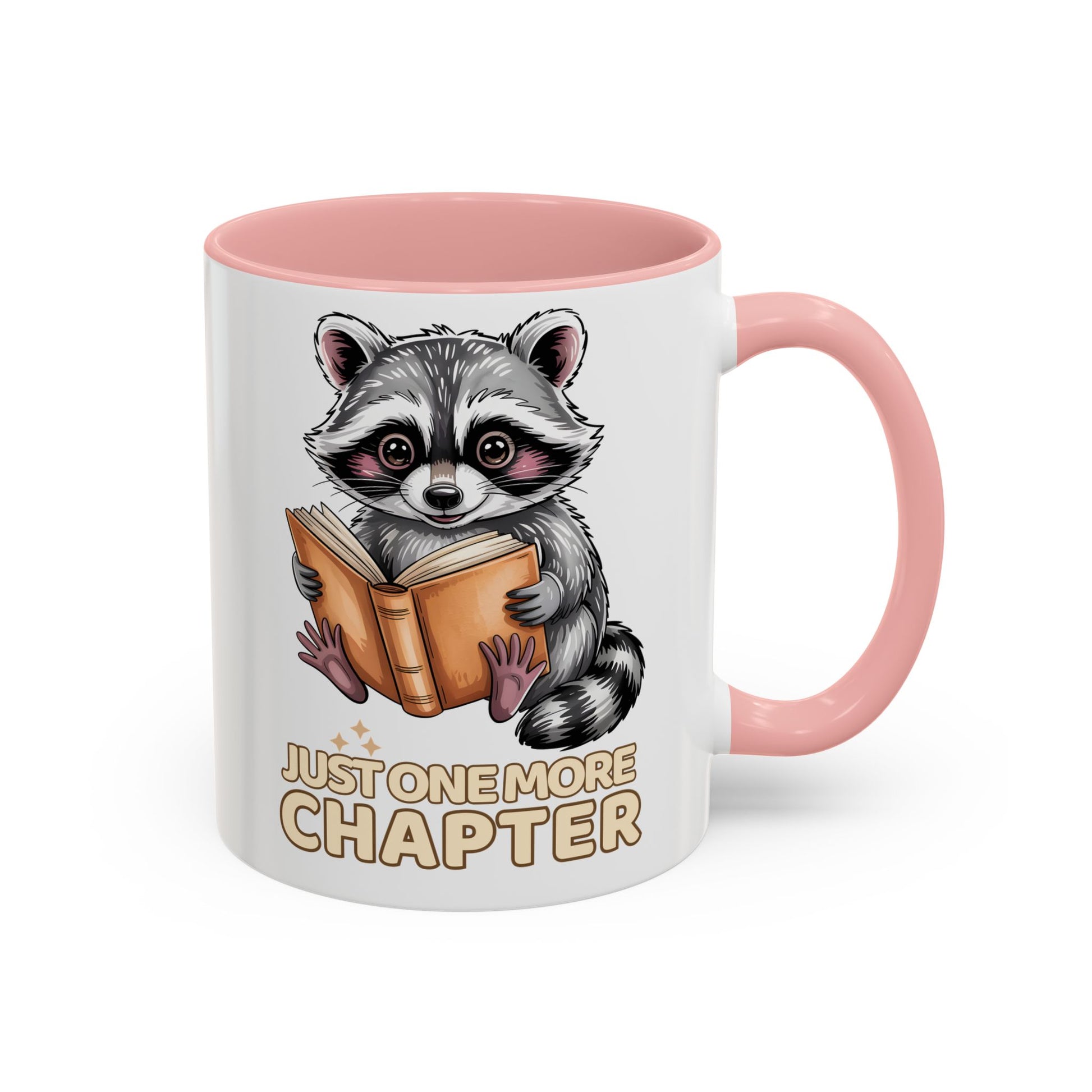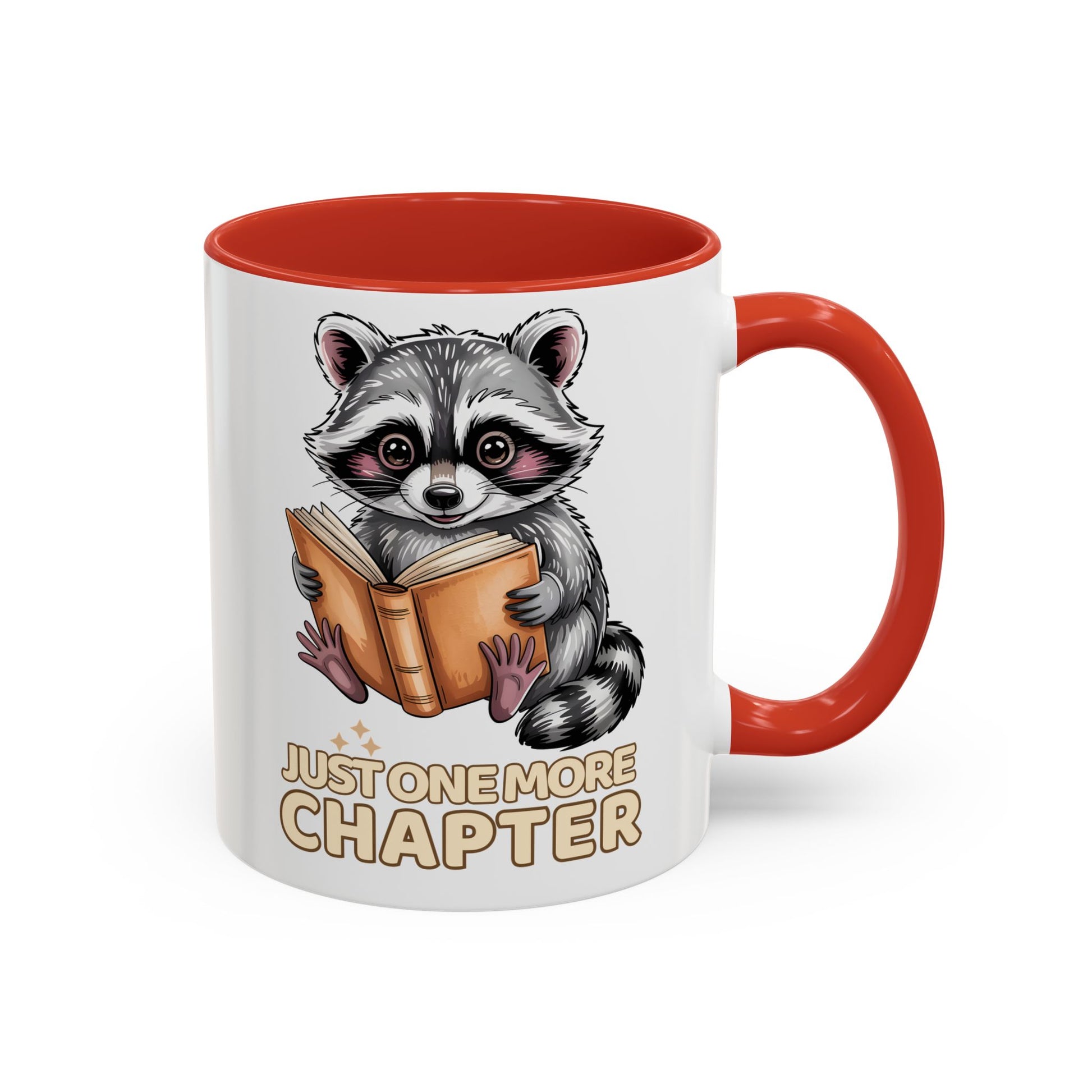 Just One More Chapter Mug – Raccoon Reading Coffee Mug, Book Lover Gift for Teacher or Librarian (11oz / 15oz)- 14792