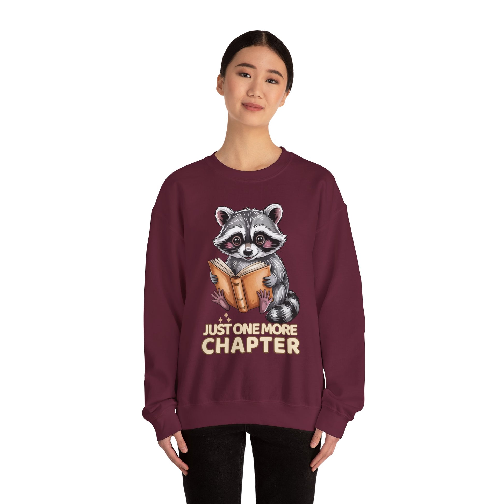Just One More Chapter Sweatshirt – Cute Raccoon Reading Graphic, Book Lover Gift for Teacher or Librarian - 14791