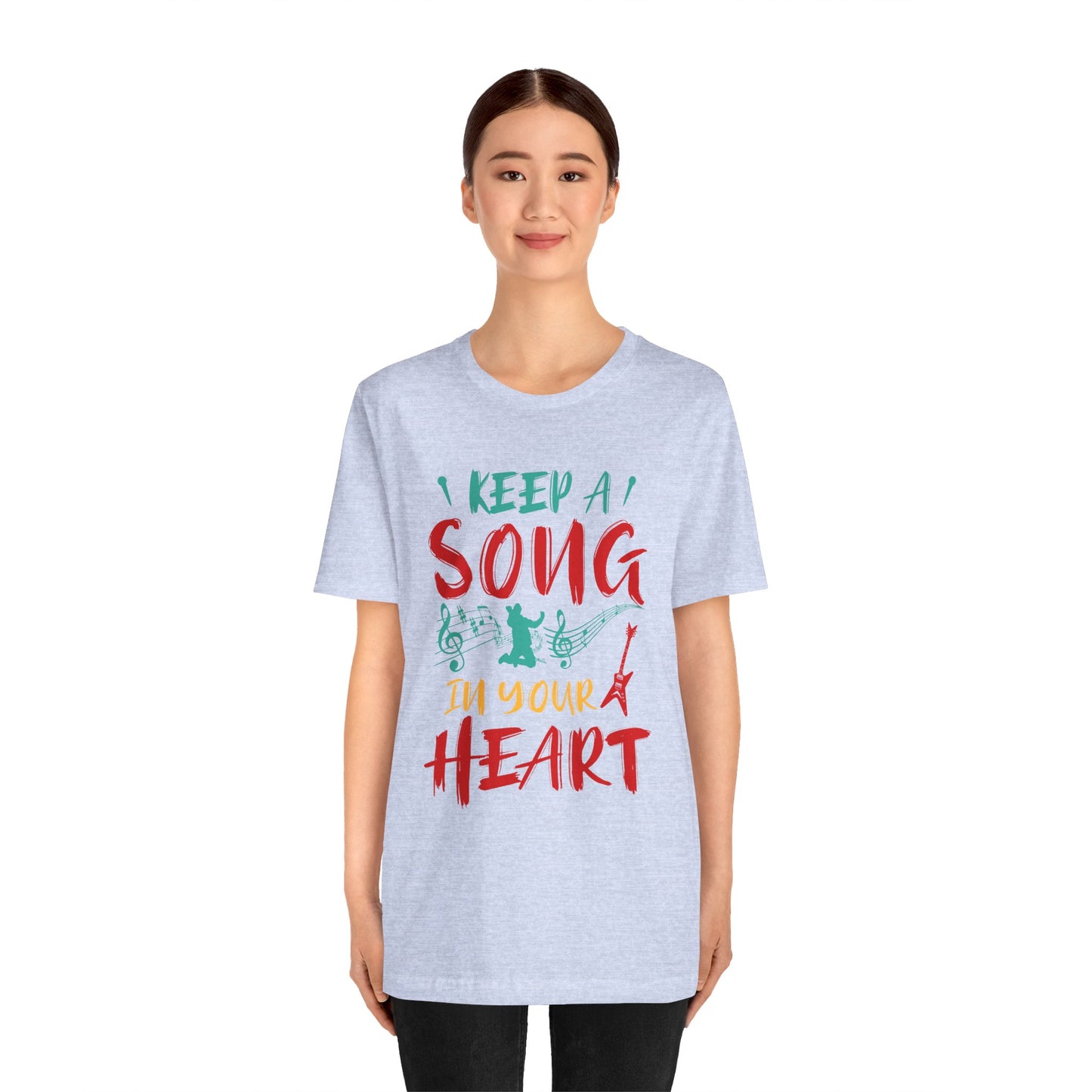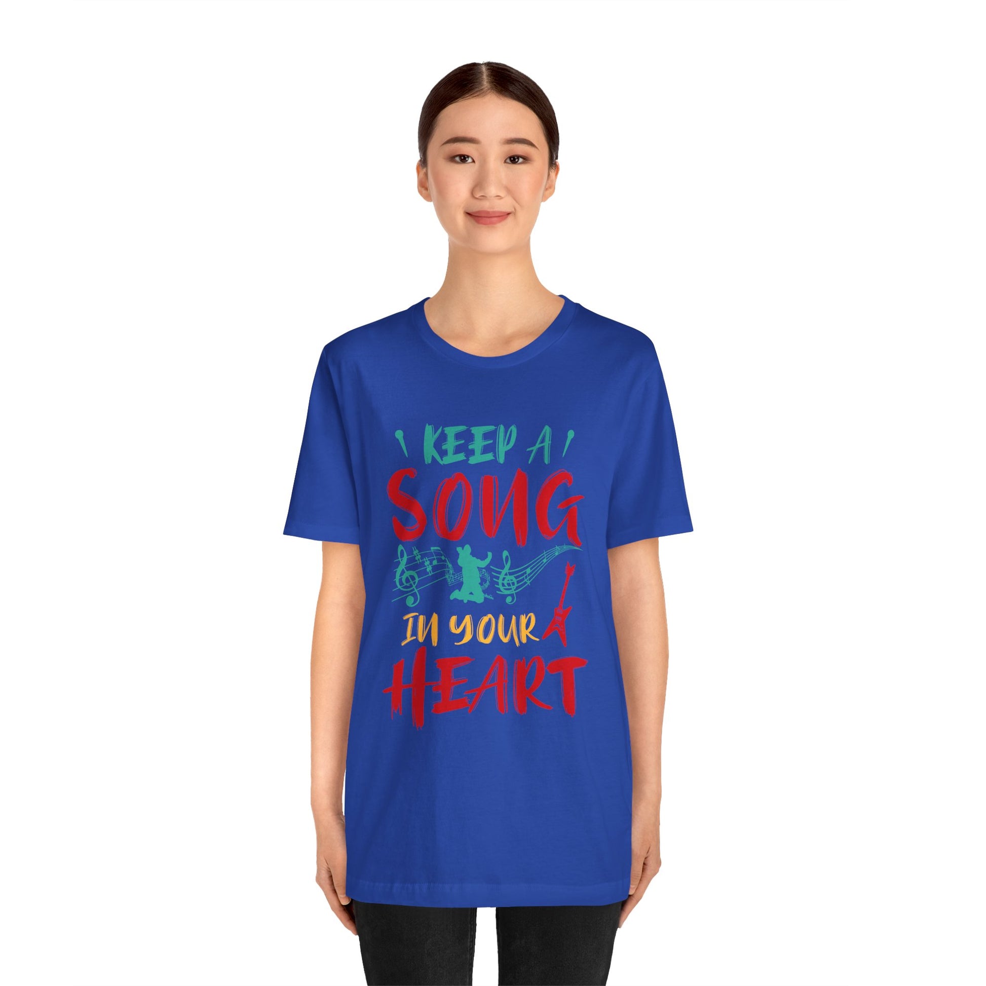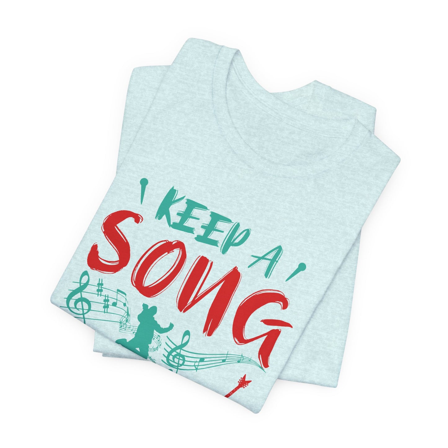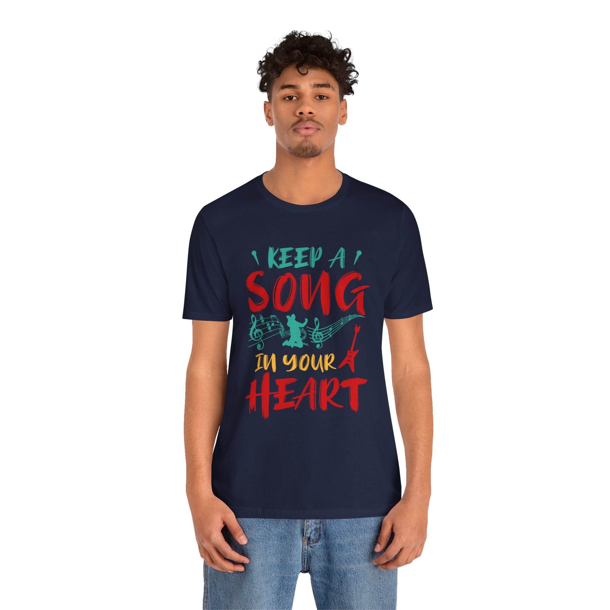 Carry the melody of life with our "Keep A Song In Your Heart" Unisex Jersey Short Sleeve Tee. Whether you’re at a music festival, enjoying a casual day out, or just spreading positivity, this tee is the perfect way to express your love for music and its uplifting power. Get yours today and let the world know that a song in your heart makes everything better!