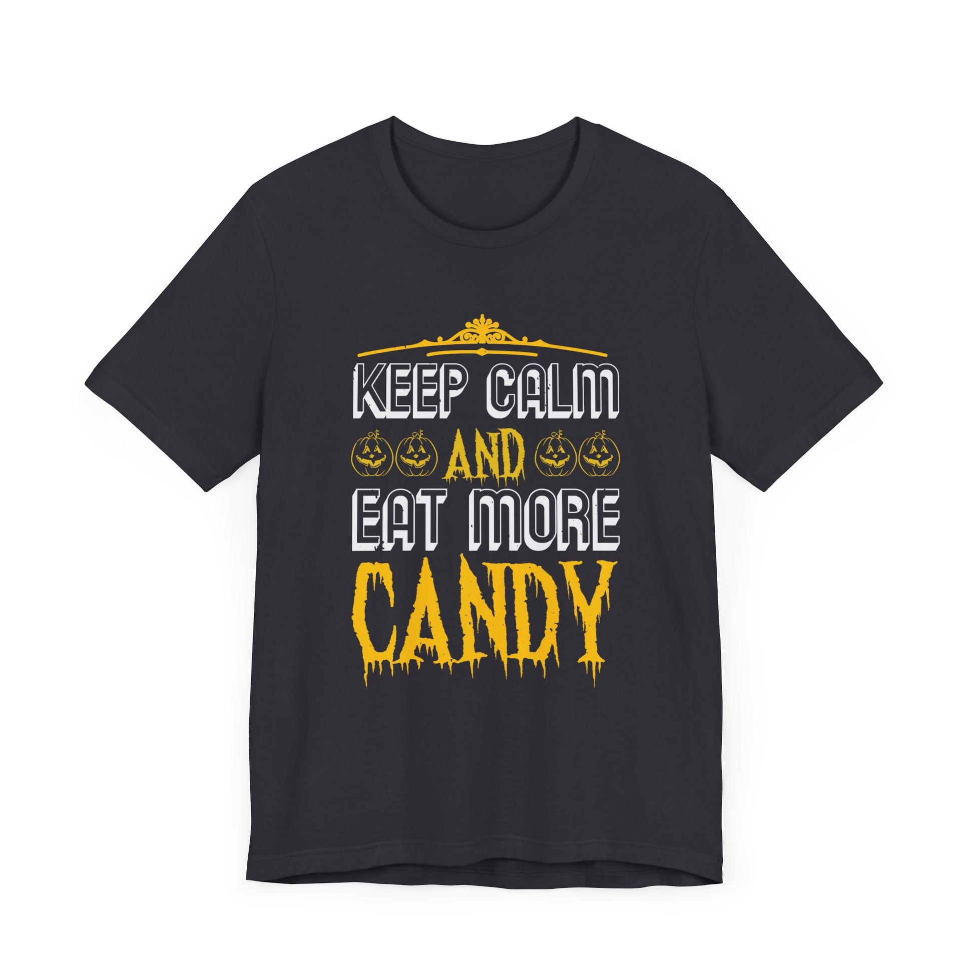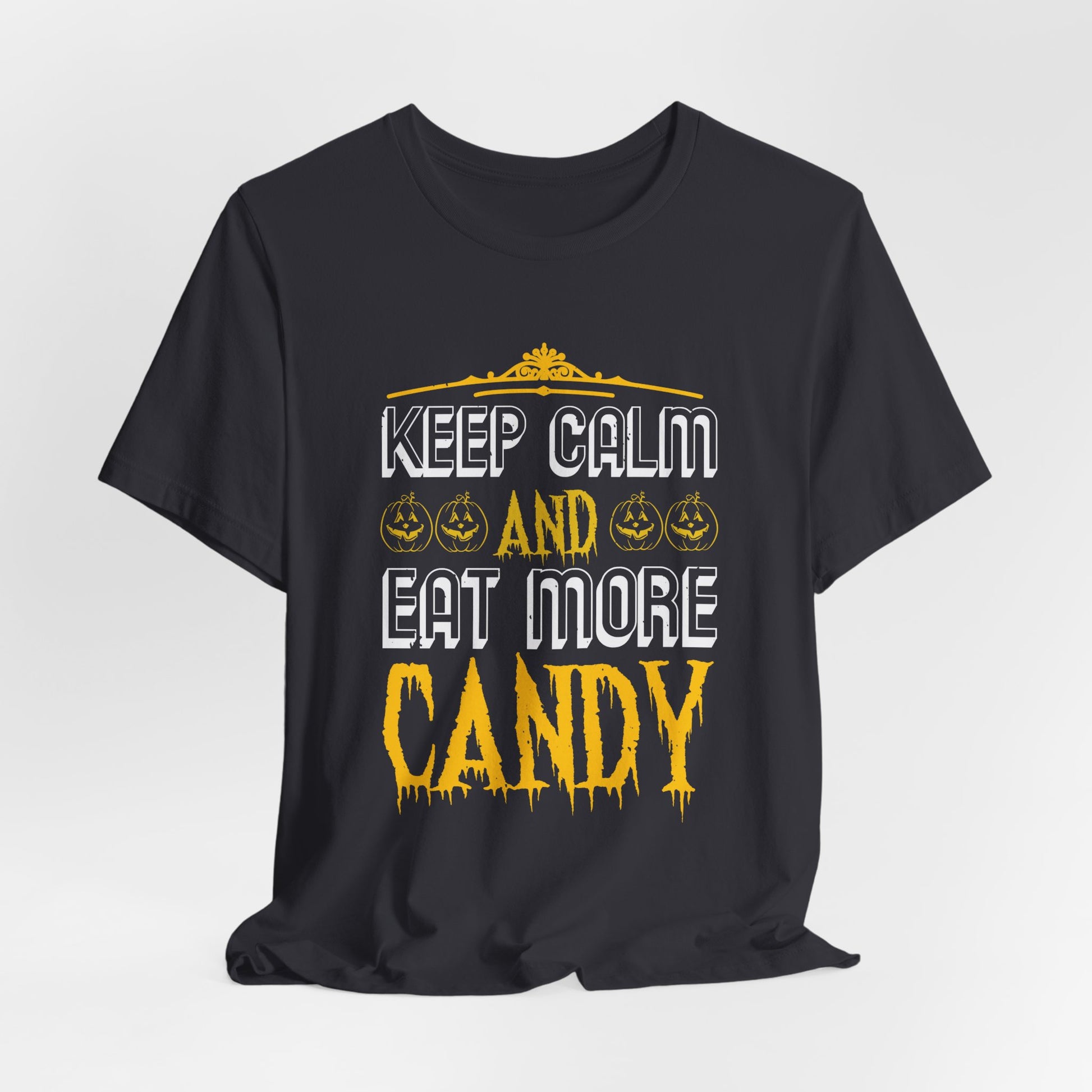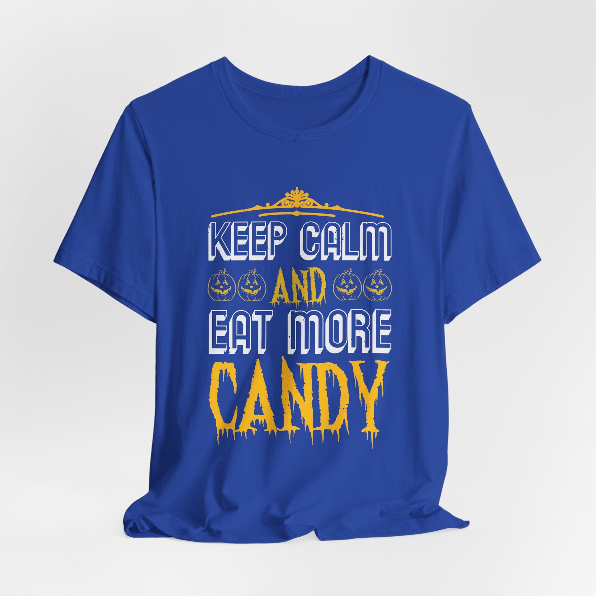 Celebrate Halloween with a sweet twist in the “Keep Calm and Eat More Candy” Unisex Jersey Short Sleeve Tee! This fun, playful design is perfect for candy lovers who enjoy indulging in Halloween treats. With a soft cotton feel and comfortable fit, this tee is great for trick-or-treating, parties, or just lounging while enjoying your favorite sweets.