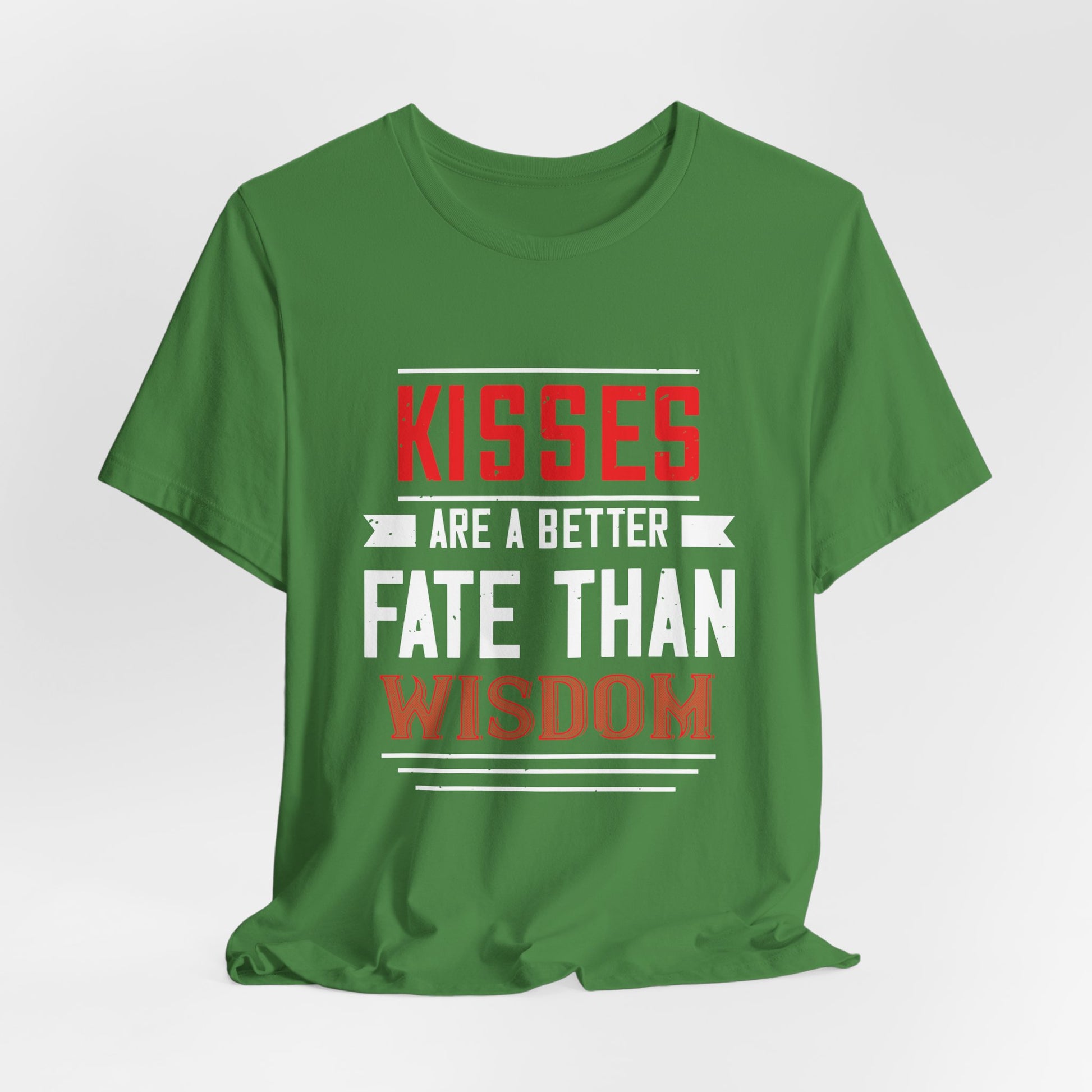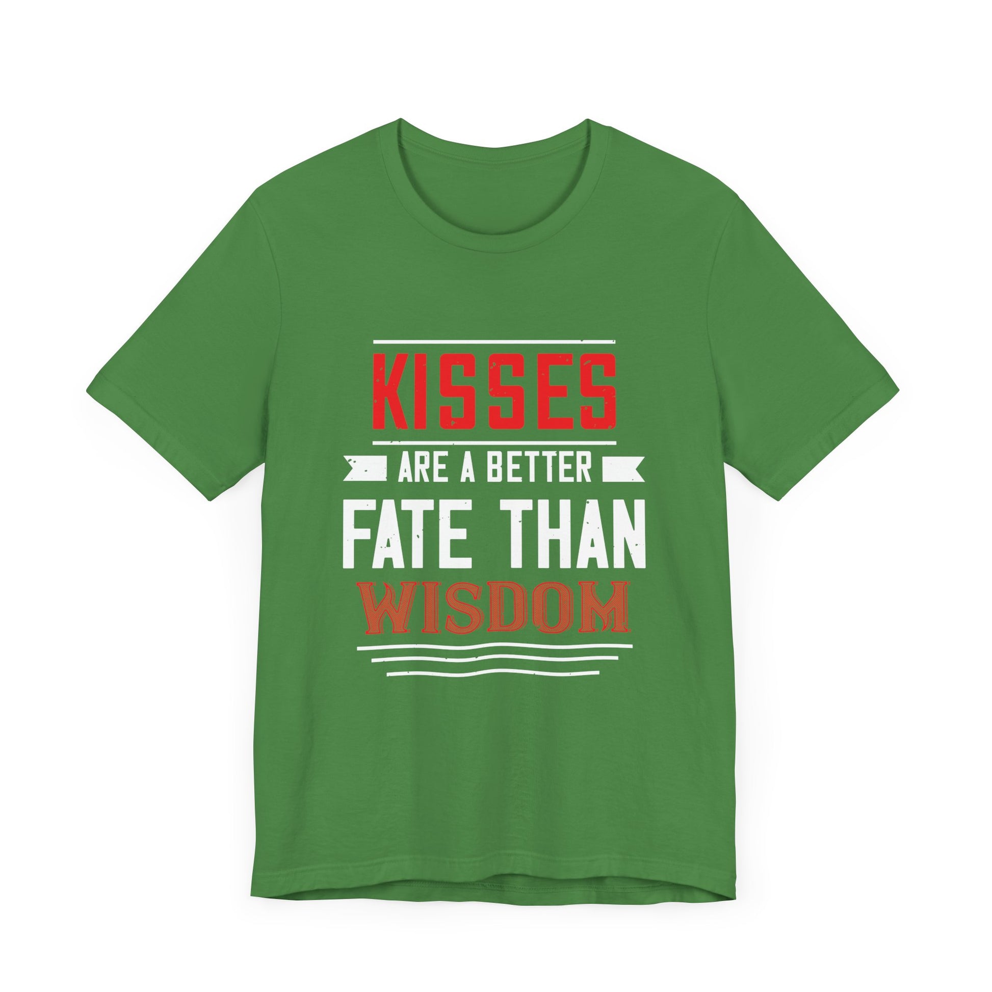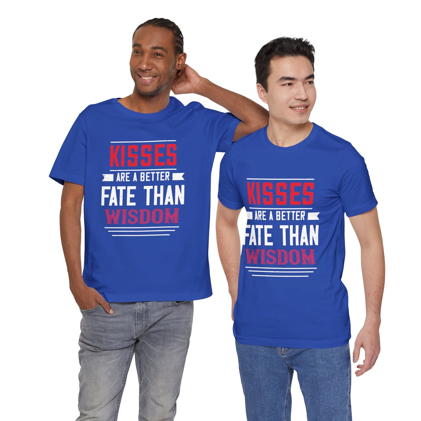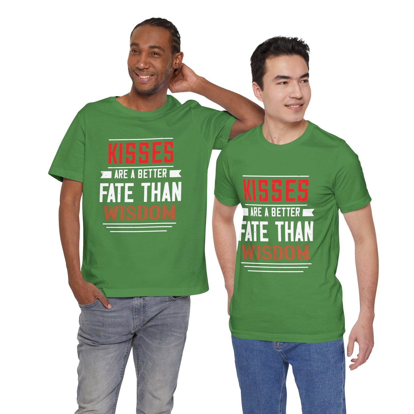 Make a statement with this whimsical tee that values love and kisses above all else. The "Kisses Are a Better Fate Than Wisdom" shirt is a delightful way to show your appreciation for the simple, heartfelt pleasures in life.