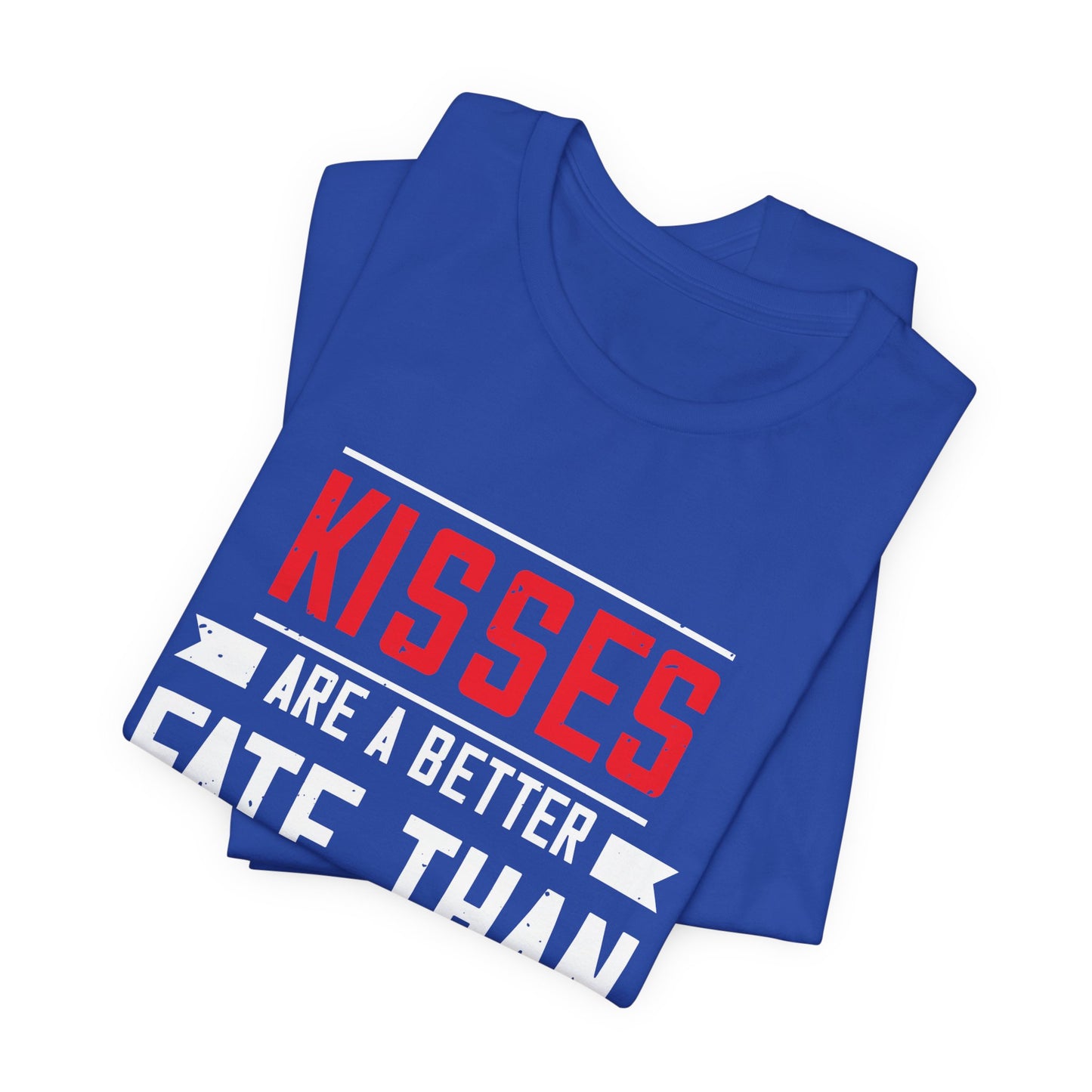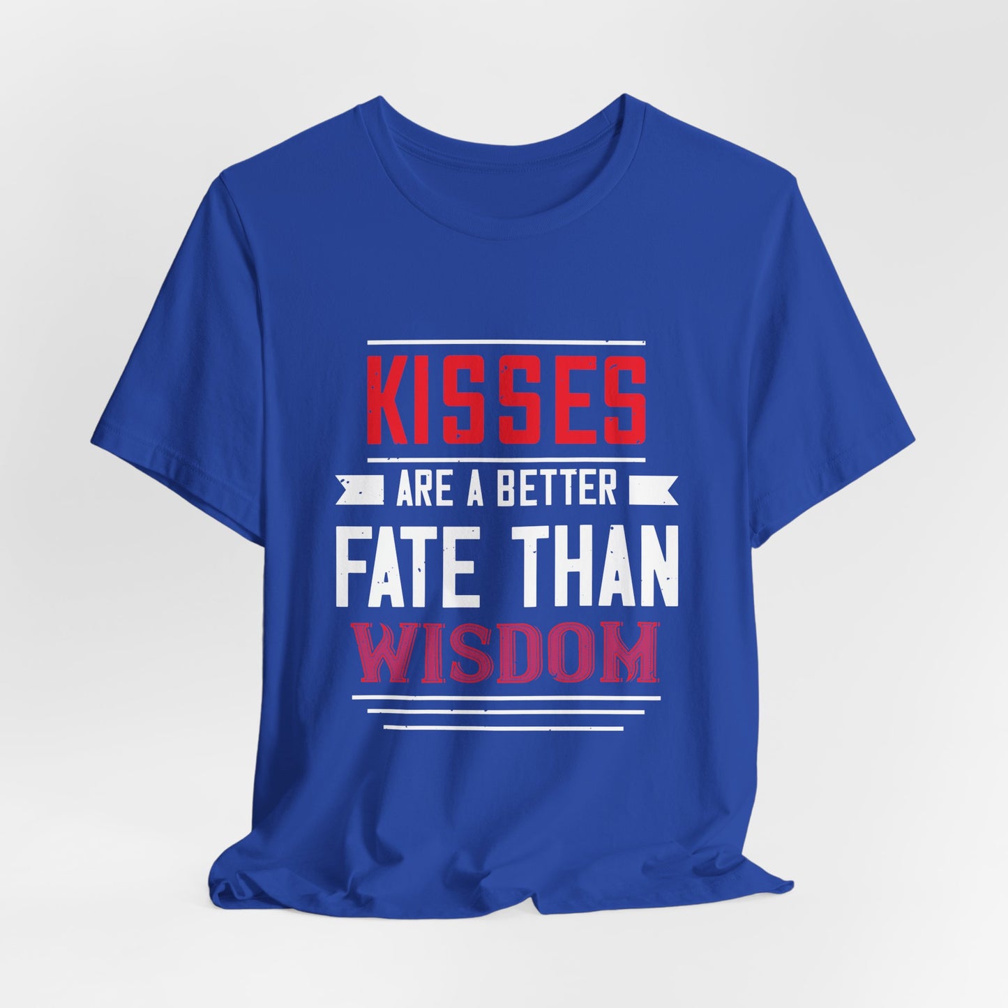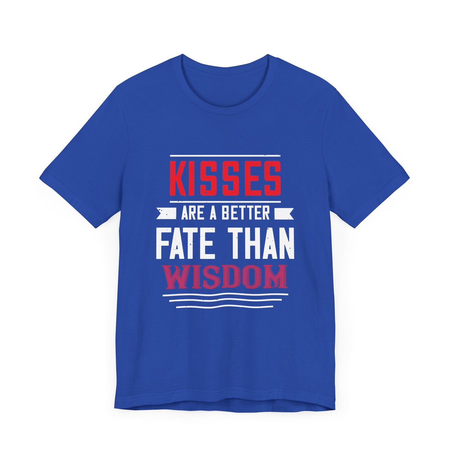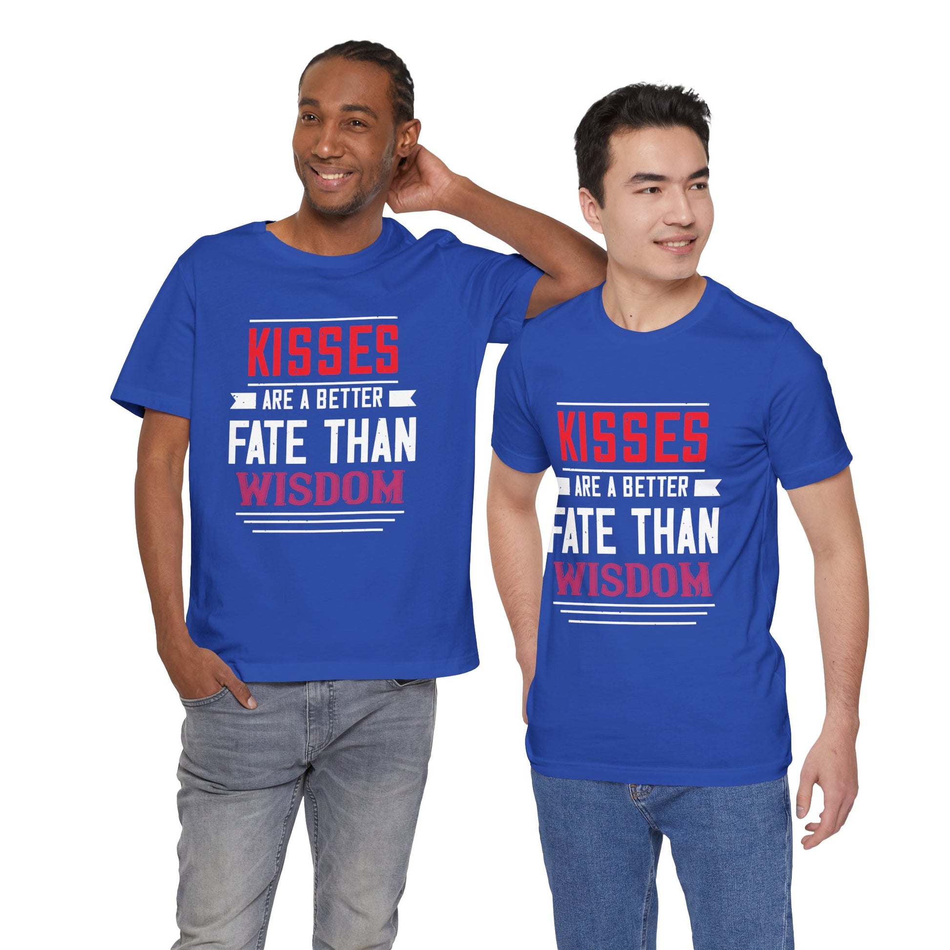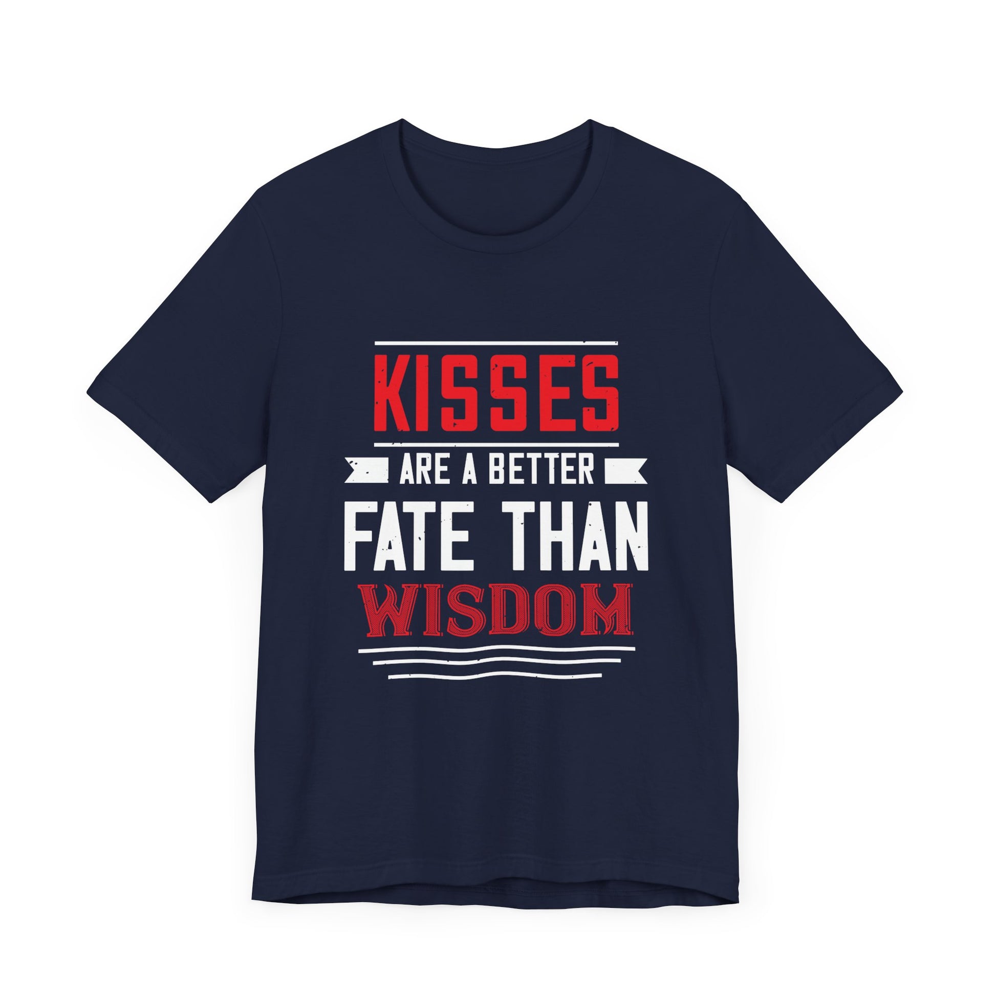 Embrace the power of affection with the "Kisses Are a Better Fate Than Wisdom" Unisex Jersey Short Sleeve Tee. This tee combines a playful message with a touch of romantic charm, celebrating the idea that love and kisses can often be more fulfilling than wisdom alone. Perfect for those who value love and warmth in their lives, this tee makes a fun statement that resonates with anyone who cherishes the simple joys of affection.