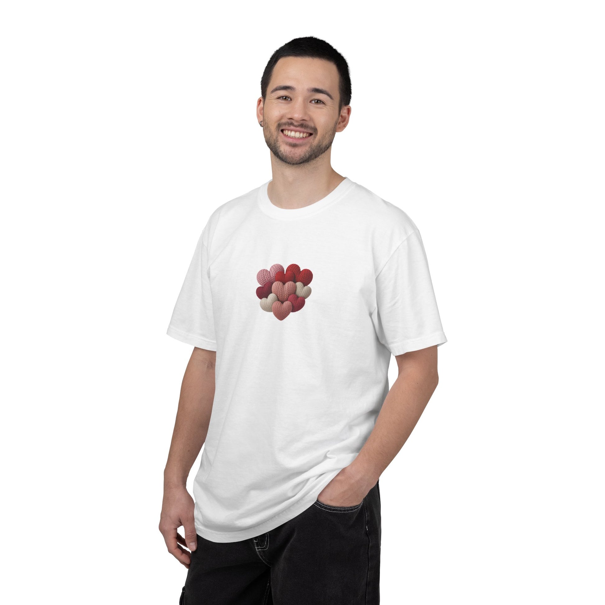 Simple, sweet, and full of love. The Knitted Hearts Valentine Graphic T-Shirt features a beautiful cluster of knitted-style hearts in warm romantic tones, designed to feel cozy, timeless, and effortlessly meaningful.