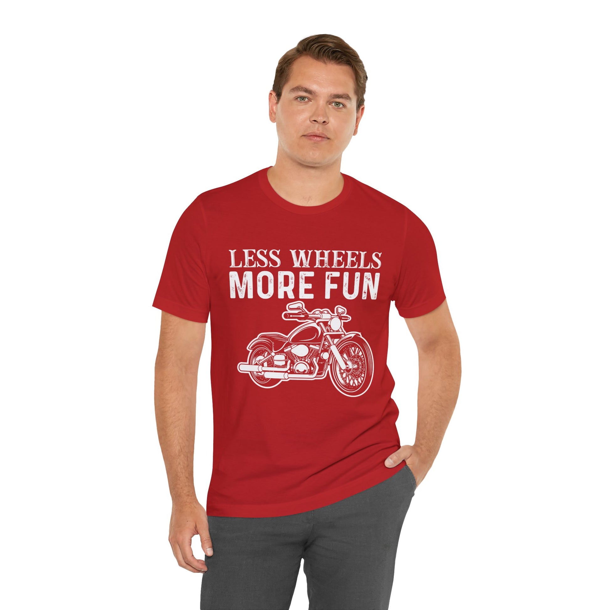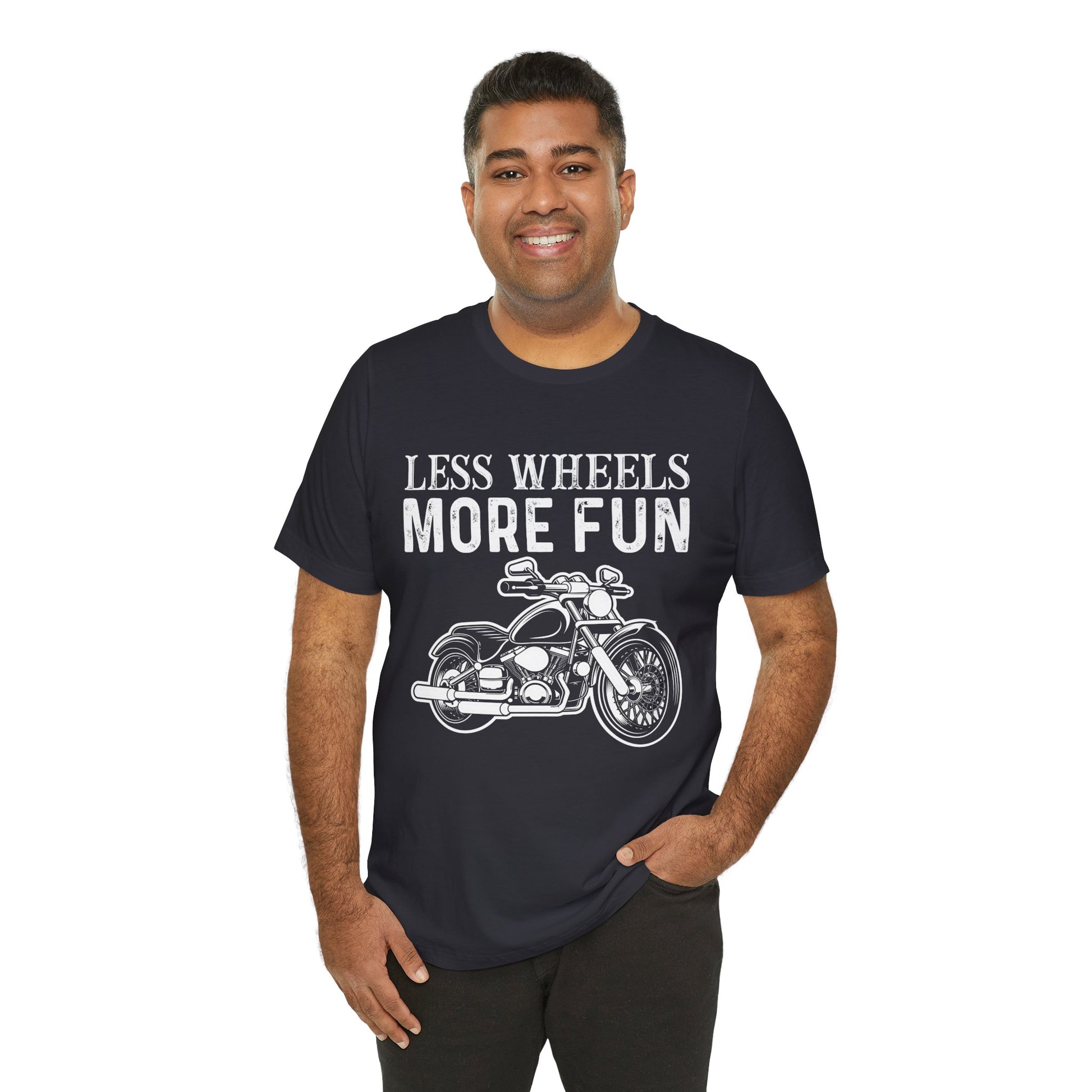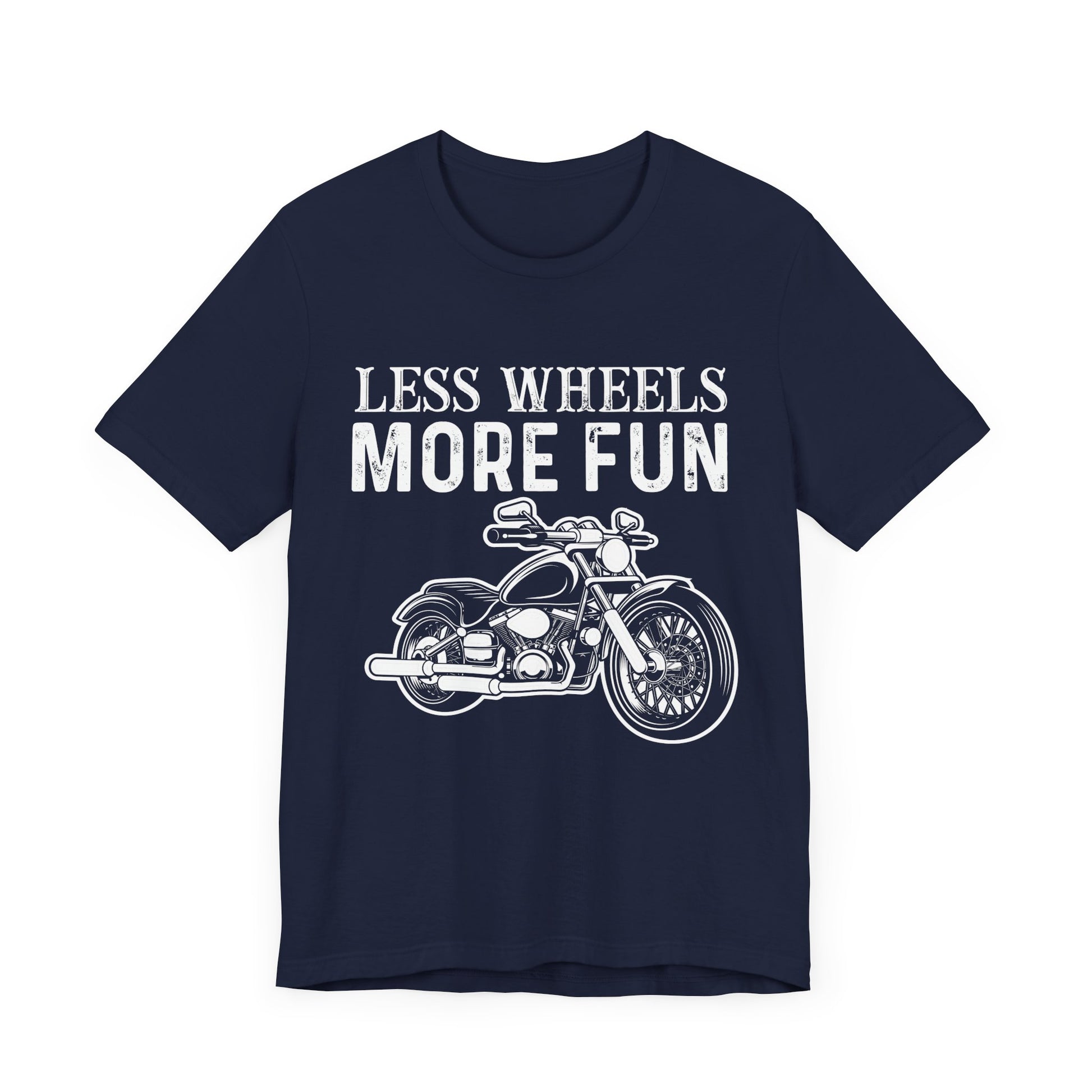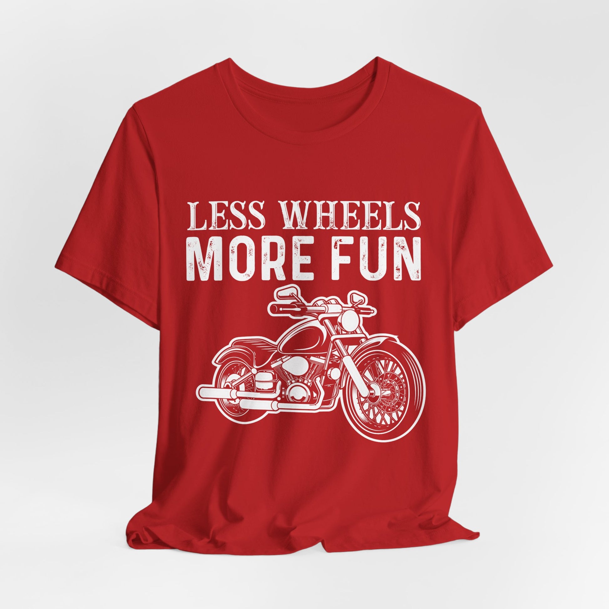 Elevate your riding experience and express your adventurous spirit with the Less Wheels More Fun Tee. Order yours today and get ready to hit the road with style!