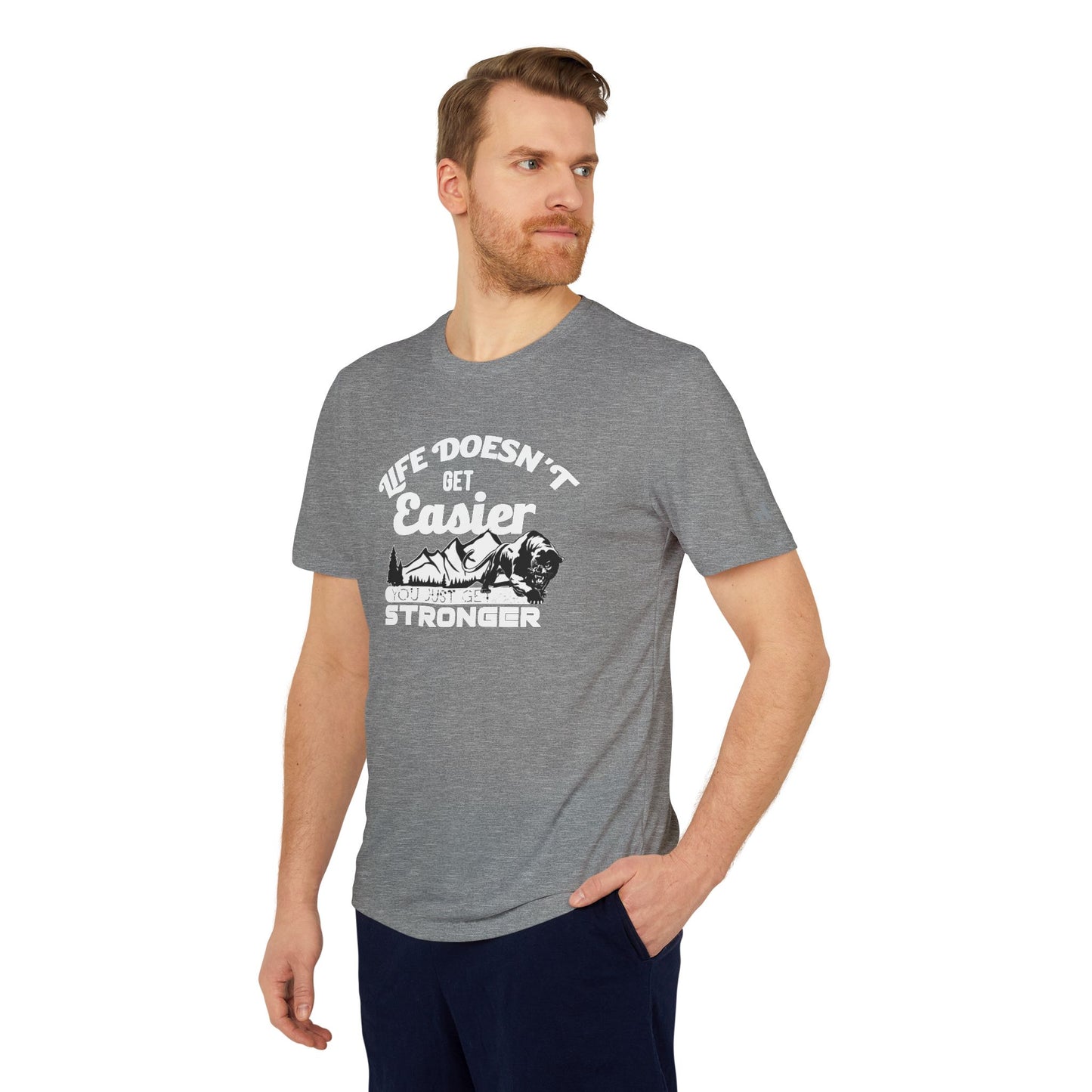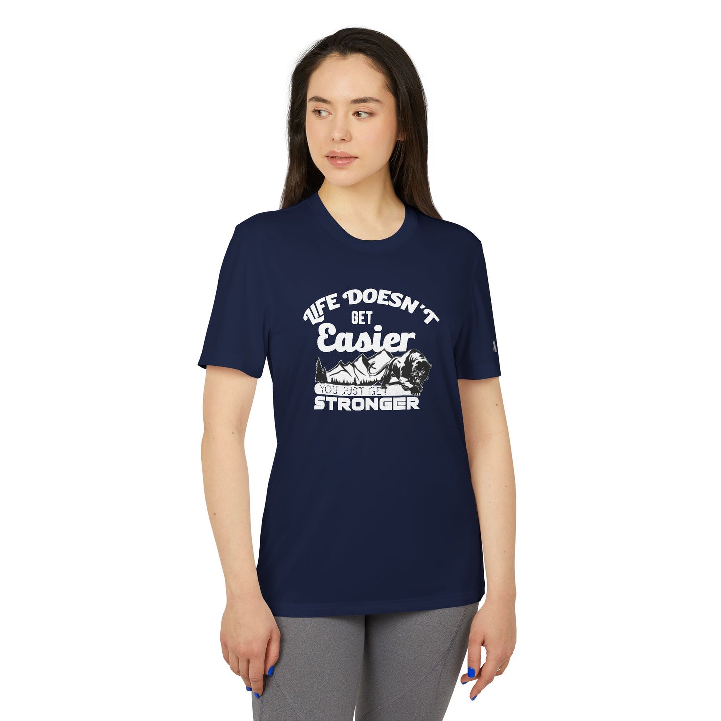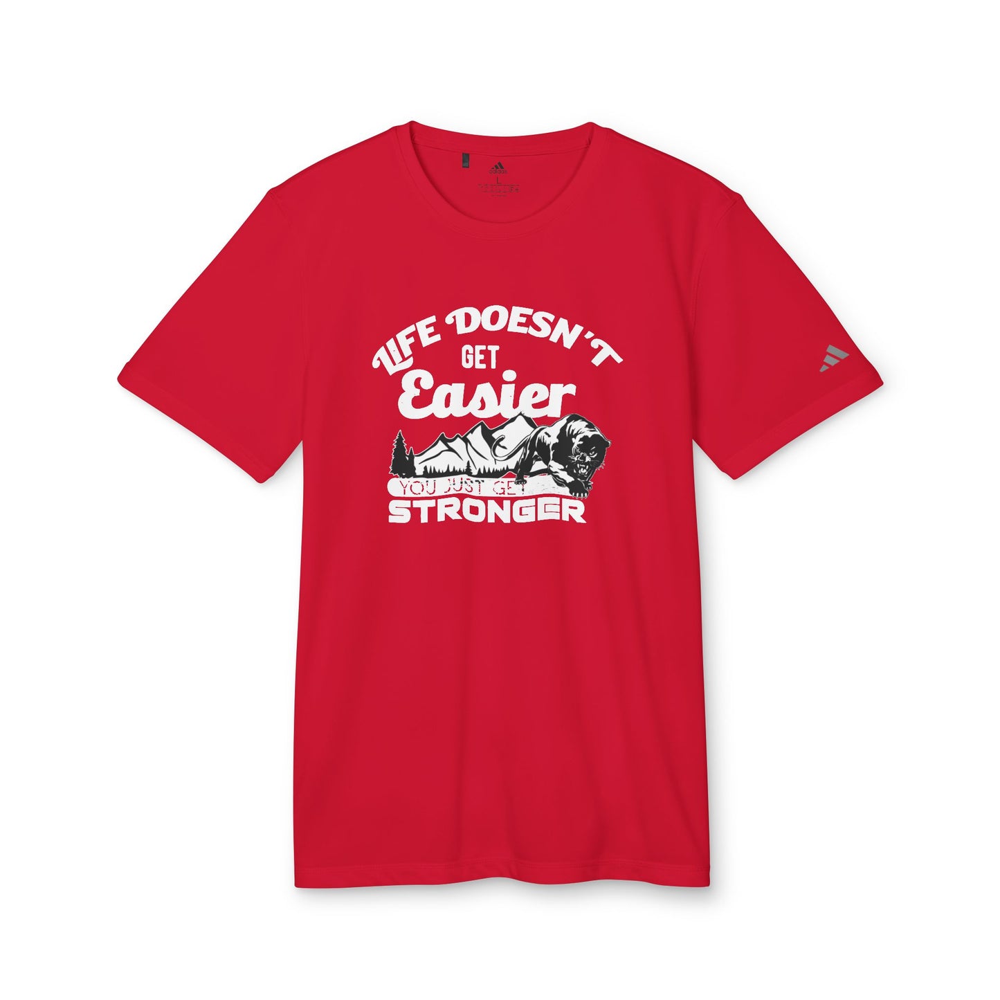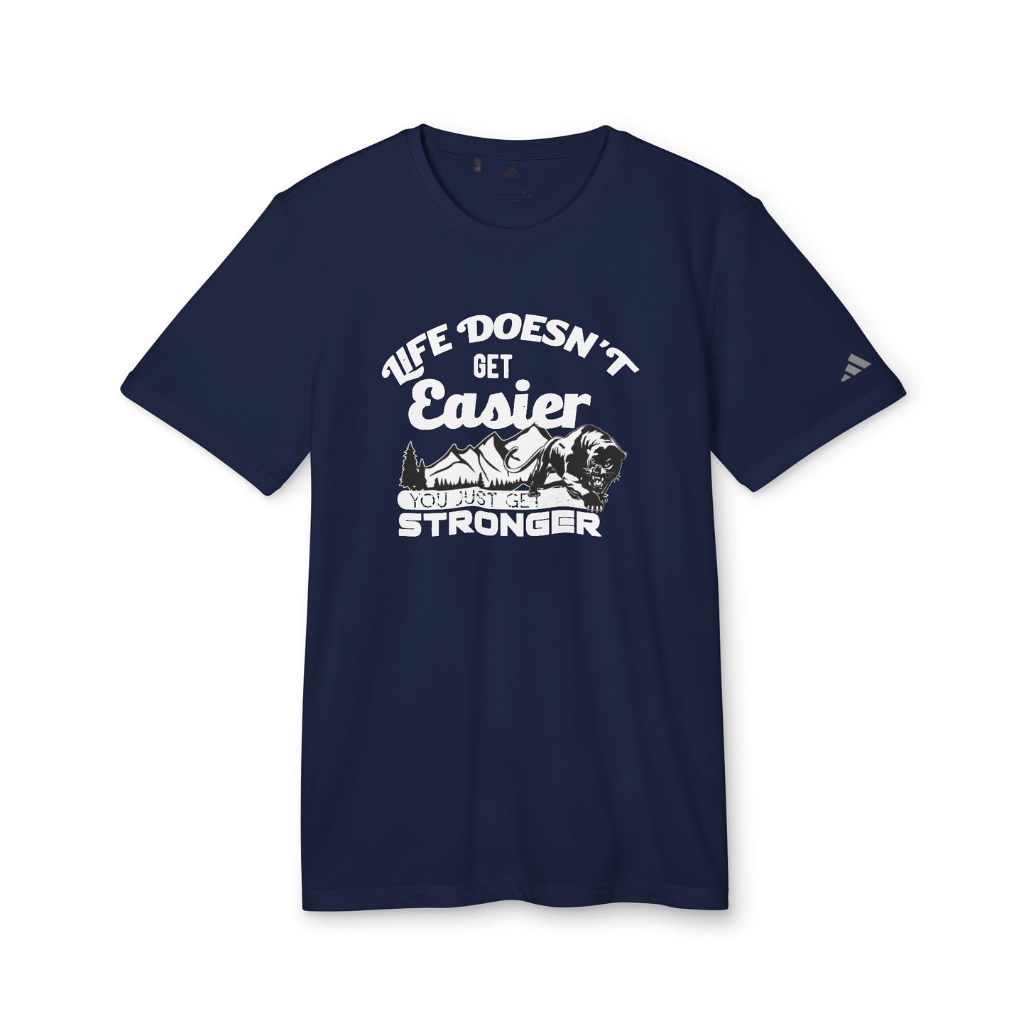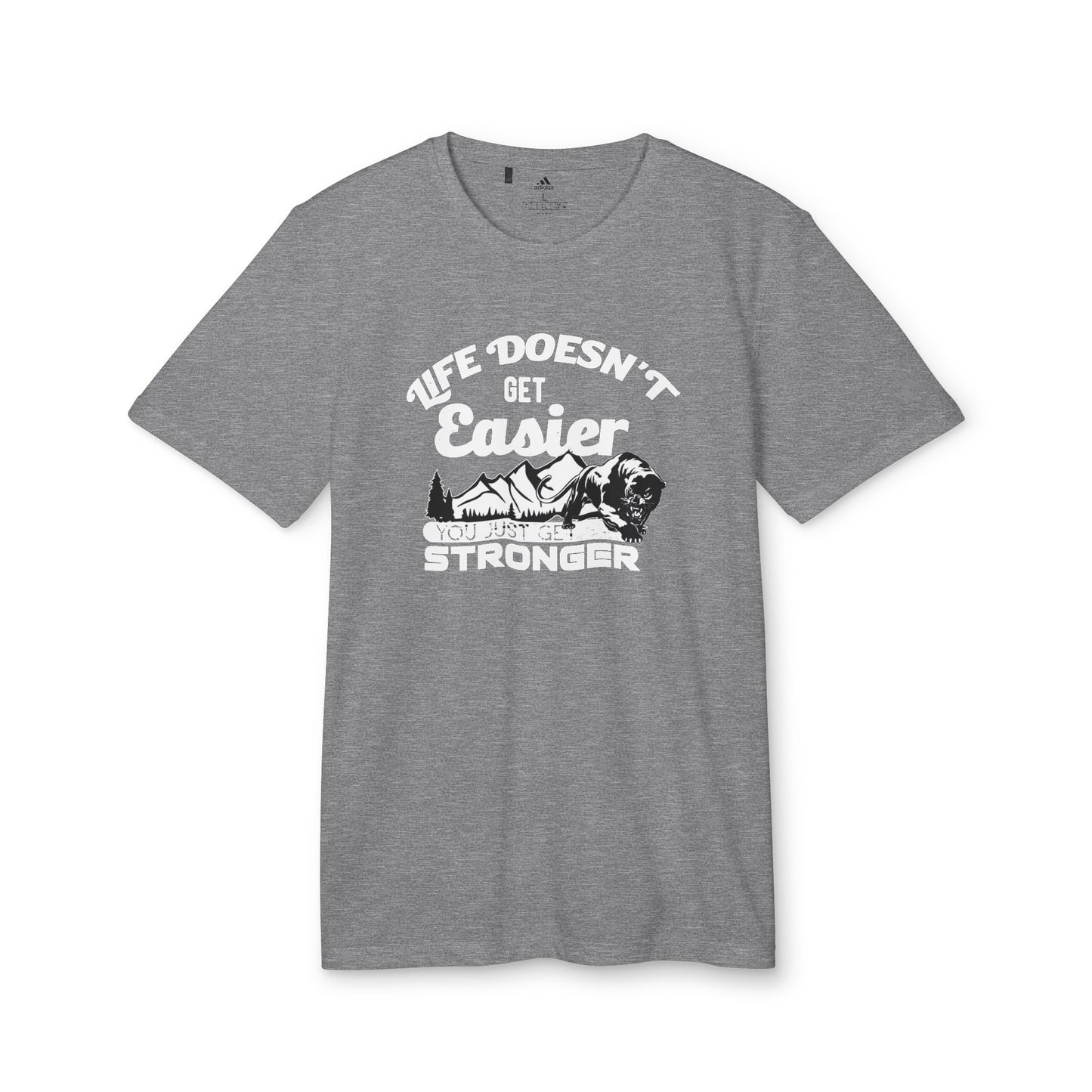 Whether you're hitting the gym, going for a run, or engaging in any physical activity, the "Life Doesn't Get Easier, You Just Get Stronger" Adidas Unisex Sport T-shirt is designed to support and inspire you. Embrace your journey of strength and growth with this motivational tee.