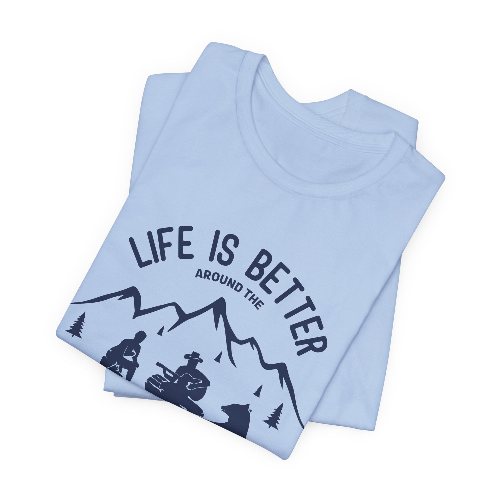 Celebrate the joy of campfire nights with the “Life Is Better Around The Campfire” Unisex Jersey Short Sleeve Tee. Order yours today and let every outdoor adventure be filled with warmth and happiness!