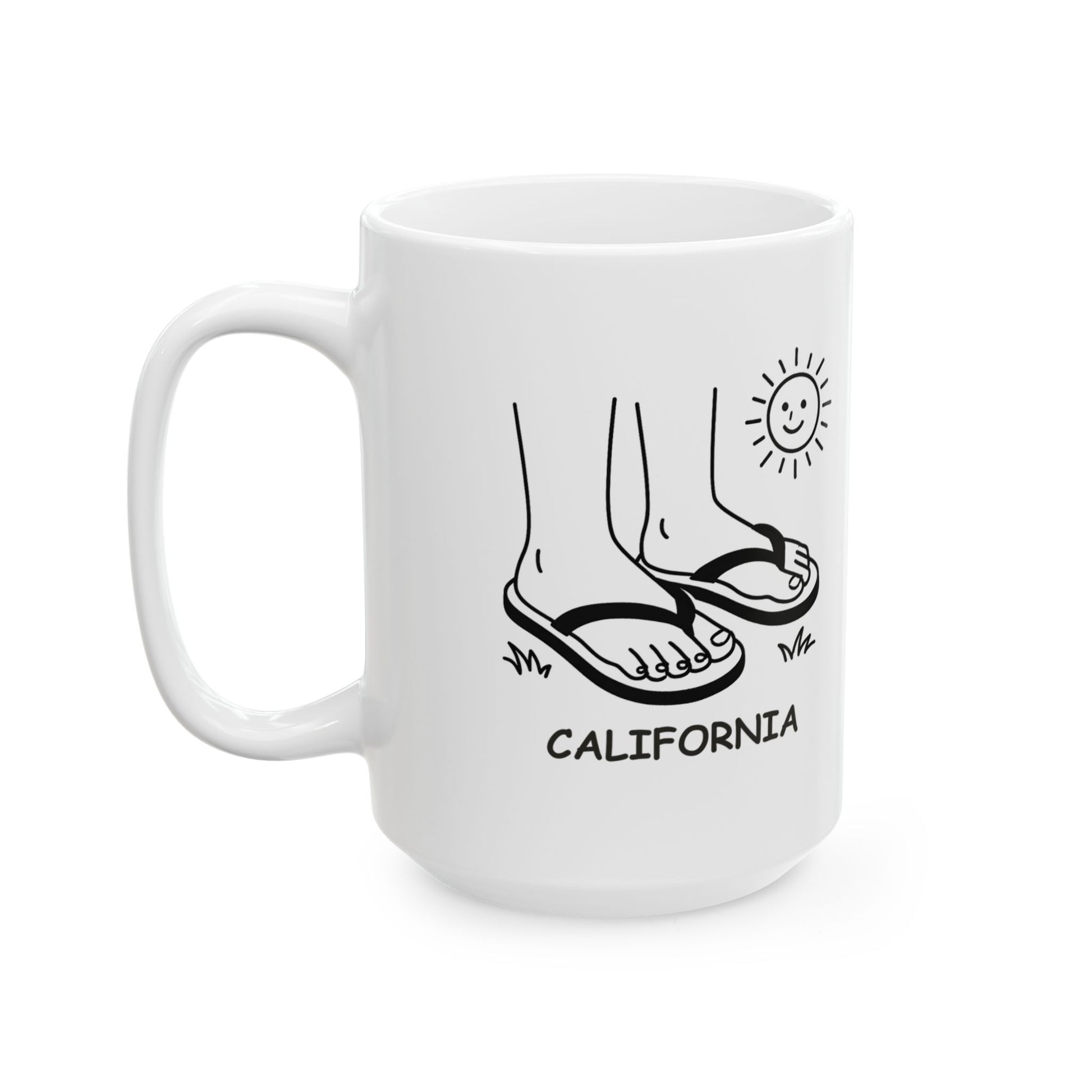 In California, every day feels like a flip-flop day. Our "Life is better in flip-flops." Ceramic Mug celebrates the laid-back, sun-soaked lifestyle of the Golden State. Whether you’re sipping coffee after a morning surf or just enjoying a lazy beach day, this mug brings easygoing coastal vibes to your daily routine.