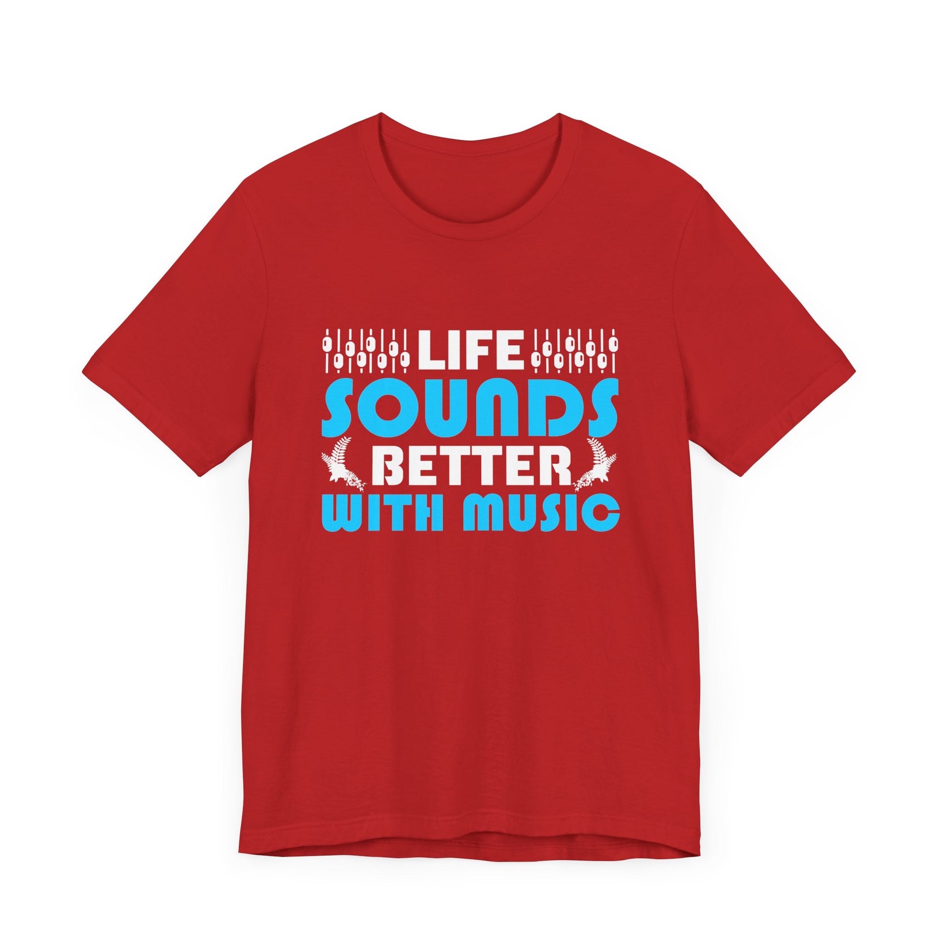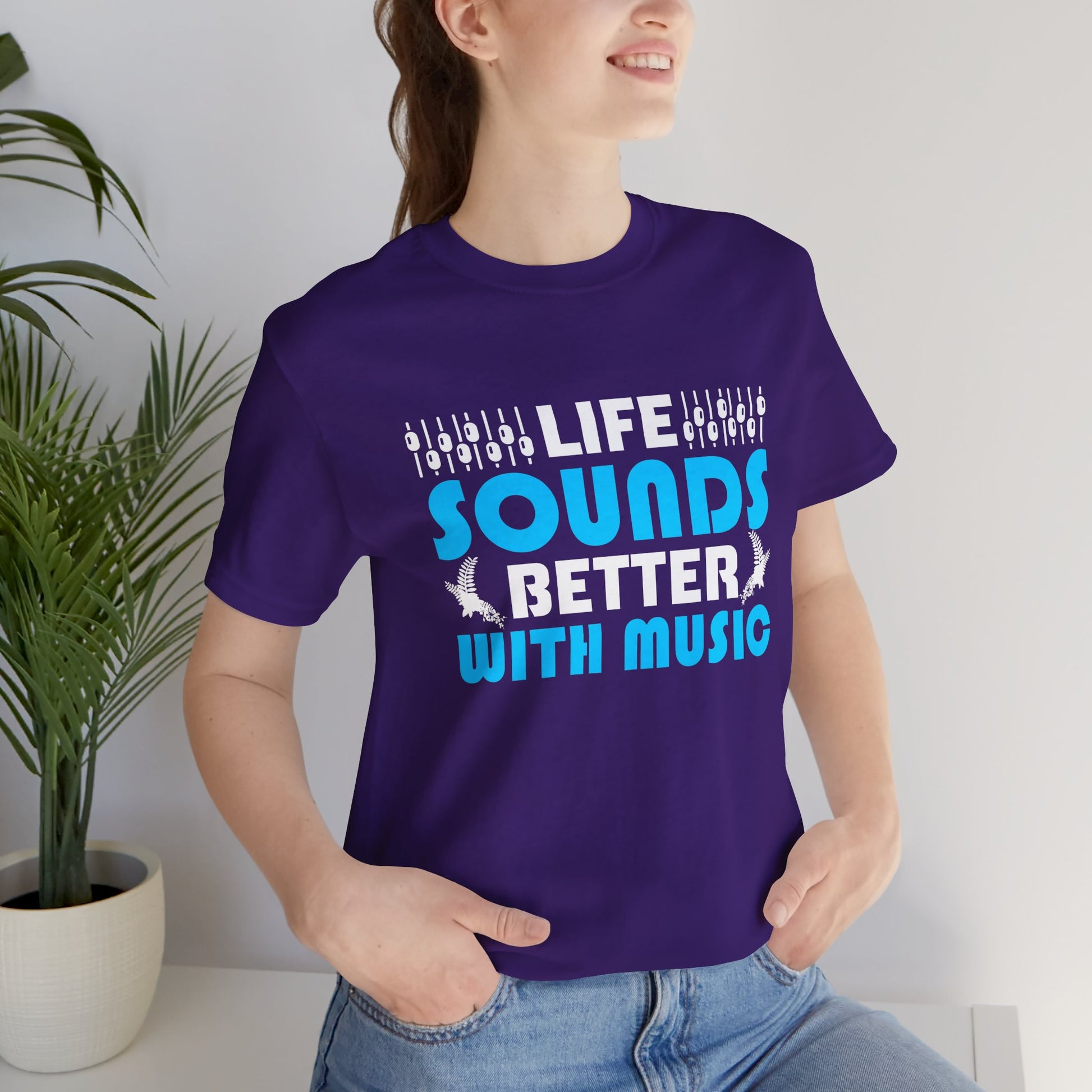 Embrace the harmony of life and music with our "Life Sounds Better With Music" Unisex Jersey Short Sleeve Tee. Whether you're at a concert, relaxing at home, or out with friends, this tee is the perfect way to celebrate the soundtrack of your life. Get yours today and let the world know that life truly sounds better with music!