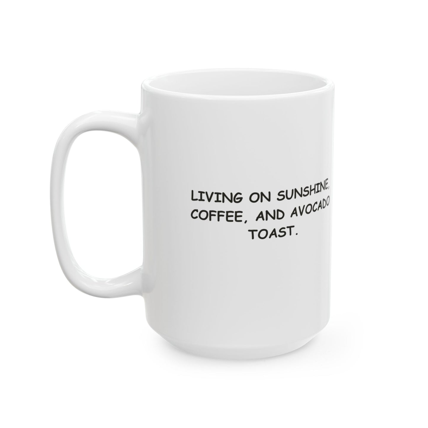 "Living on sunshine, coffee, and avocado toast." Ceramic Mug - 12701