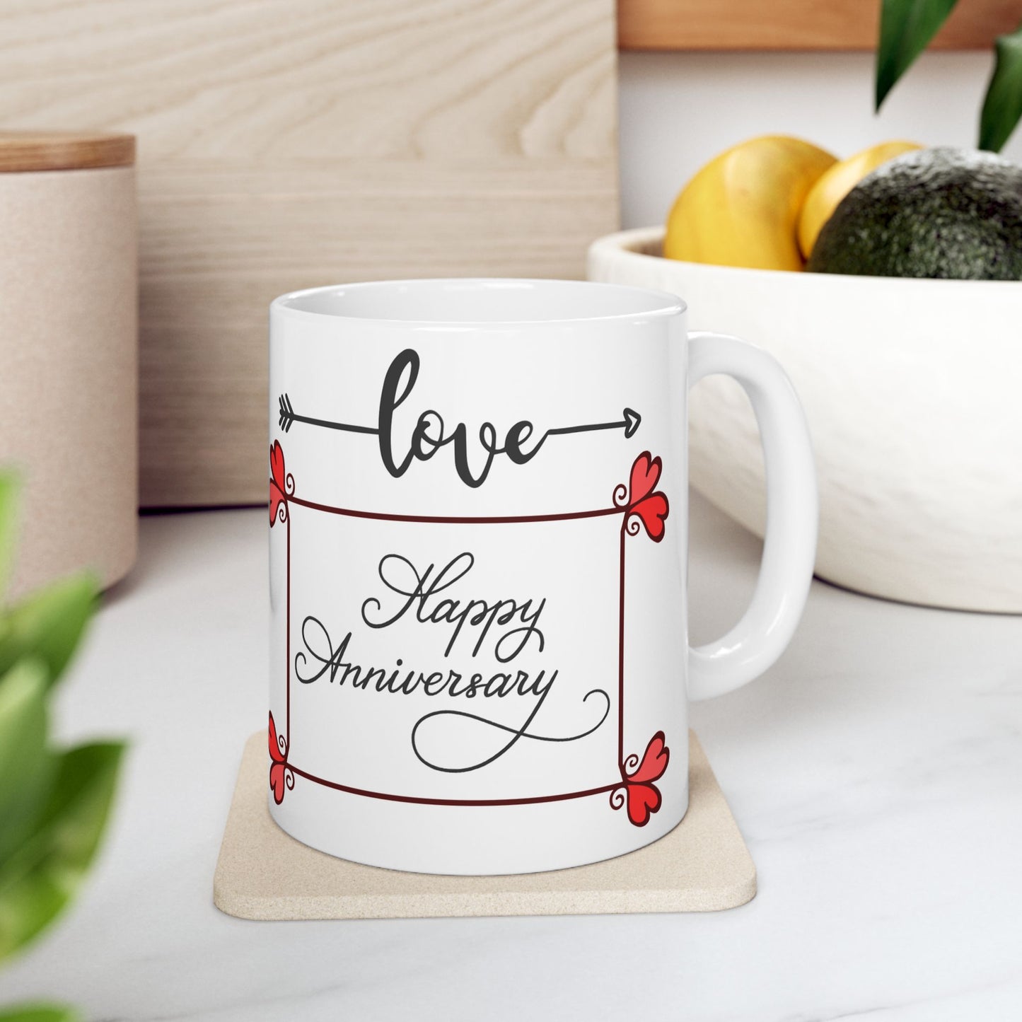 Commemorate your love story with a timeless keepsake. Order the Love, Happy Anniversary ceramic mug today and celebrate your journey together!