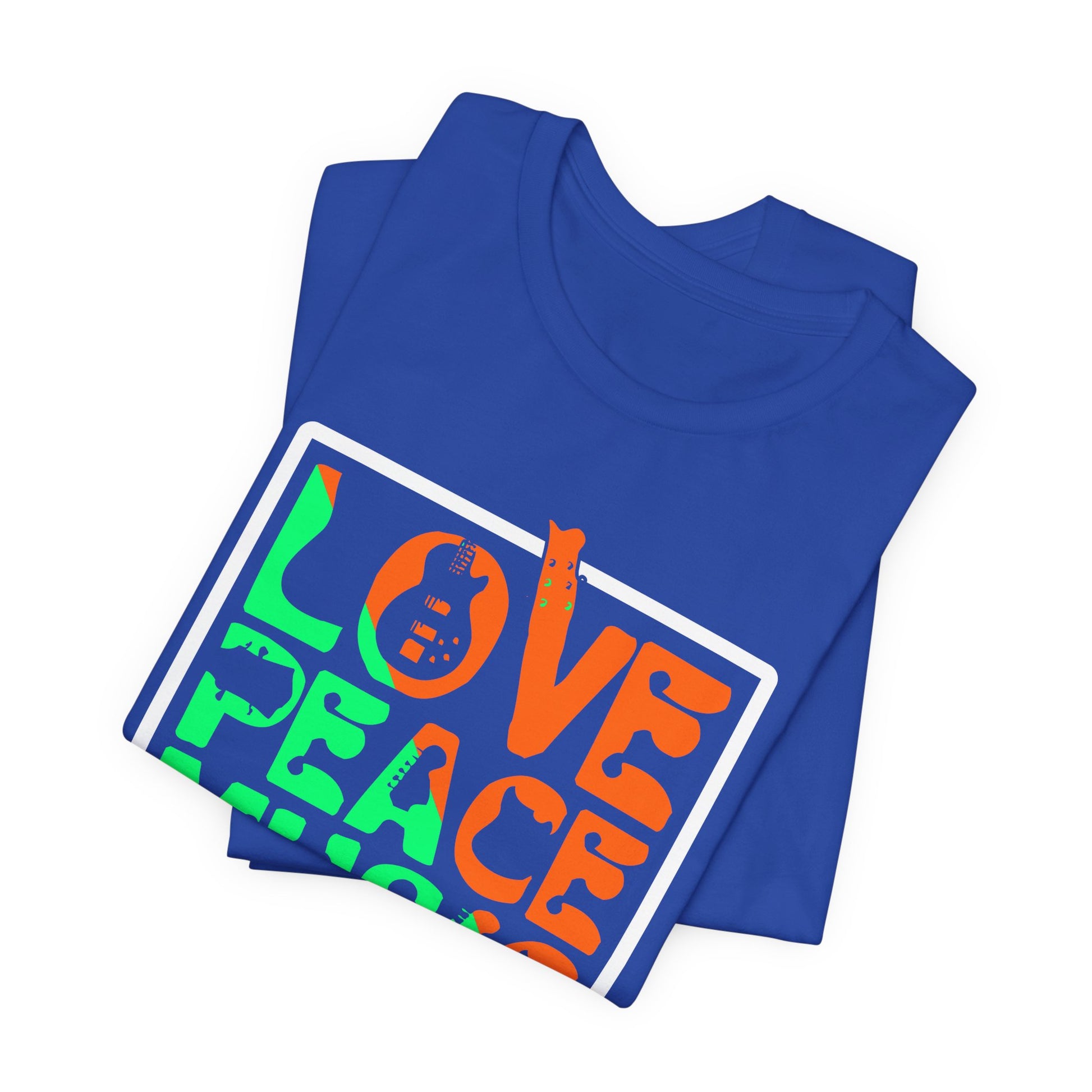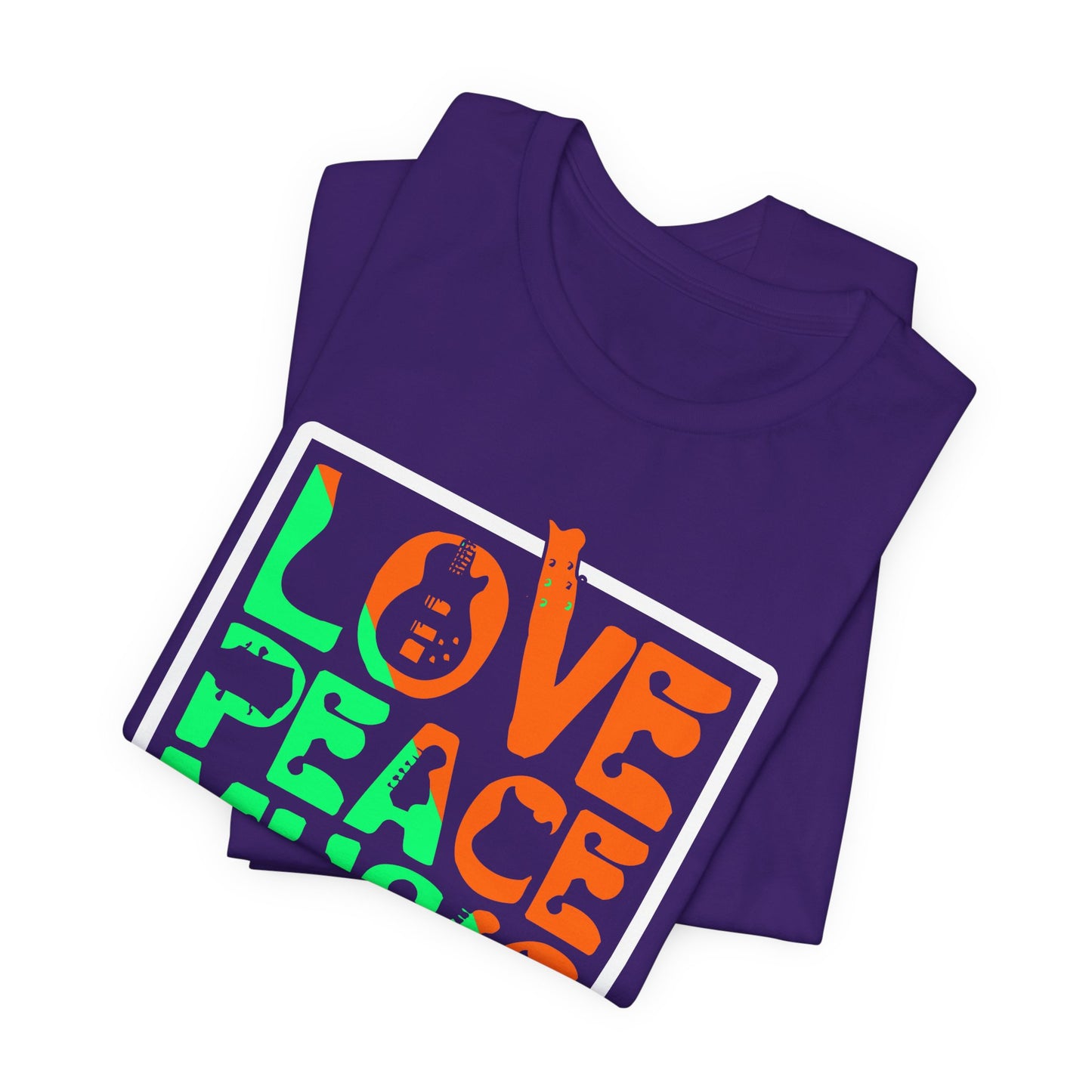 Celebrate the harmony of love, peace, and music with our "Love Peace Music" Unisex Jersey Short Sleeve Tee. Whether you're at a live concert, enjoying a peaceful day, or hanging out with friends, this tee is the perfect way to express your positive outlook on life. Get yours today and let the good vibes flow!