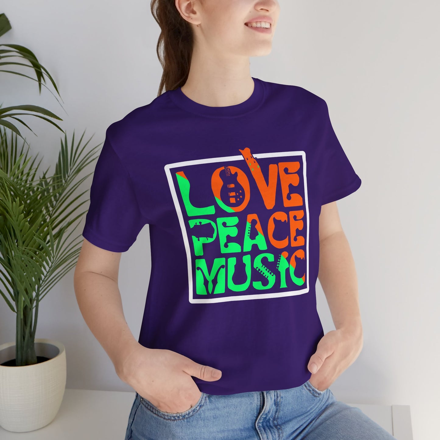Spread positive vibes with our "Love Peace Music" Unisex Jersey Short Sleeve Tee! Perfect for those who believe in the power of love, peace, and music, this tee combines comfort with a timeless message, making it a must-have for any music lover’s wardrobe.