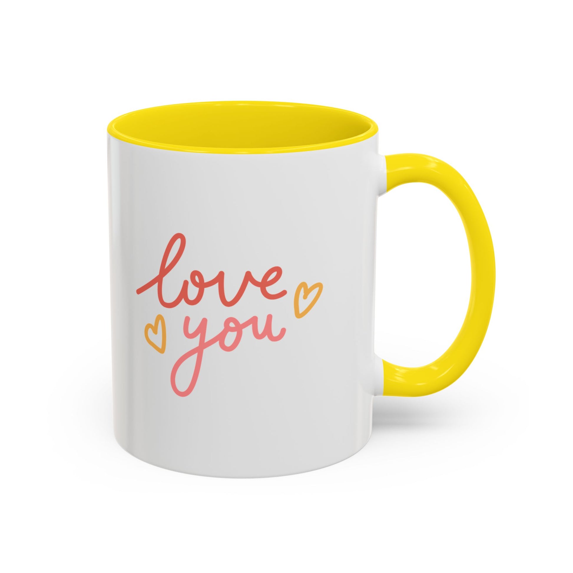 Show your love with every sip from the Love You accent coffee mug. Featuring a sweet and simple design, this mug is perfect for expressing affection to someone special. Whether it’s for Valentine’s Day, an anniversary, or just a thoughtful gesture, the bold "Love You" message captures the sentiment beautifully. With a contrasting handle and interior, this mug adds a vibrant touch to your daily routine. Made from high-quality ceramic, it’s perfect for enjoying coffee, tea, or any favorite beverage.