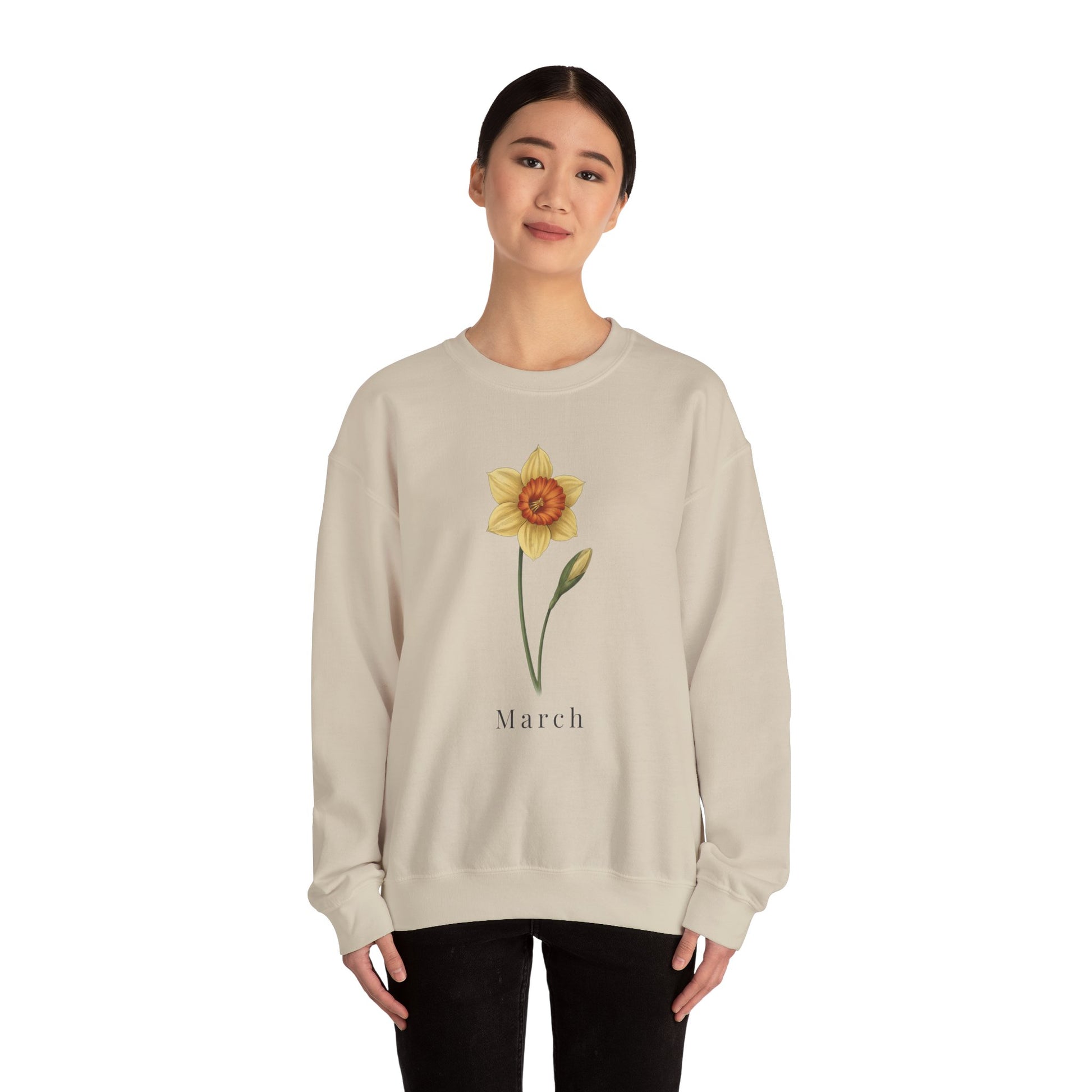 March Birth Flower Daffodil Crewneck Sweatshirt – Floral Birthday Gift Pullover - 14822
