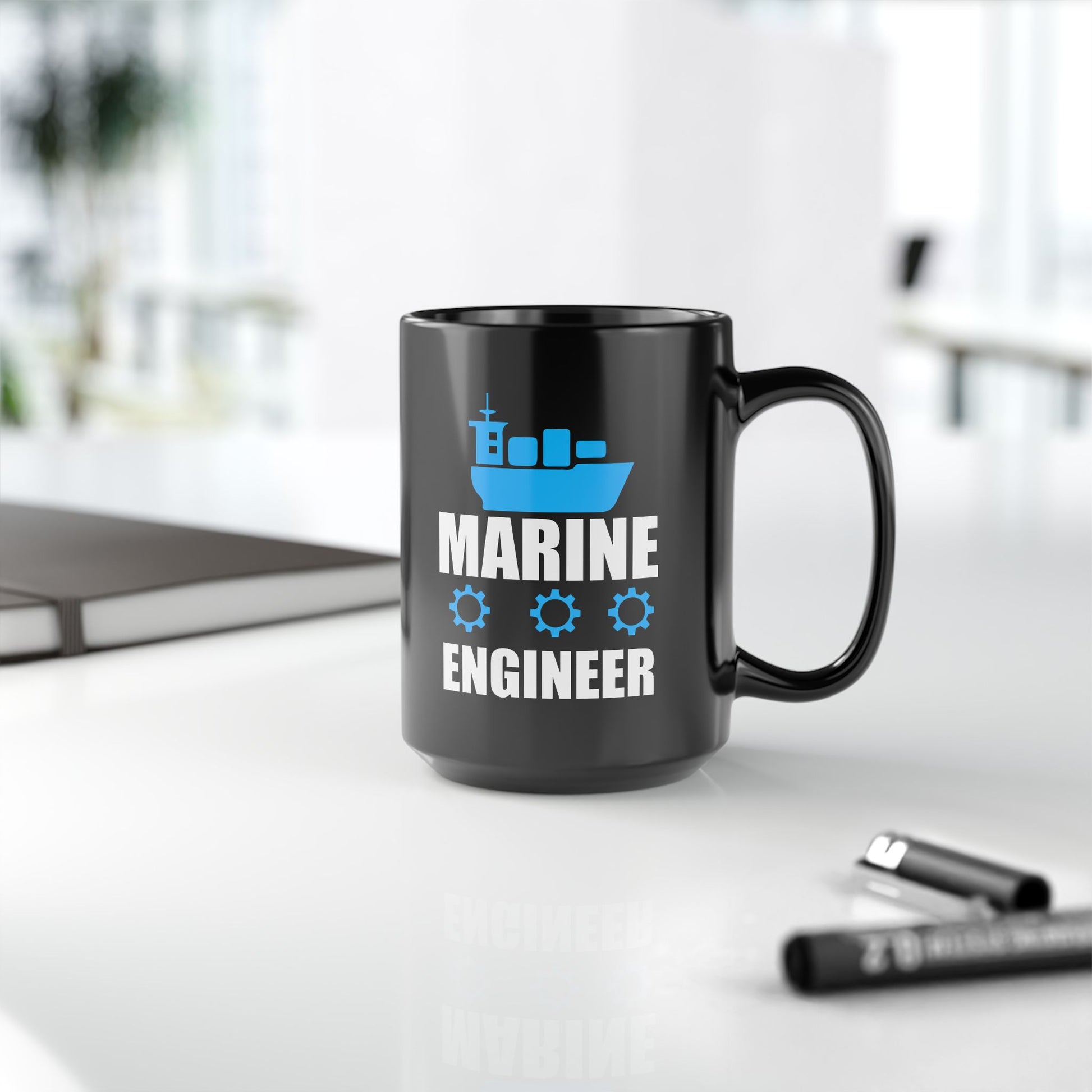 Fuel your day with the perfect cup of coffee, and proudly represent the marine engineering profession with this stylish black mug. Get yours today!