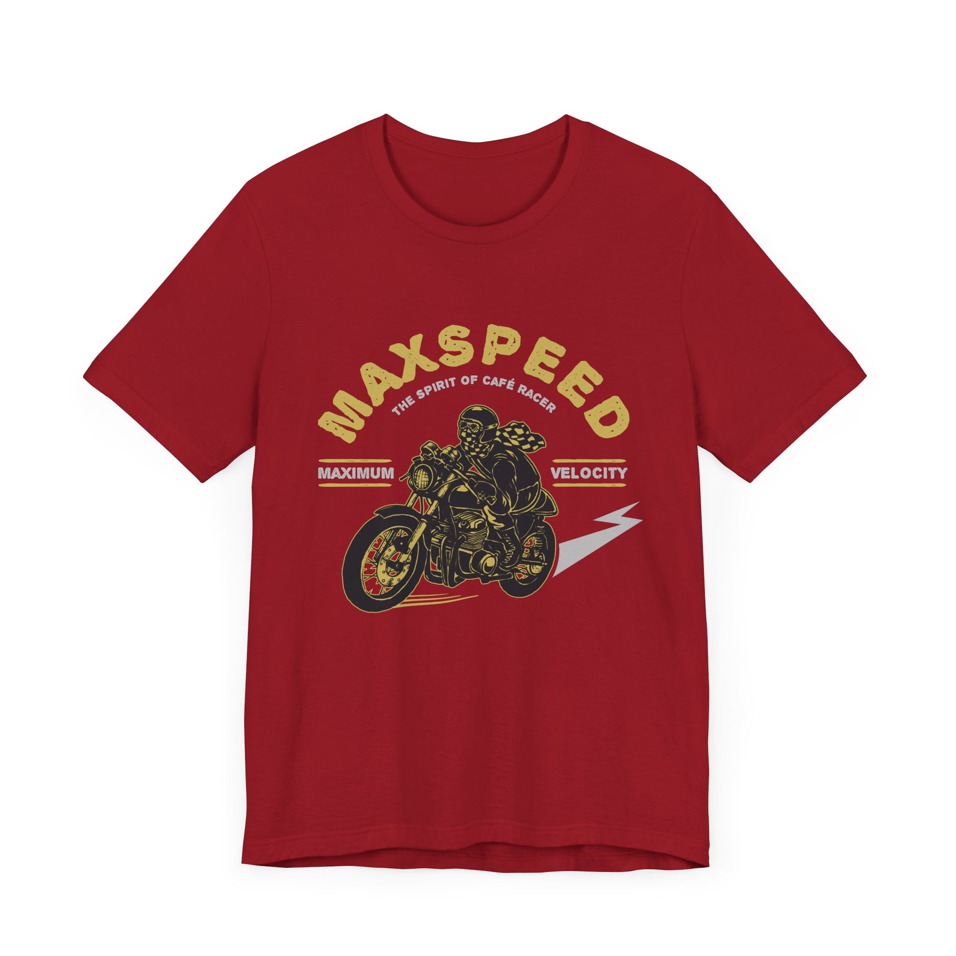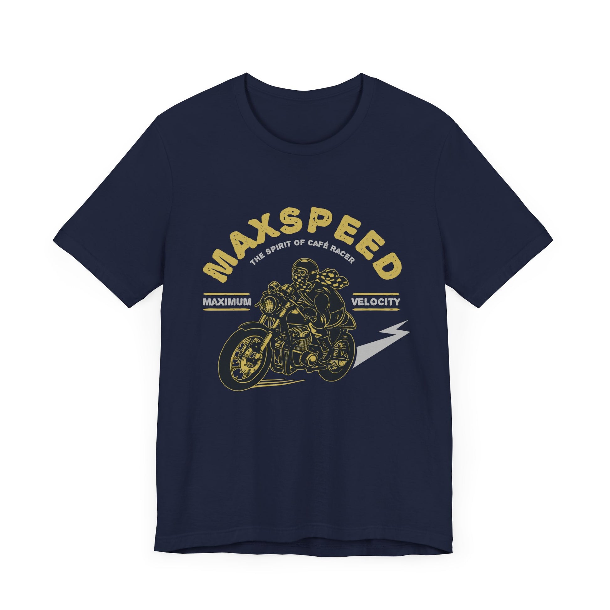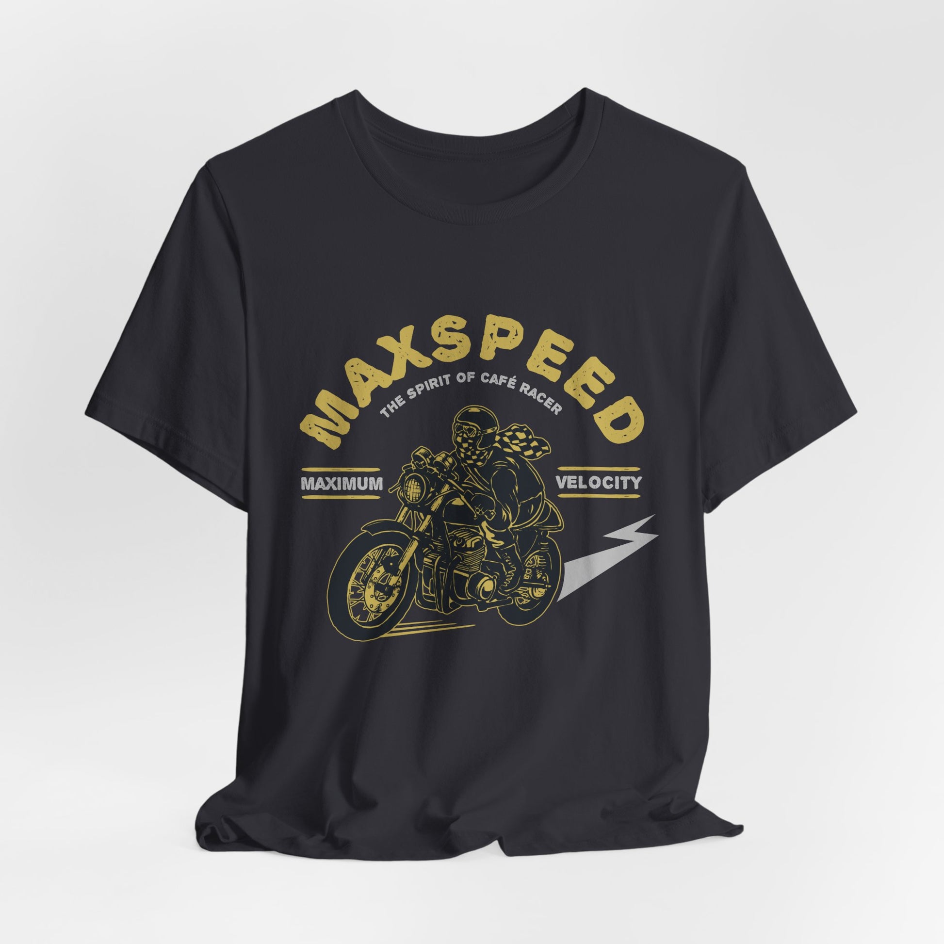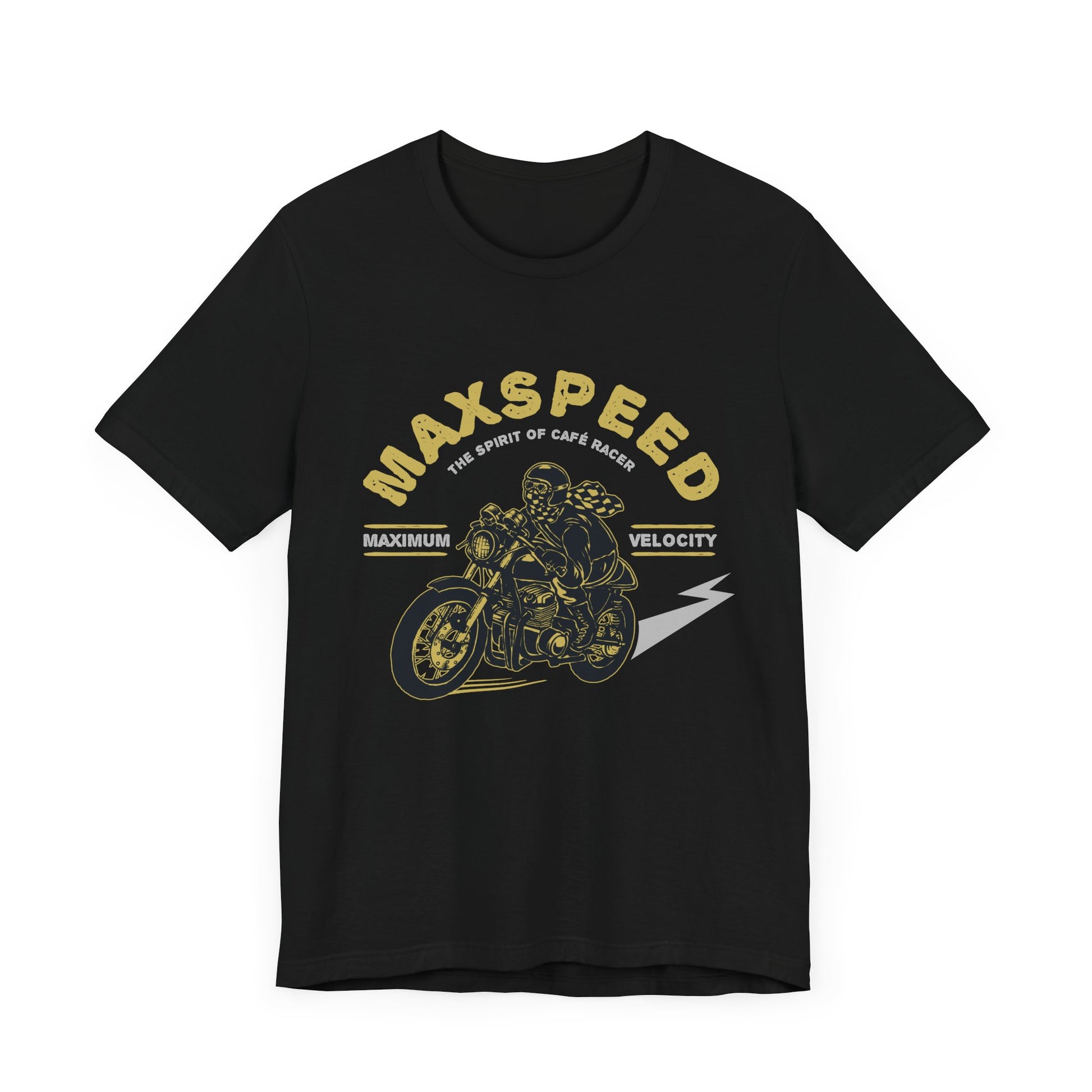 Live fast and ride with style in the Maxspeed, The Spirit of Cafe Racer tee. Order yours today and capture the essence of the cafe racer legacy!