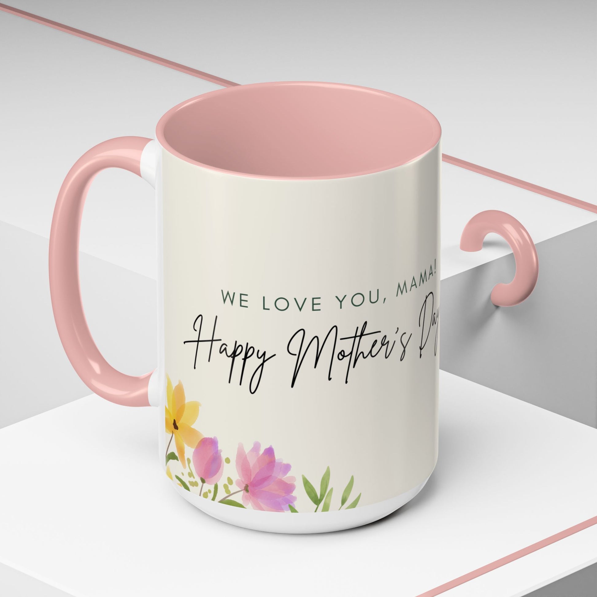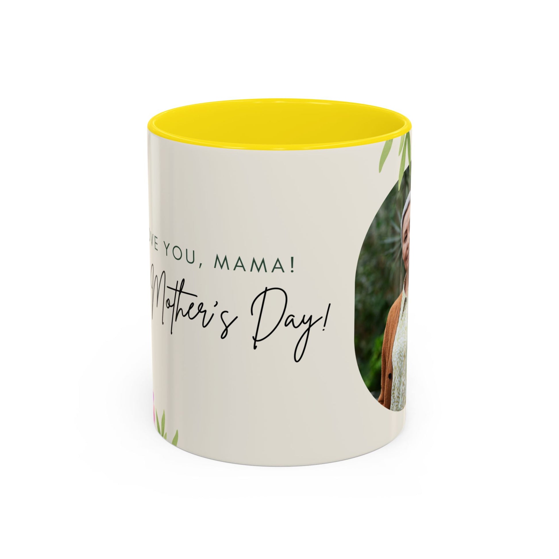 Mother's Day Accent Coffee Mug - Floral Design, Customized Photo - 12542