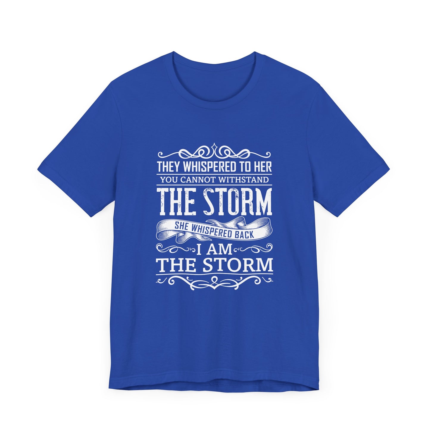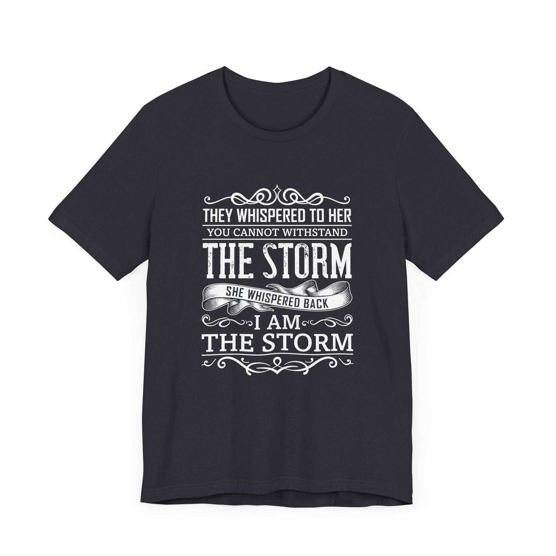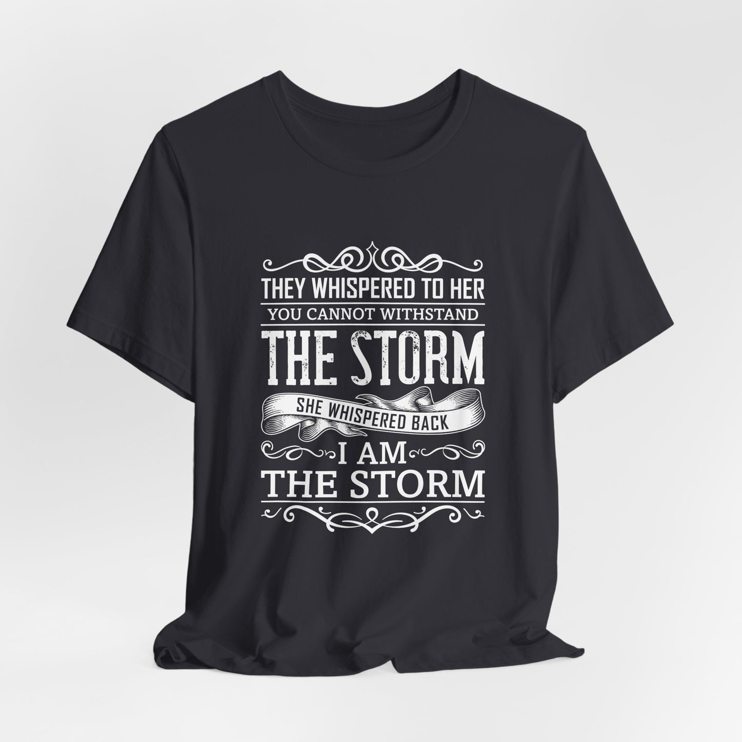 Empower yourself with the strength and confidence of our “They Whispered To Her, You Cannot Withstand, She Whispered I'm The Storm” Unisex Jersey Short Sleeve Tee. Designed for those who defy the odds and stand strong against challenges, this tee is a bold declaration of inner power and resilience.