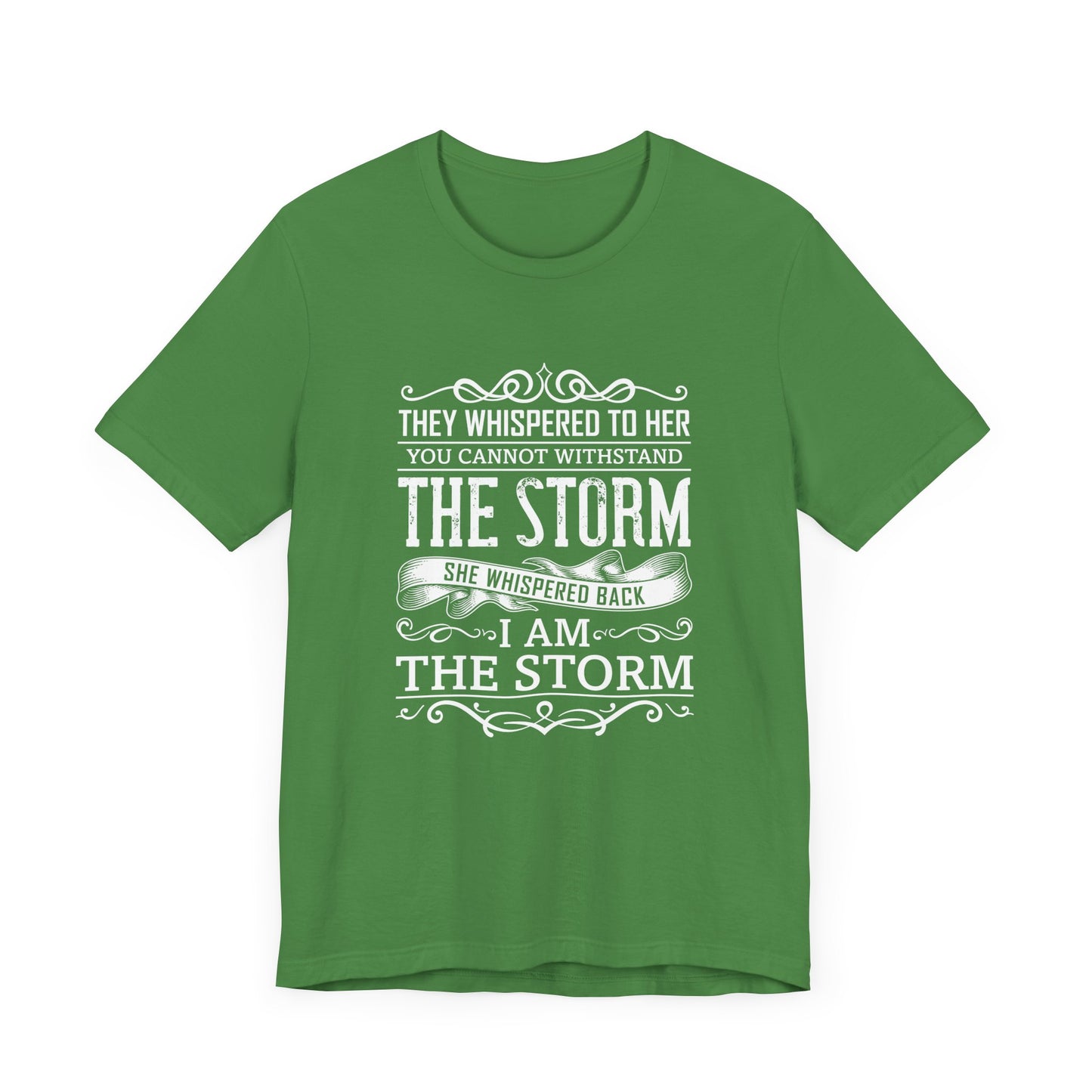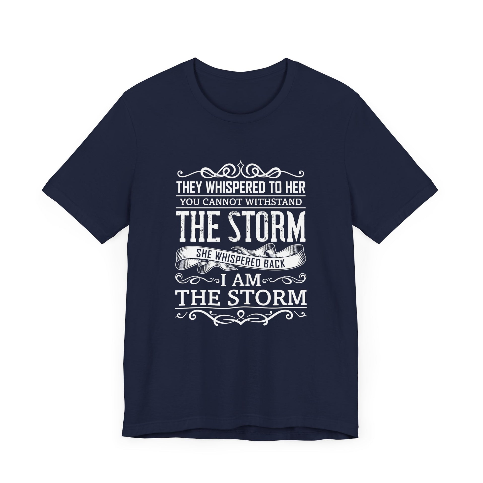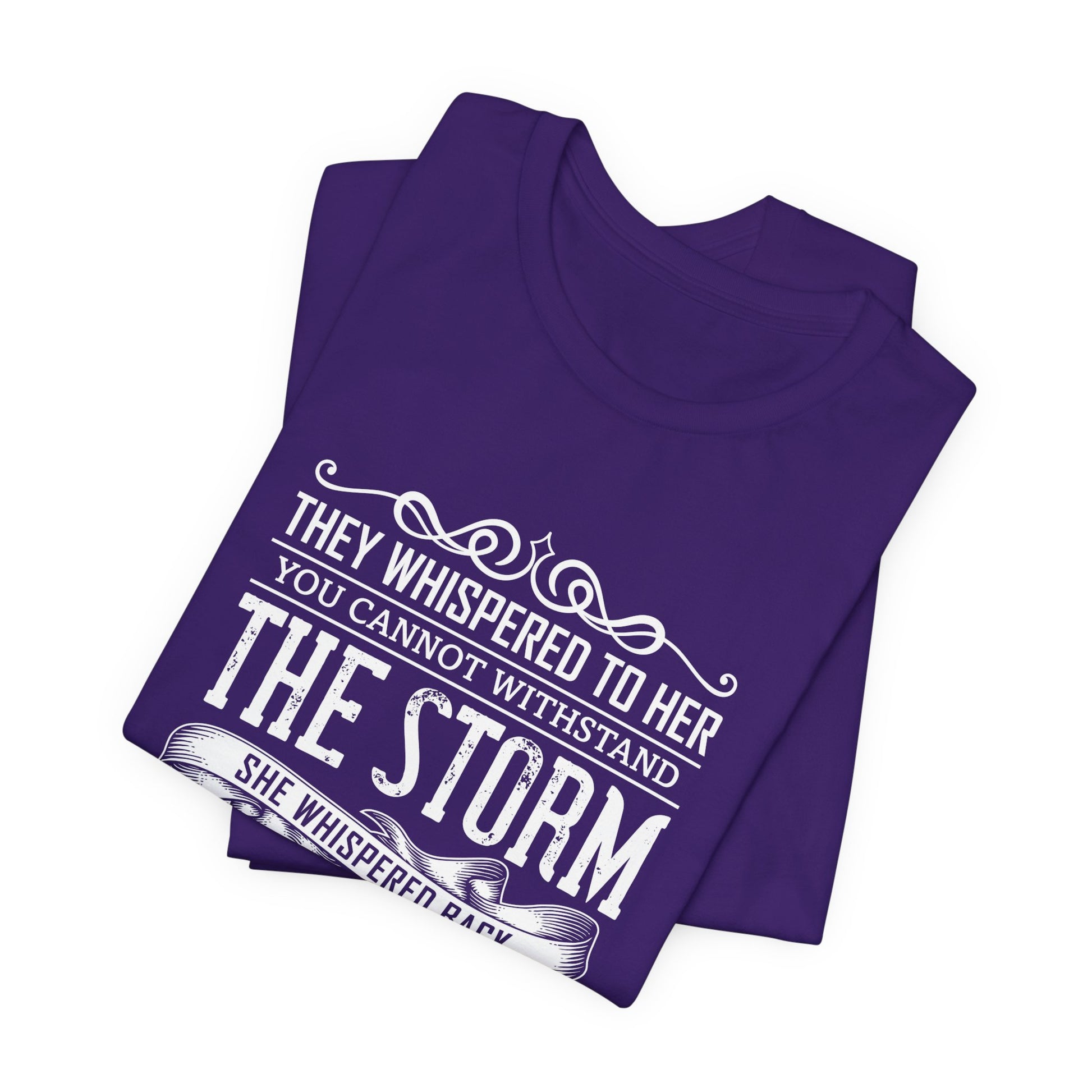 Empower yourself with the strength and confidence of our “They Whispered To Her, You Cannot Withstand, She Whispered I'm The Storm” Unisex Jersey Short Sleeve Tee. Designed for those who defy the odds and stand strong against challenges, this tee is a bold declaration of inner power and resilience.