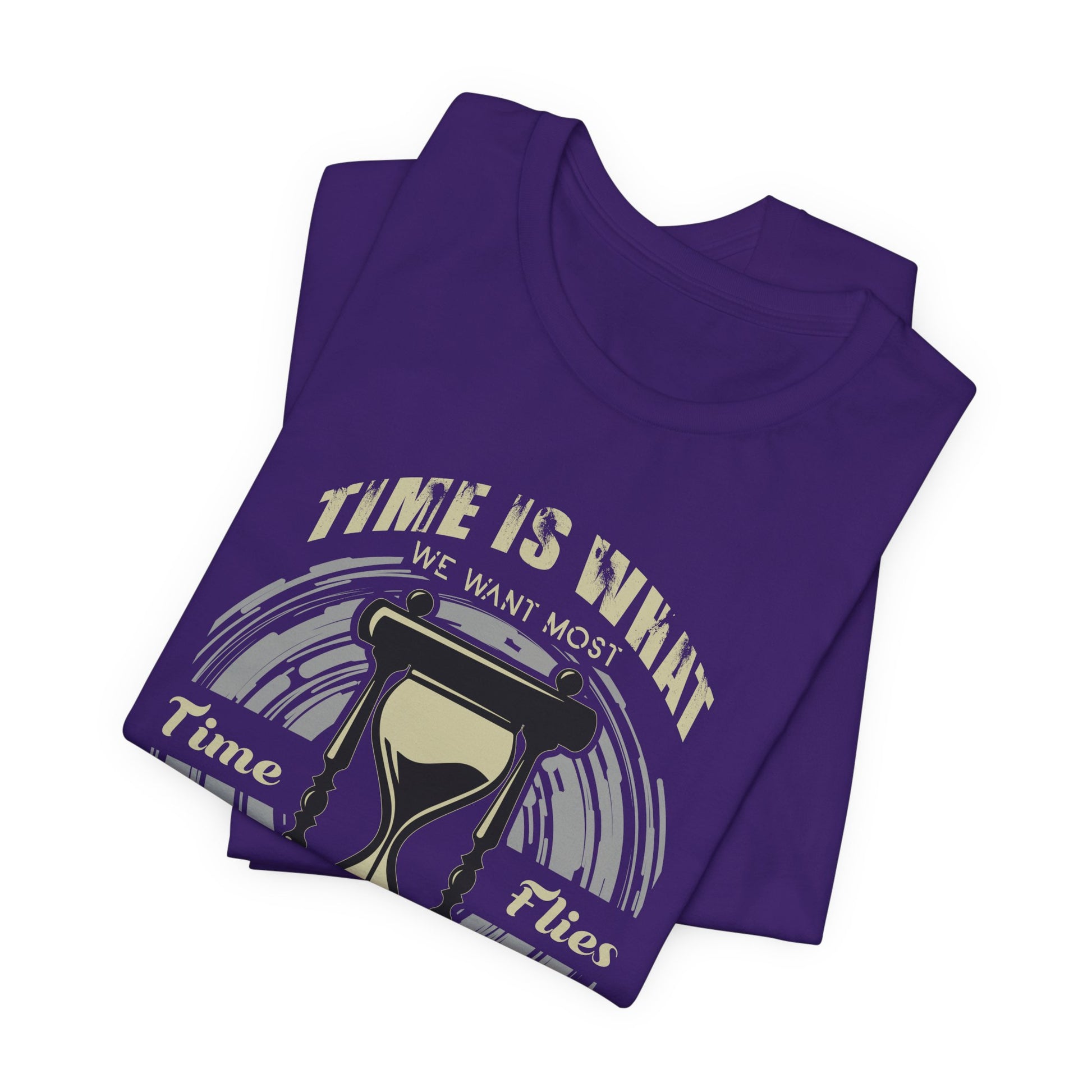 Seize every moment and wear a powerful reminder of the value of time with our “Time Is What We Want Most. Time Flies But What We Use Worst” Unisex Jersey Short Sleeve Tee. Perfect for anyone who values making the most out of every day, this tee is a call to action to live intentionally and purposefully.