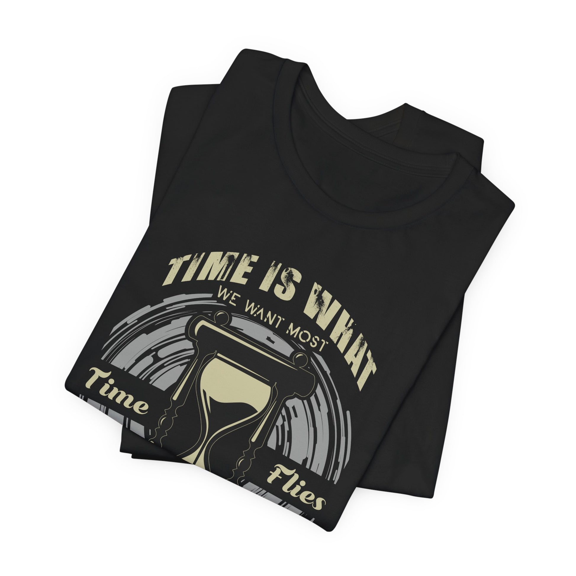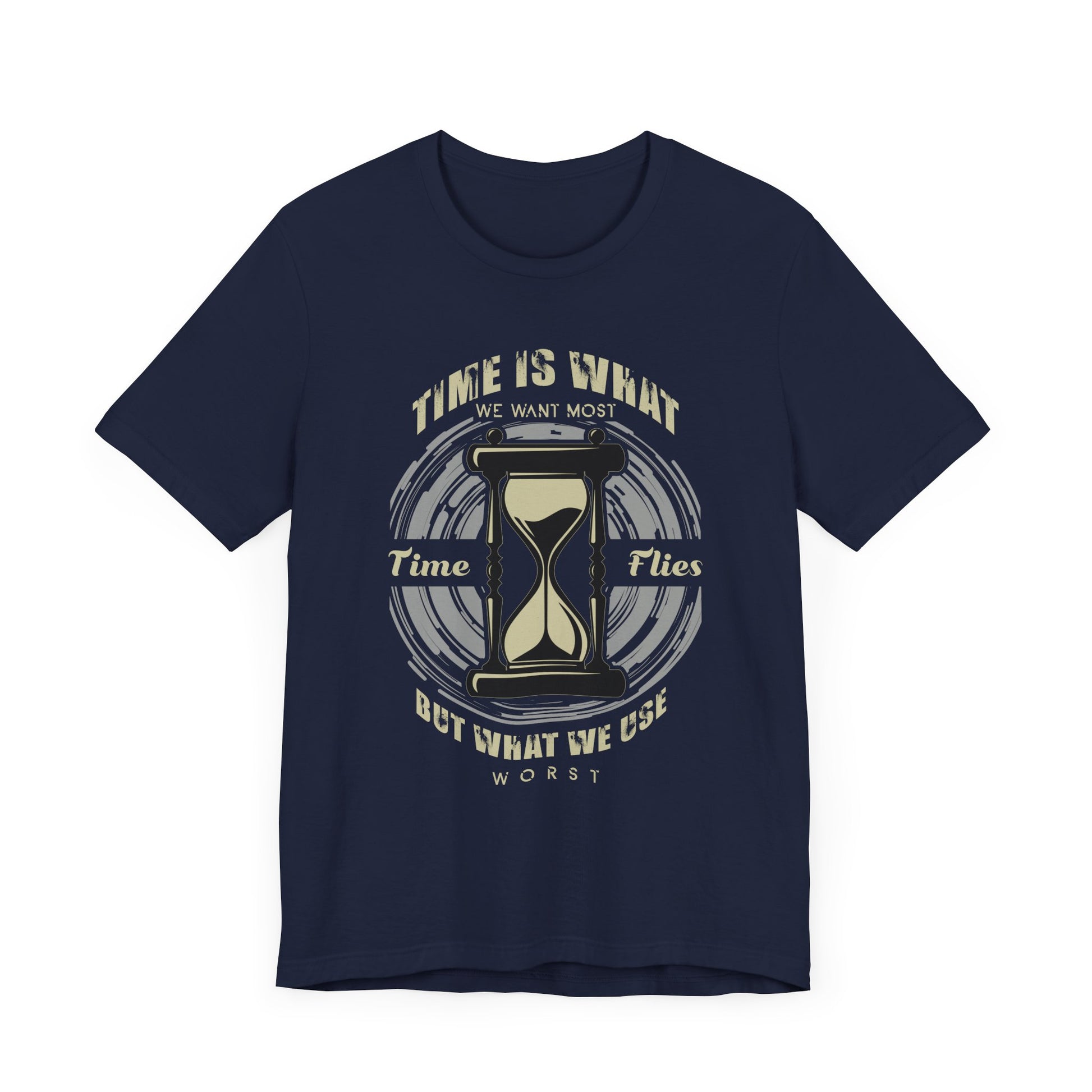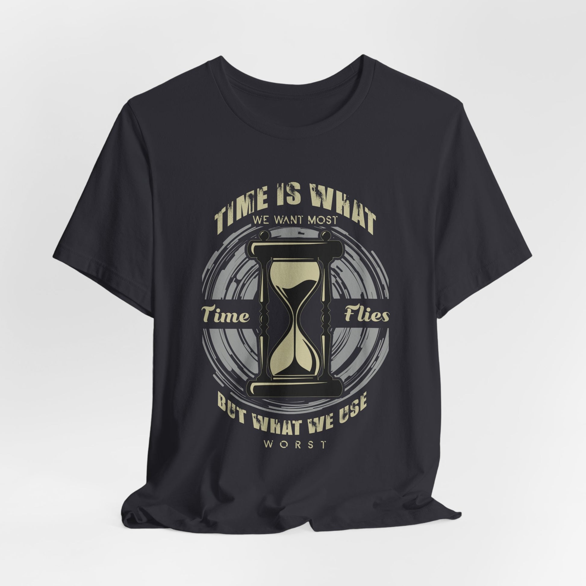 Motivational: Time Is What We Want Most. Time Flies But What We Use Worst - Unisex Jersey Short Sleeve Tee - 12470