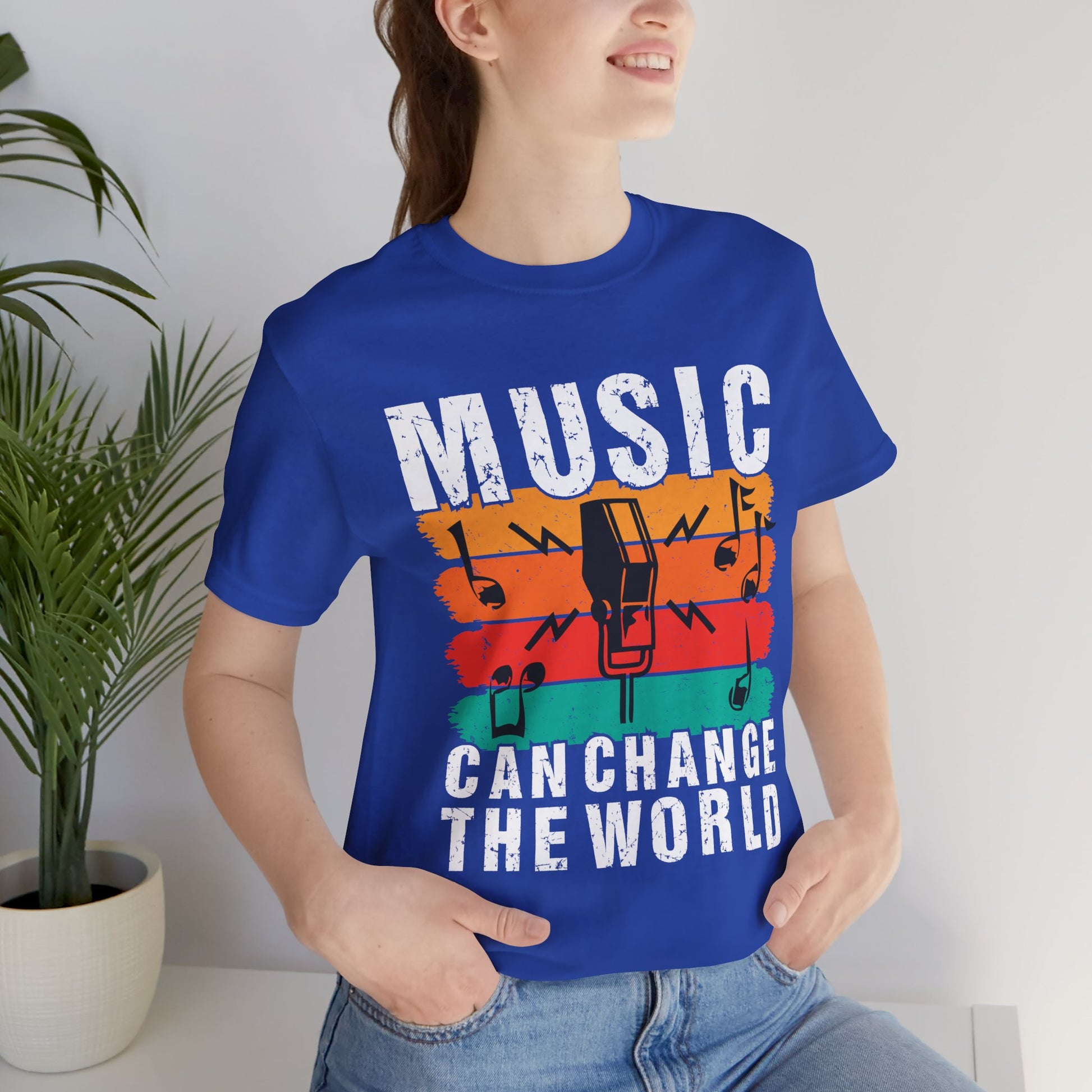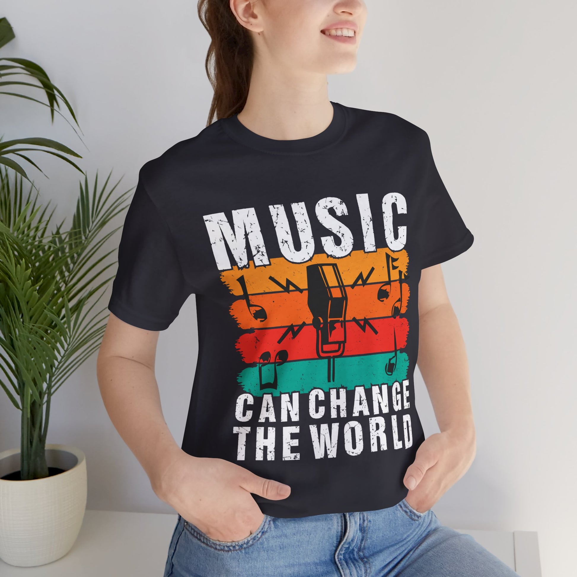 Whether you're performing on stage, enjoying a live concert, or simply relaxing at home with your favorite tunes, the "Music Can Change The World" Unisex Jersey Short Sleeve Tee lets you express the deep connection you have with music. Wear your passion proudly and let the world know that music has the power to change the world.