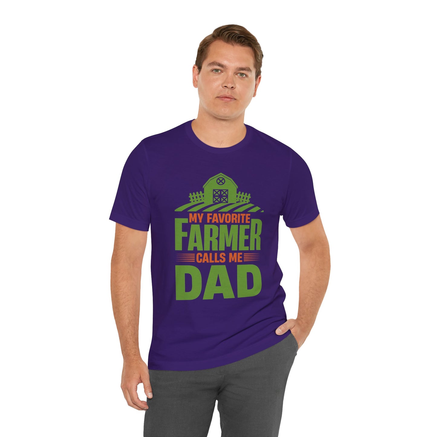 Celebrate the special bond between a father and his farmer with our "My Favorite Farmer Calls Me Dad" unisex jersey short sleeve tee. Perfect for proud dads who cherish their hardworking children, this tee combines comfort, quality, and a heartfelt message that honors the unique connection.