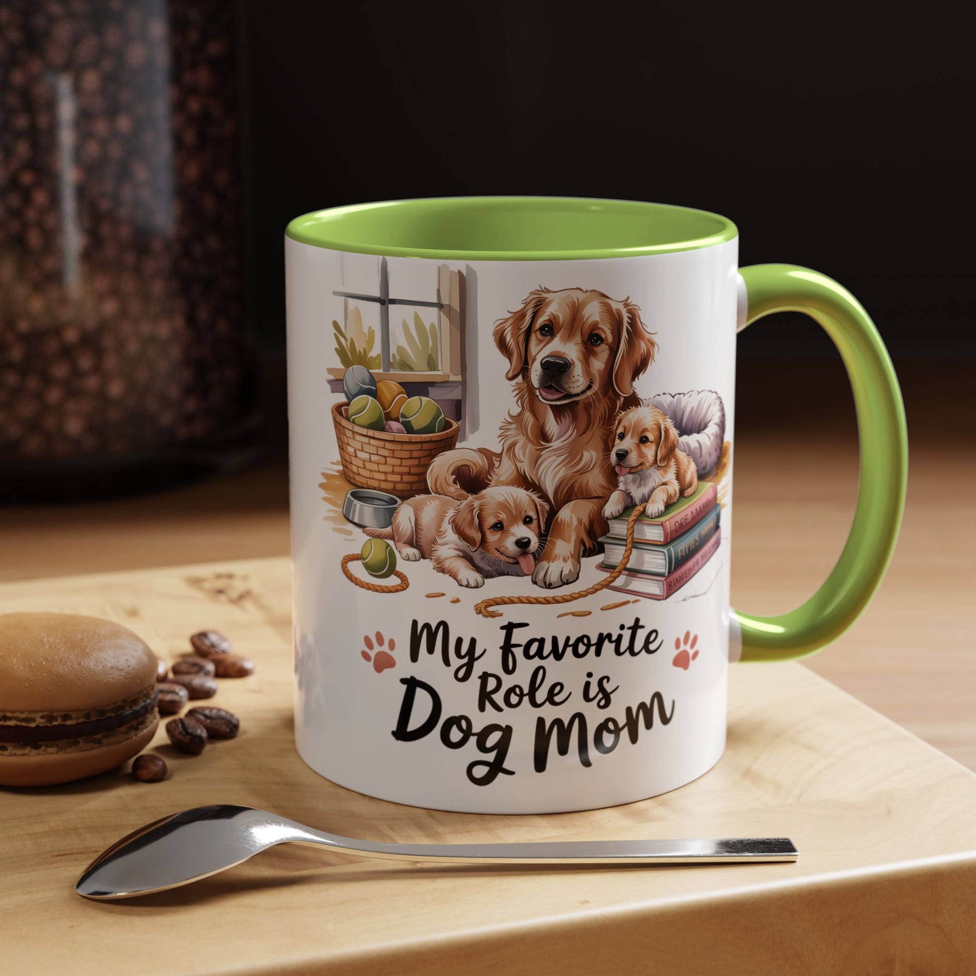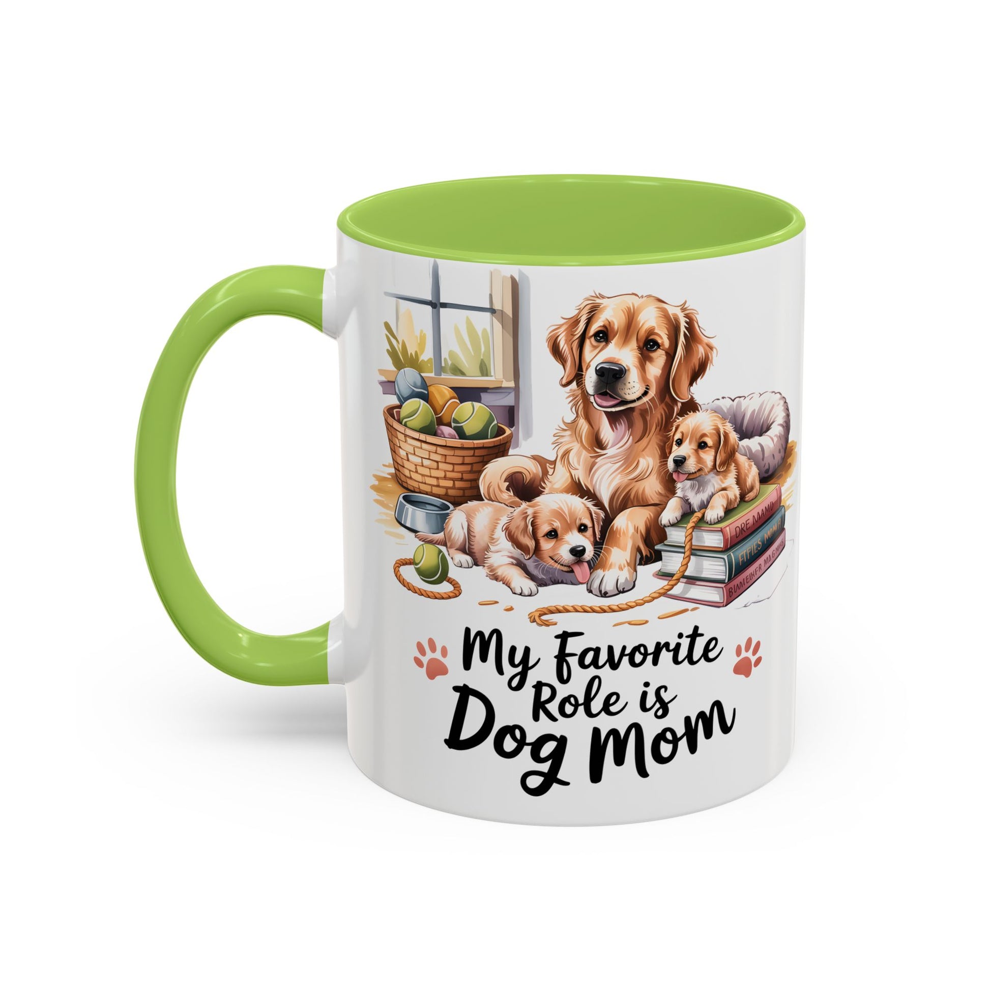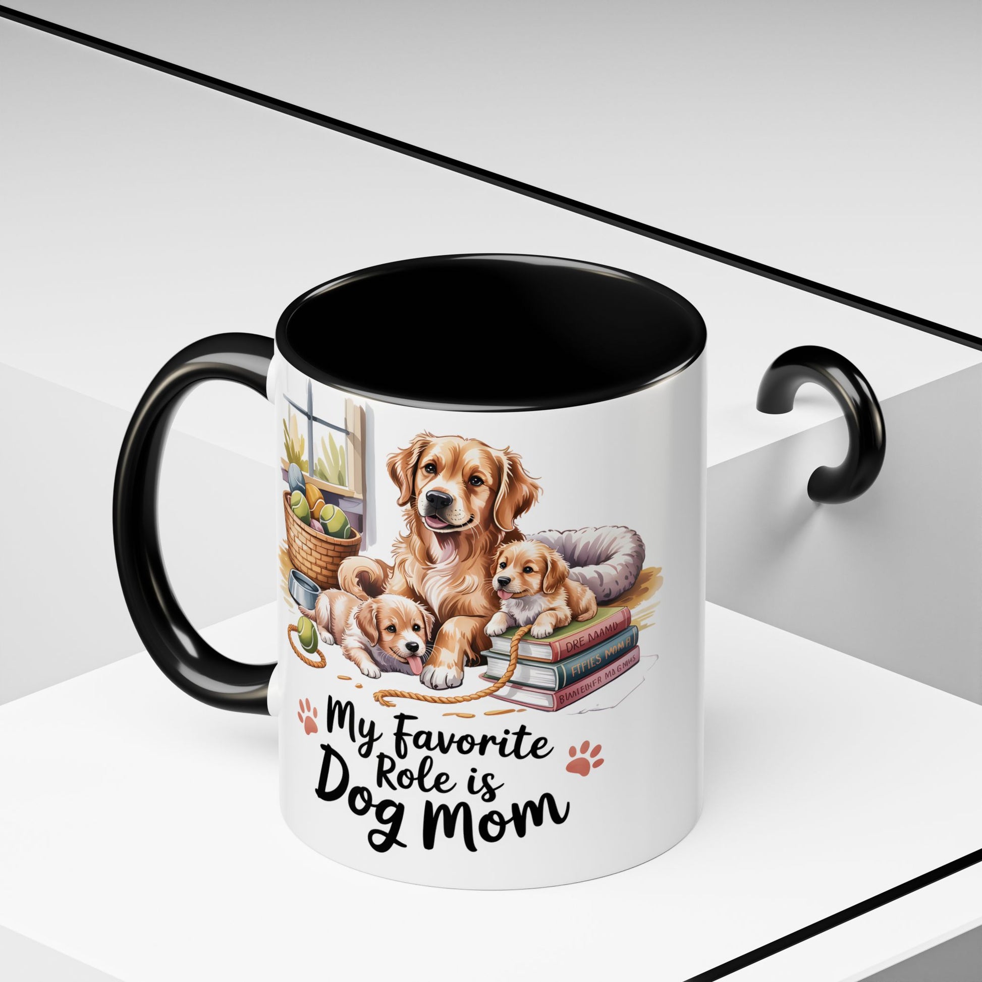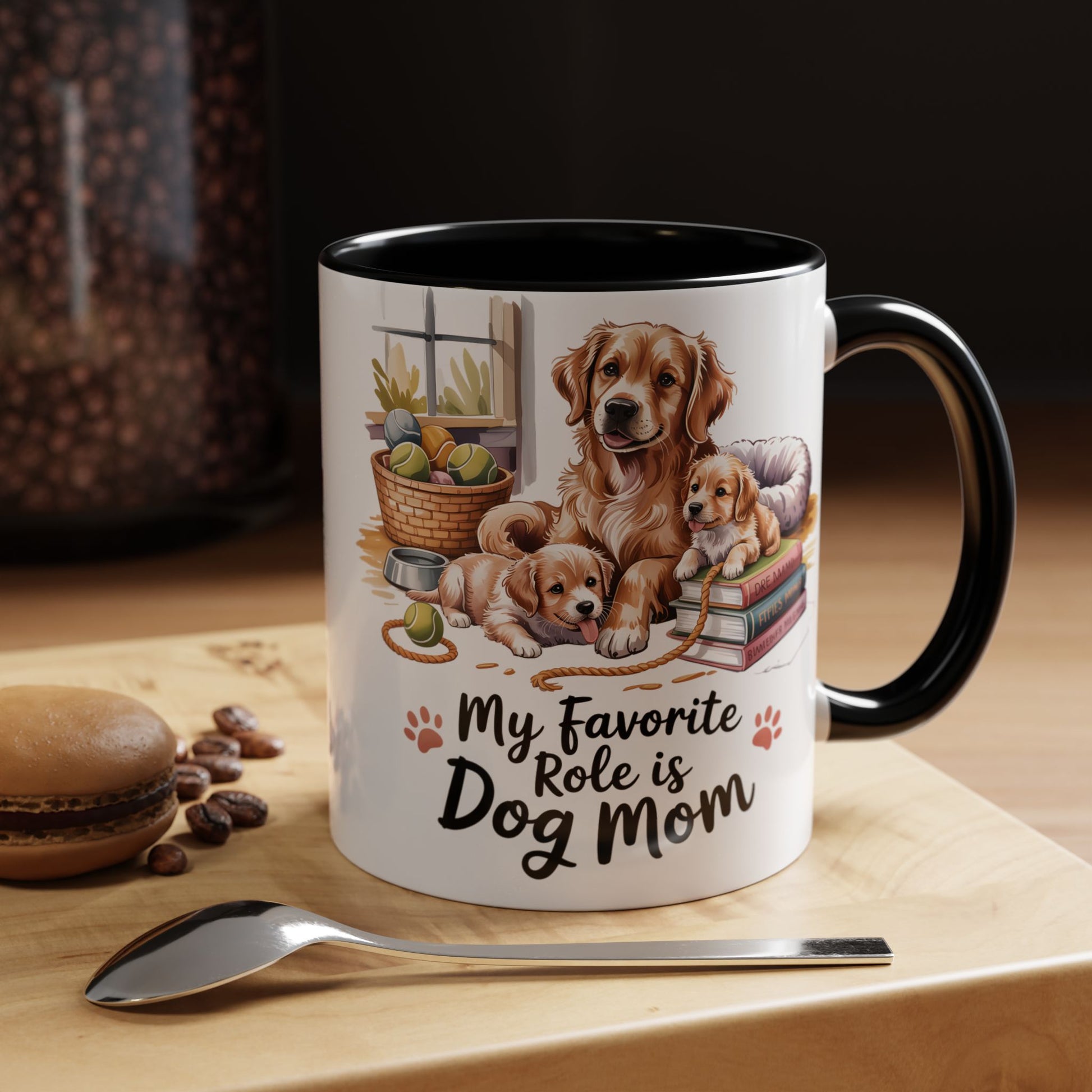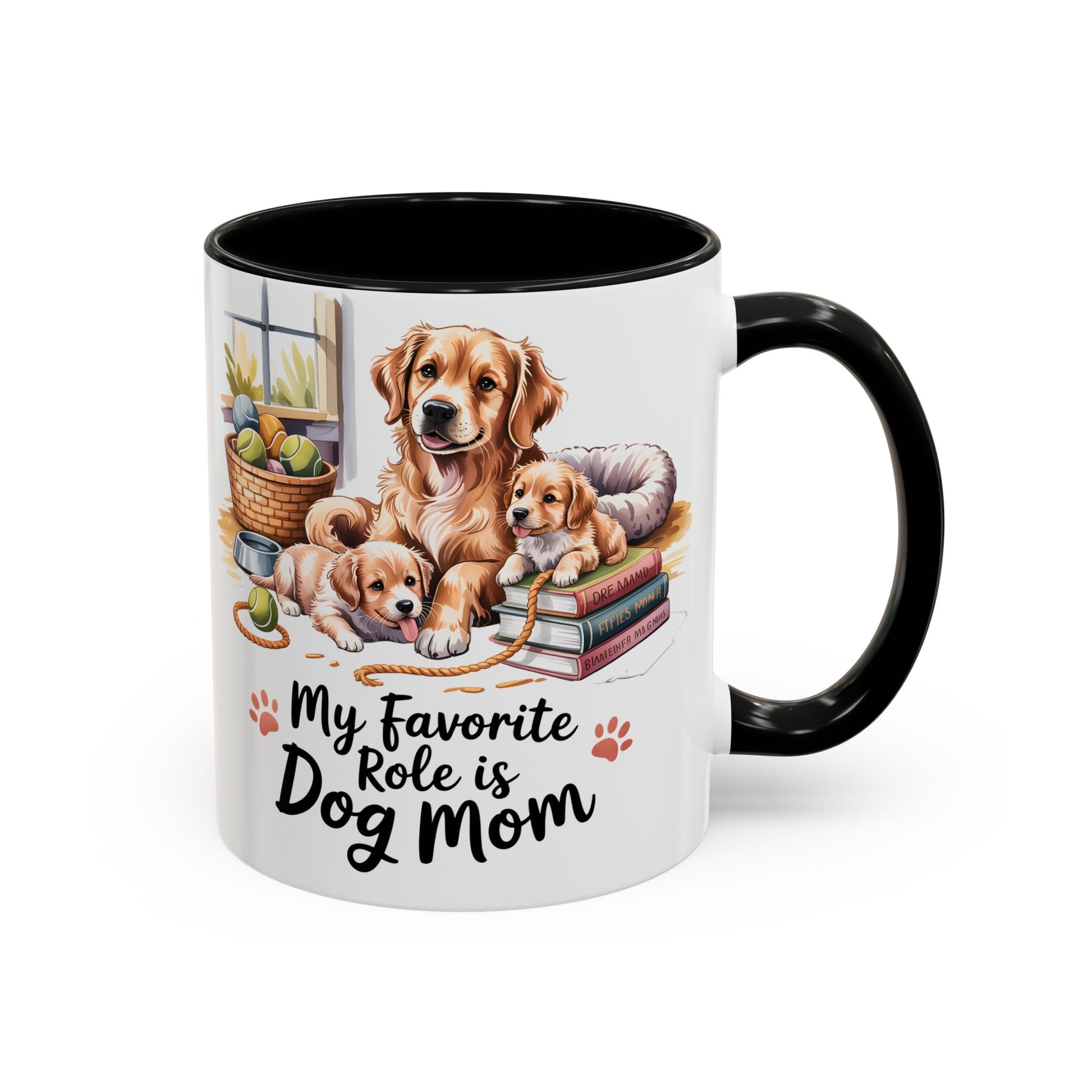 My Favorite Role is Dog Mom Mug – Cute Golden Retriever & Puppies Gift for Dog Lovers, Pet Mom Coffee Cup (11oz / 15oz) - 14799