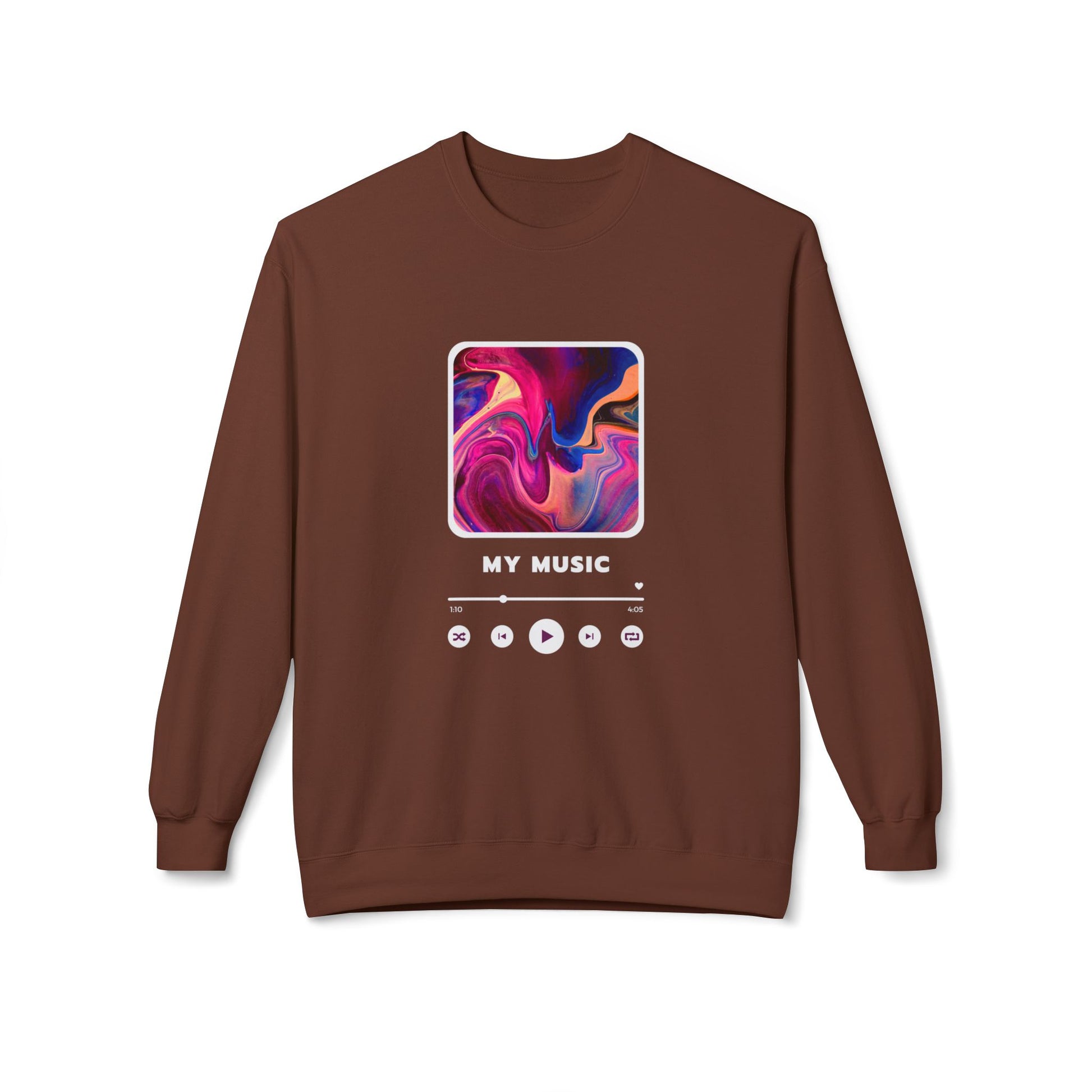 Express your love for the soundtrack of your life with the "My Music" unisex midweight softstyle fleece crewneck sweatshirt. Perfect for music lovers of all kinds, this sweatshirt combines cozy comfort with a sleek, minimalist design that celebrates your passion. With its midweight fleece fabric, it’s great for cooler days or layering during your creative moments.