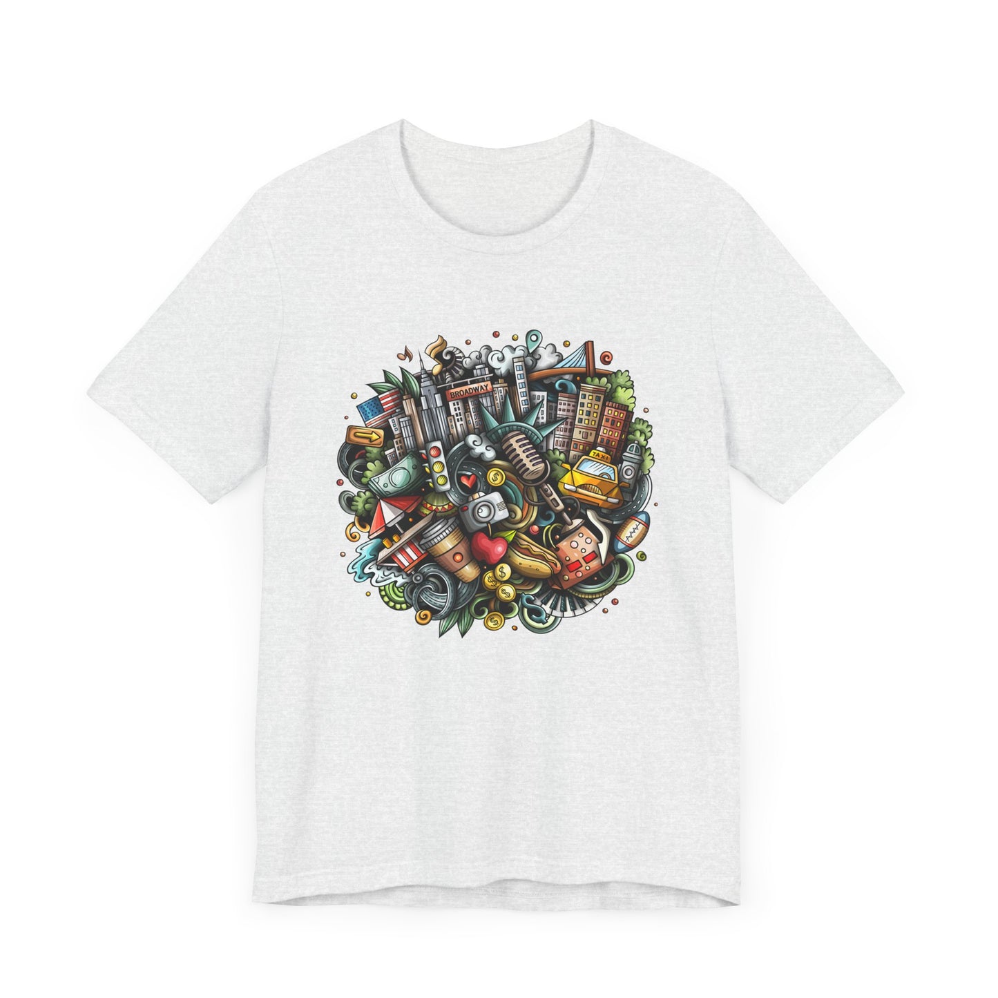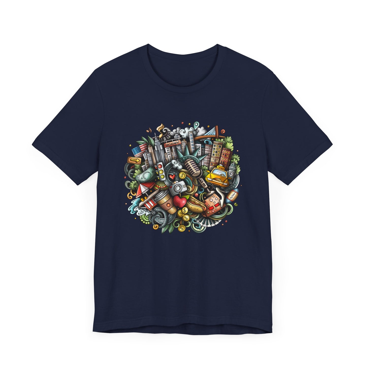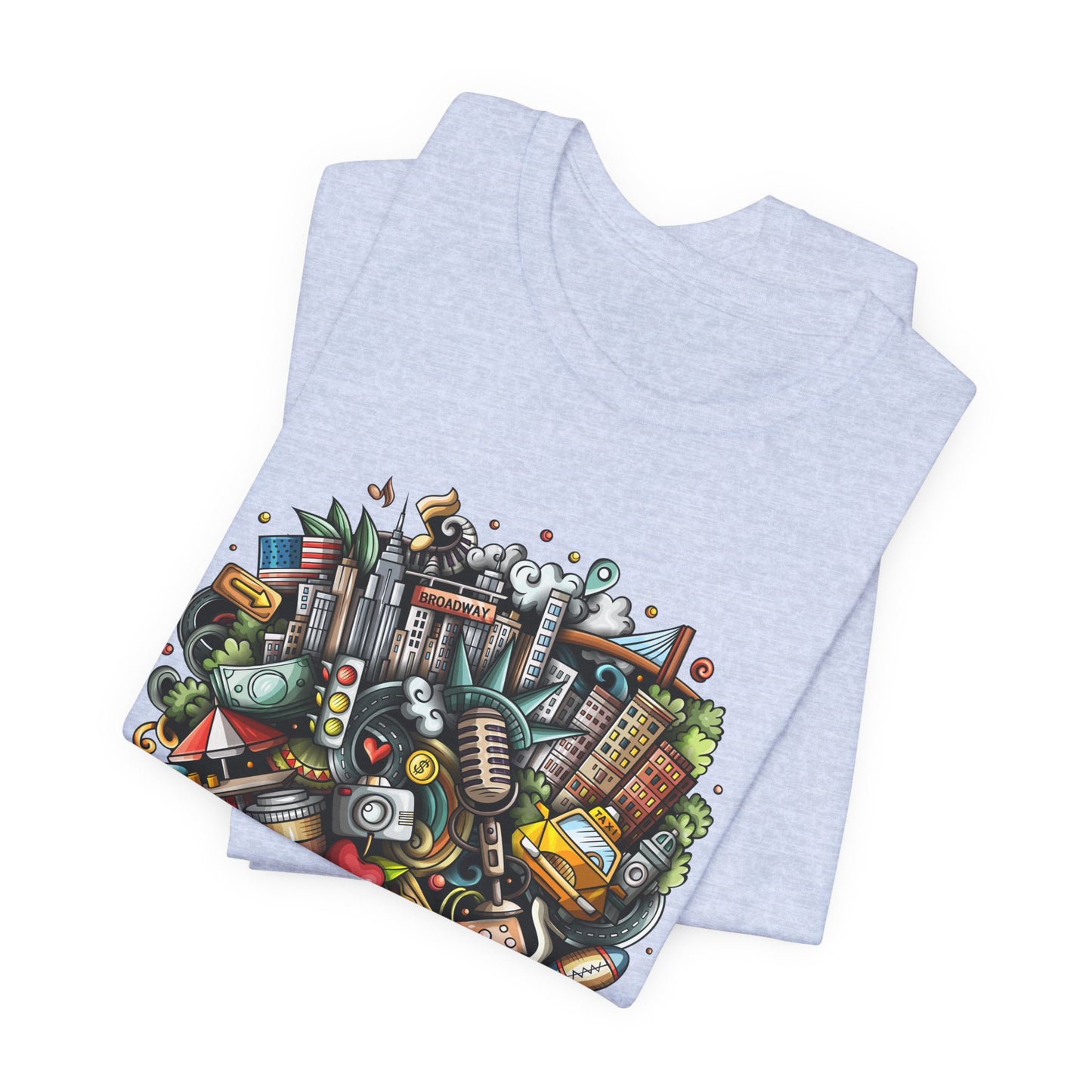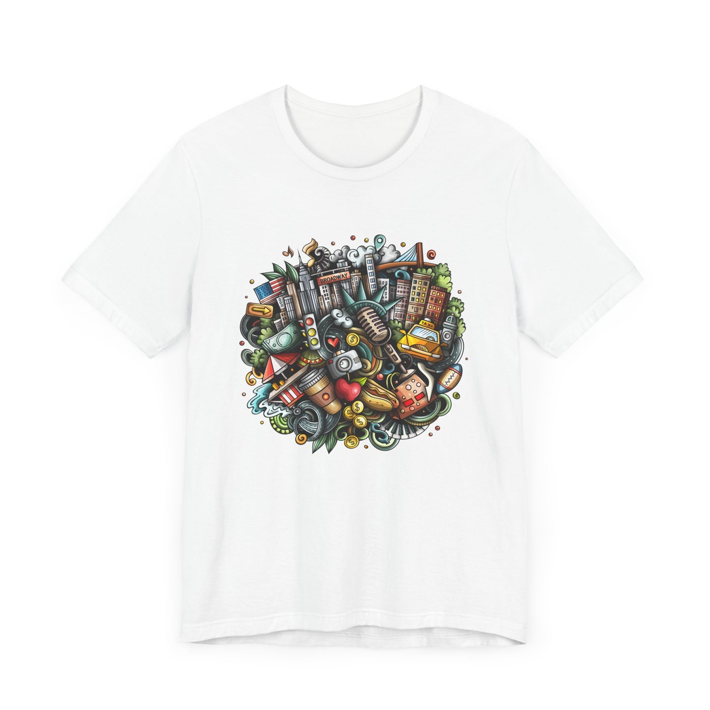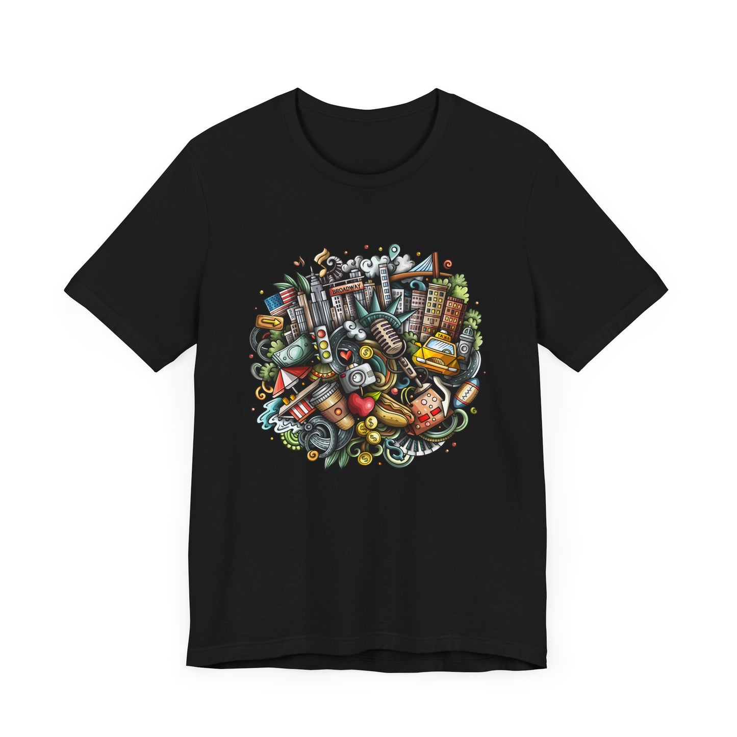 New York, Urban Art Short Sleeve Tee - Vibrant Cityscape Design - 12004