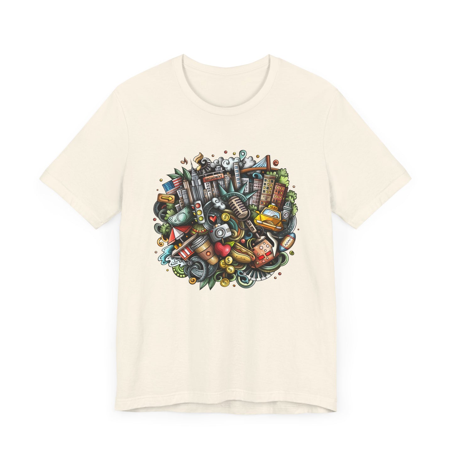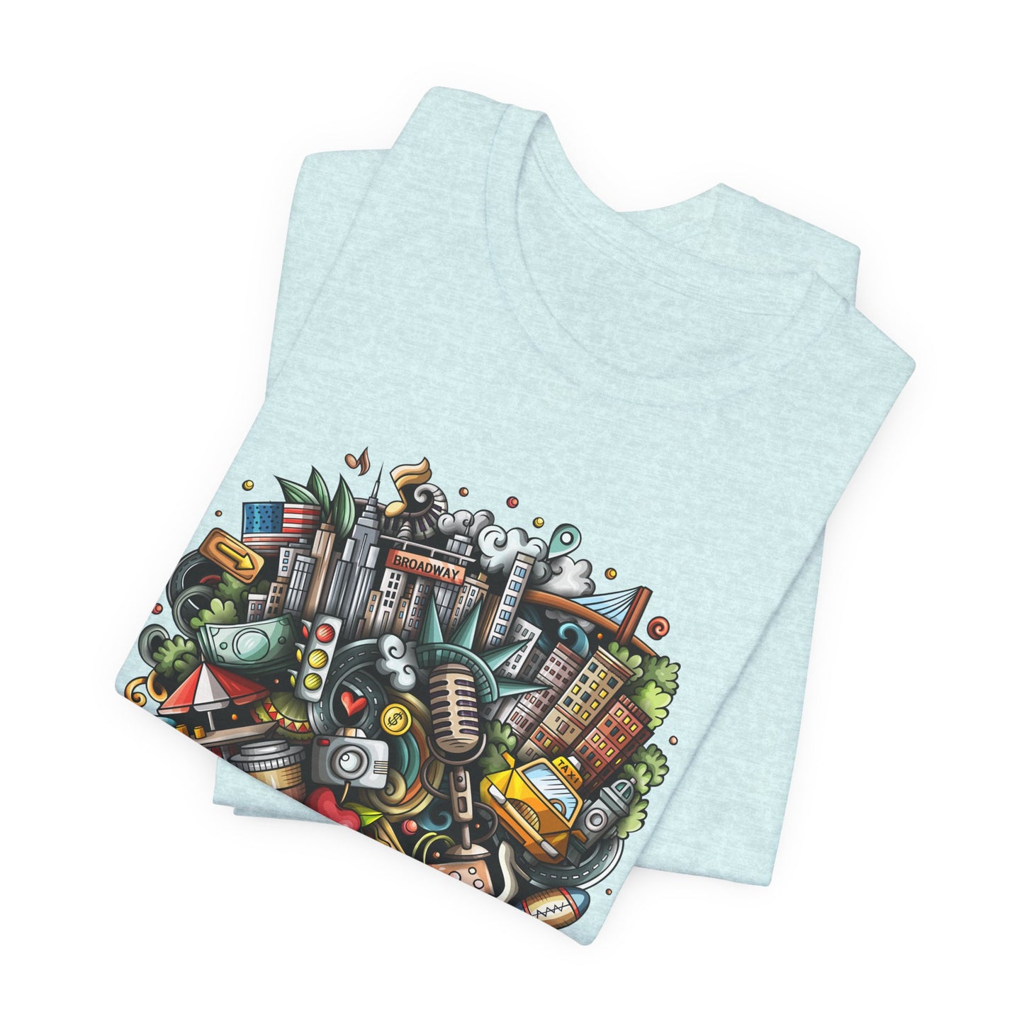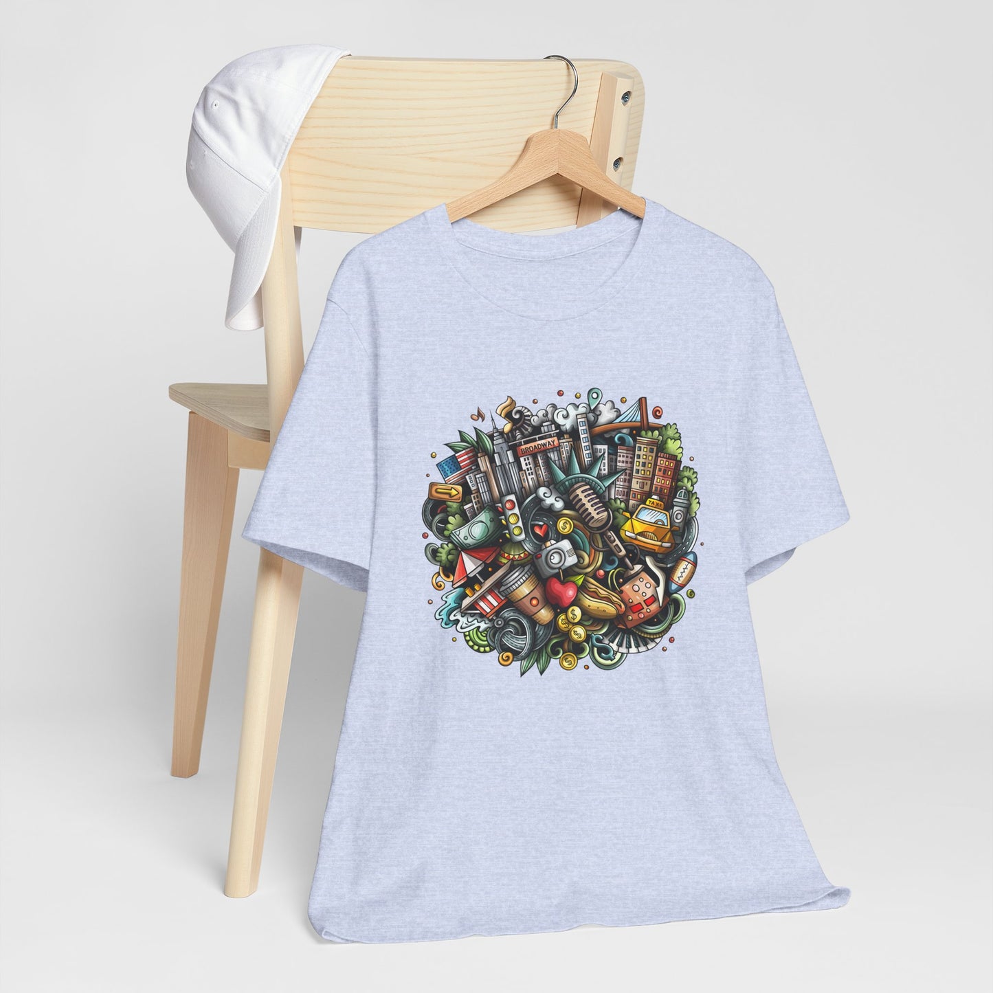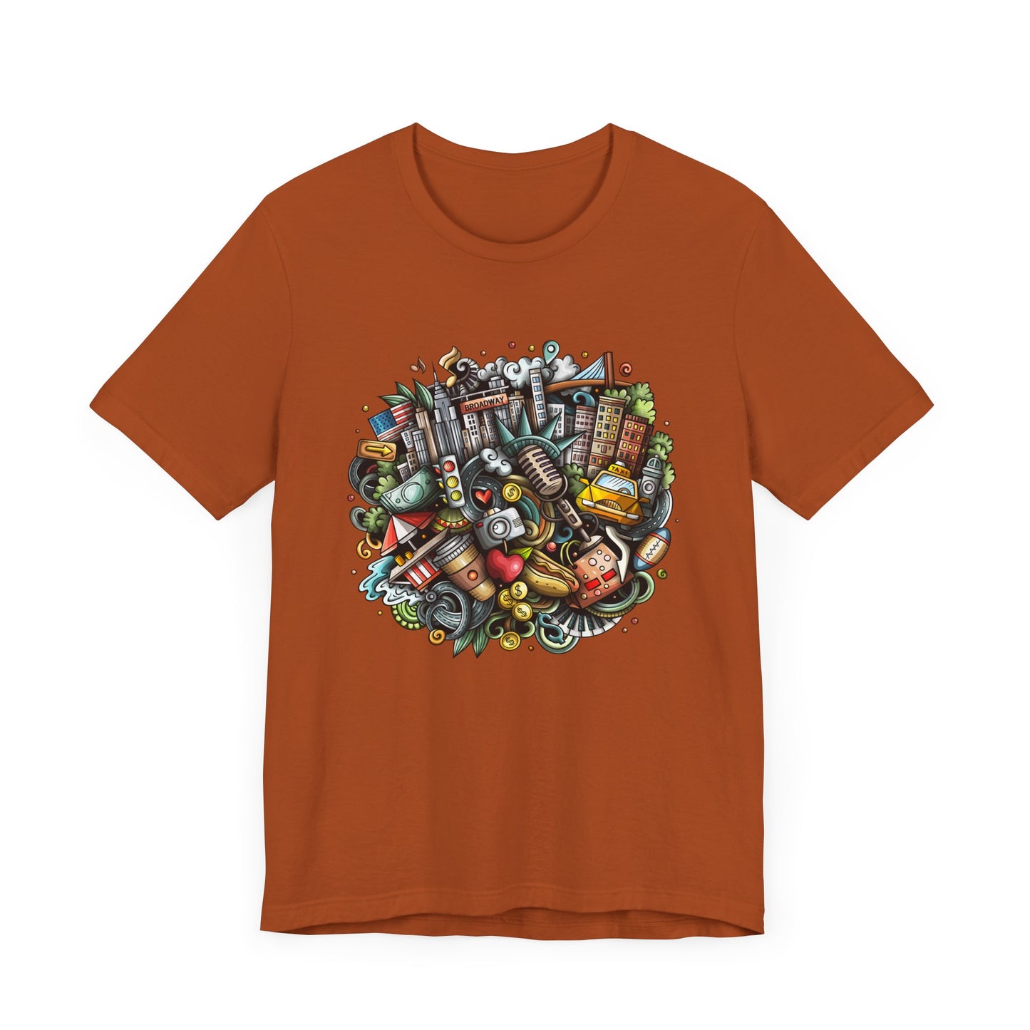 New York, Urban Art Short Sleeve Tee - Vibrant Cityscape Design - 12004