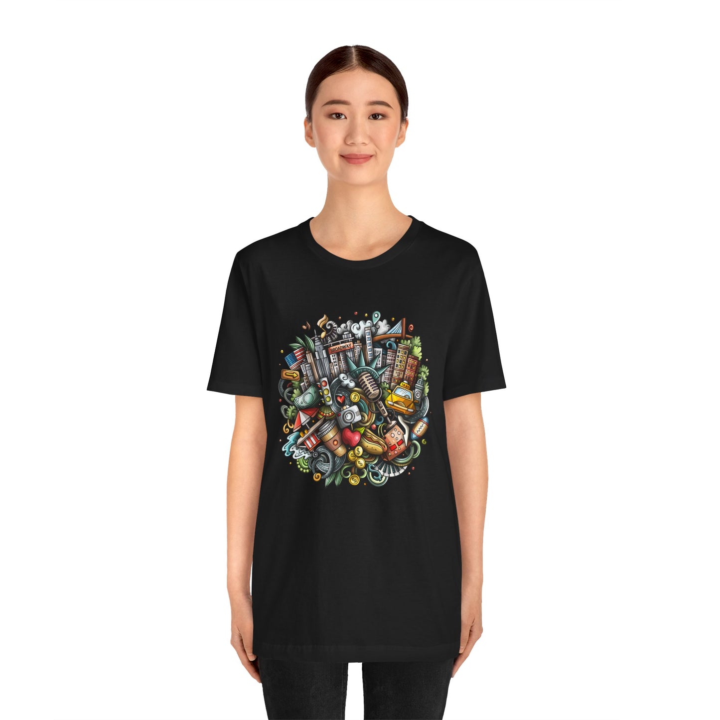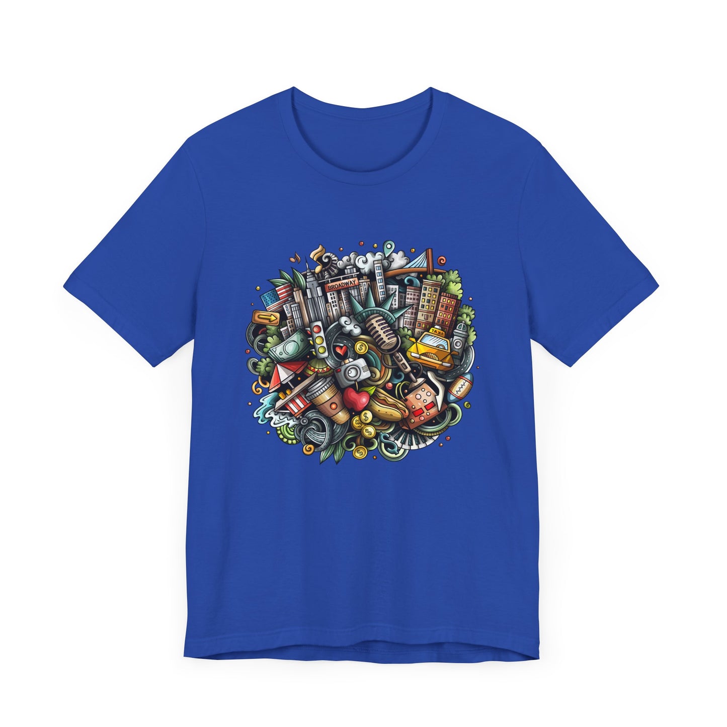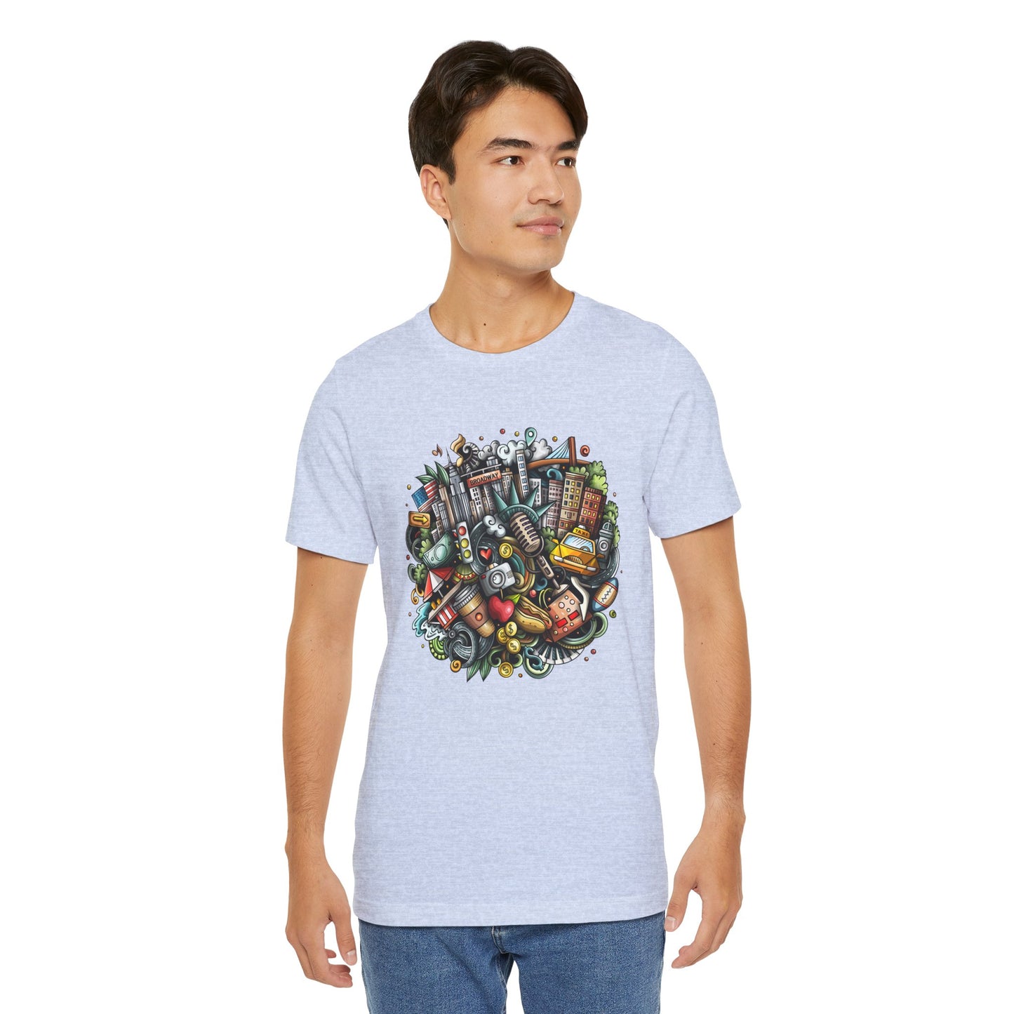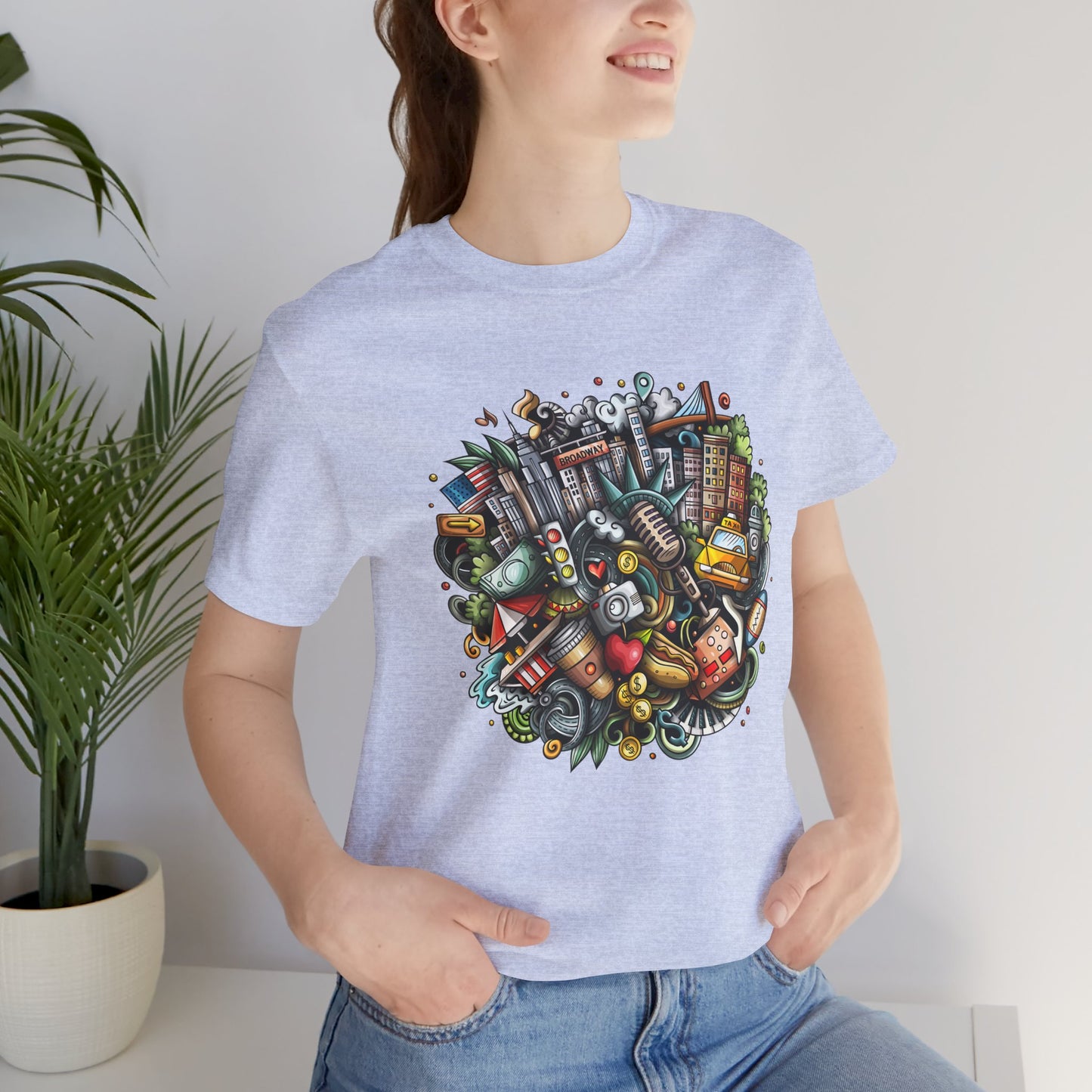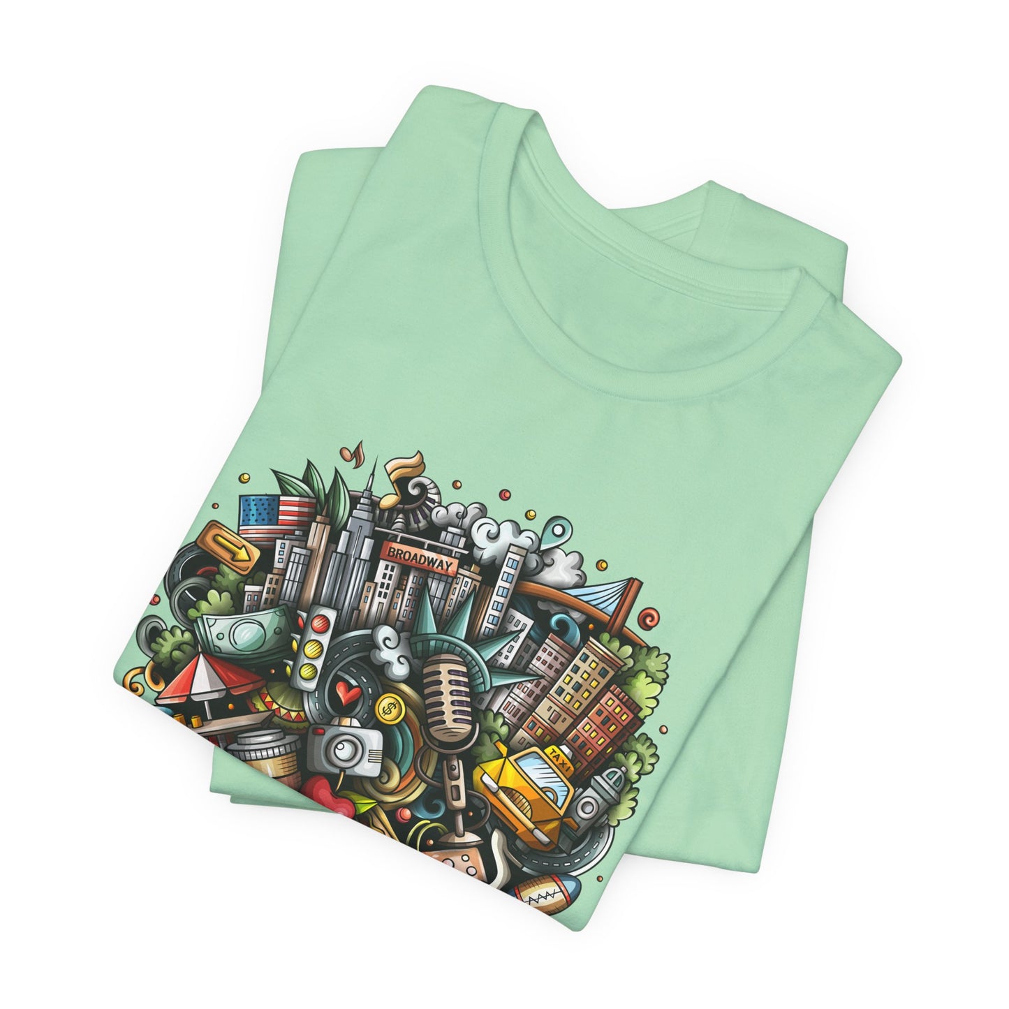 New York, Urban Art Short Sleeve Tee - Vibrant Cityscape Design - 12004