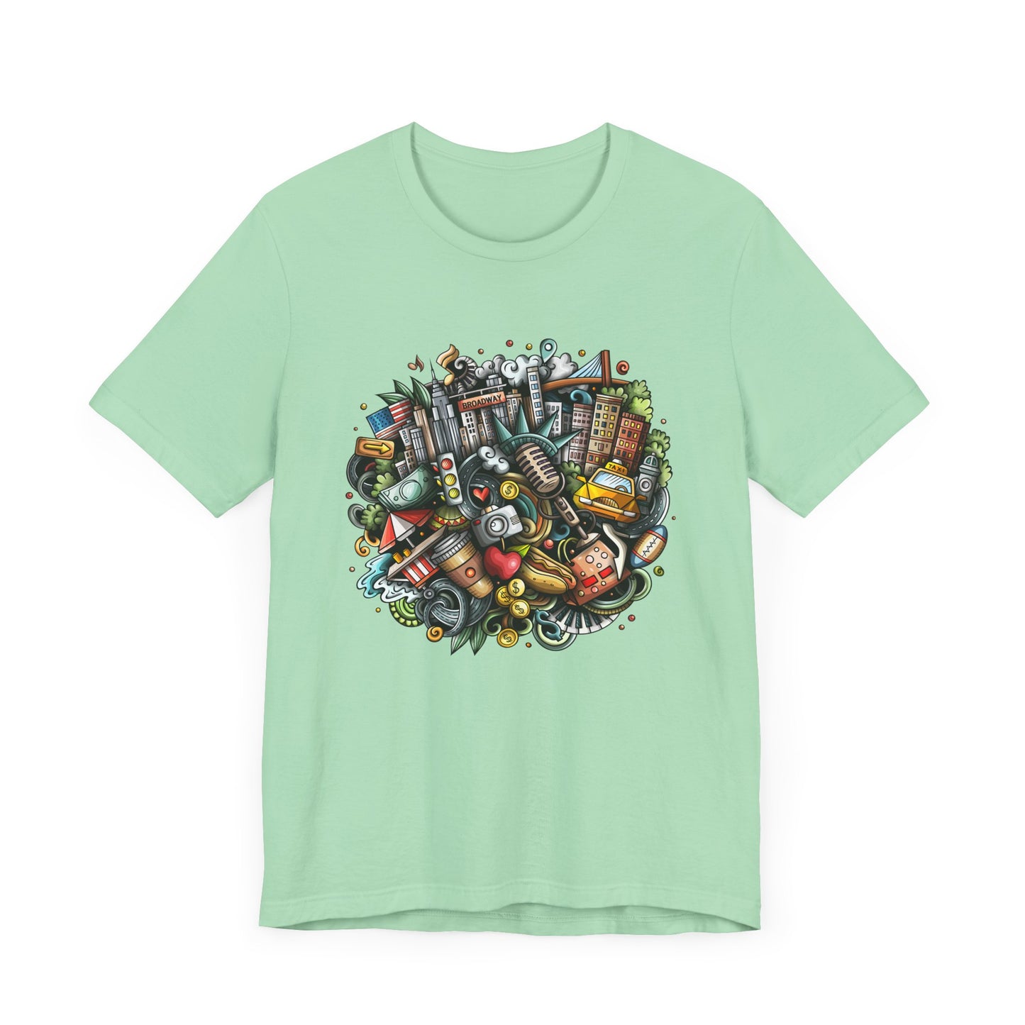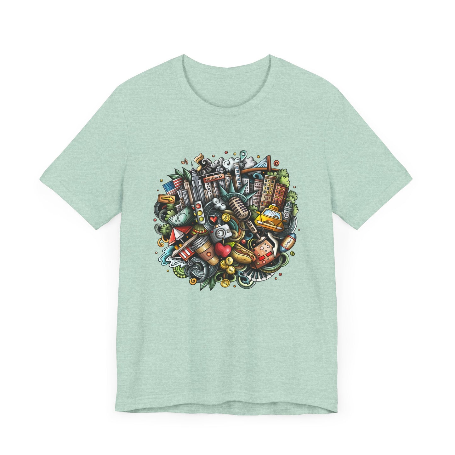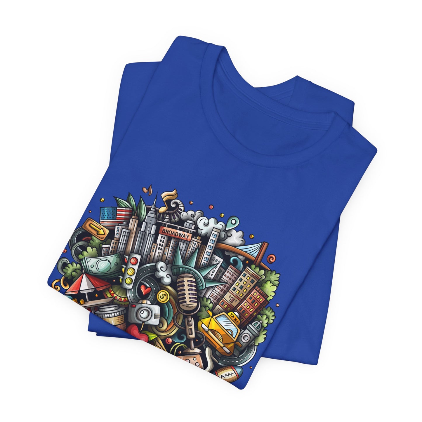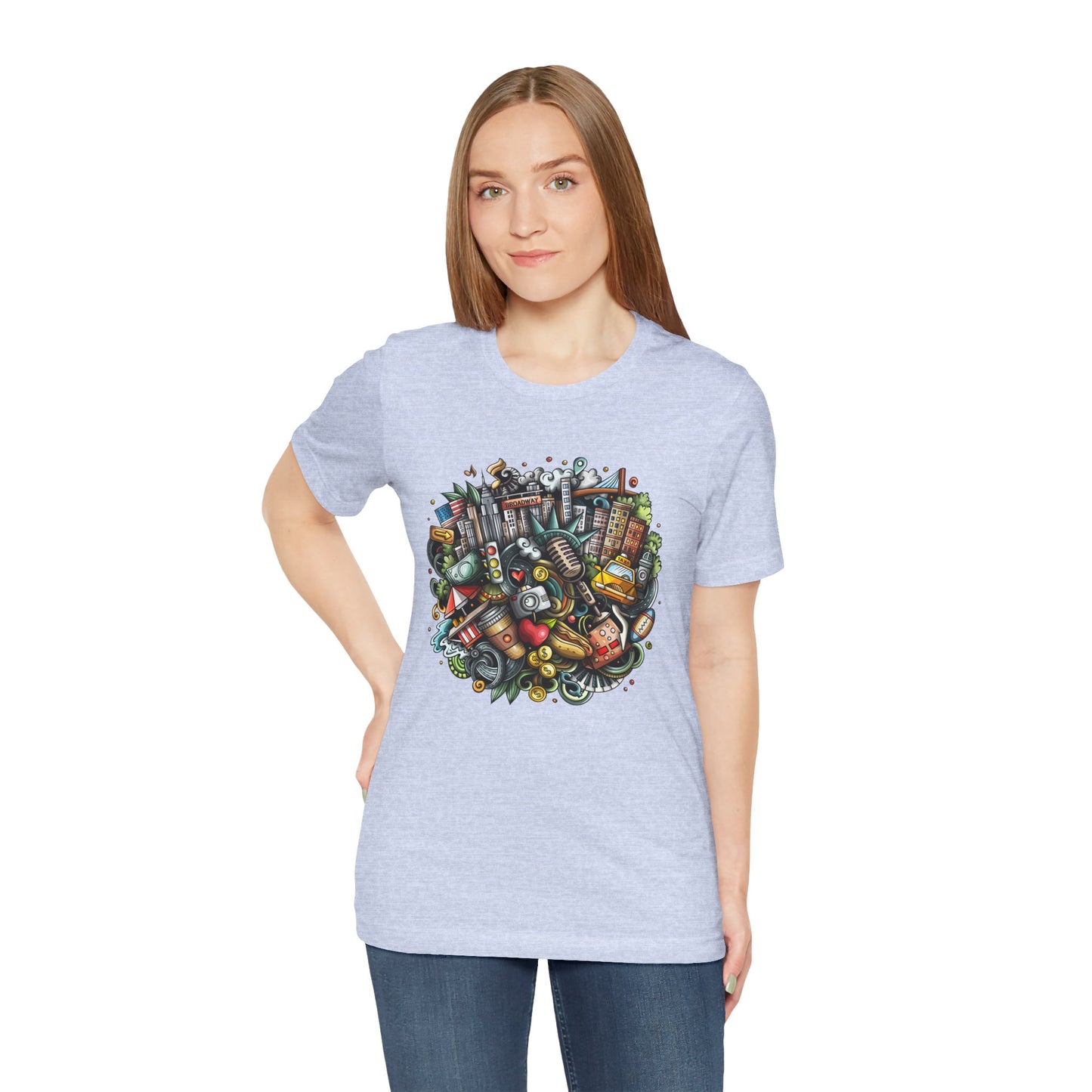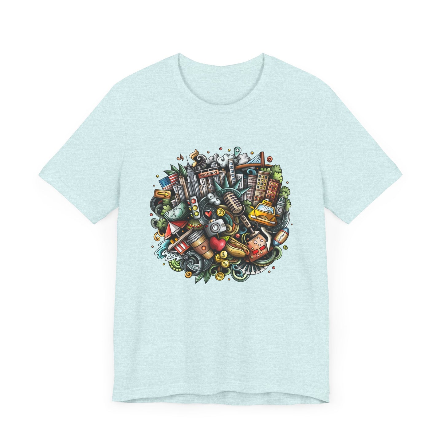 New York, Urban Art Short Sleeve Tee - Vibrant Cityscape Design - 12004