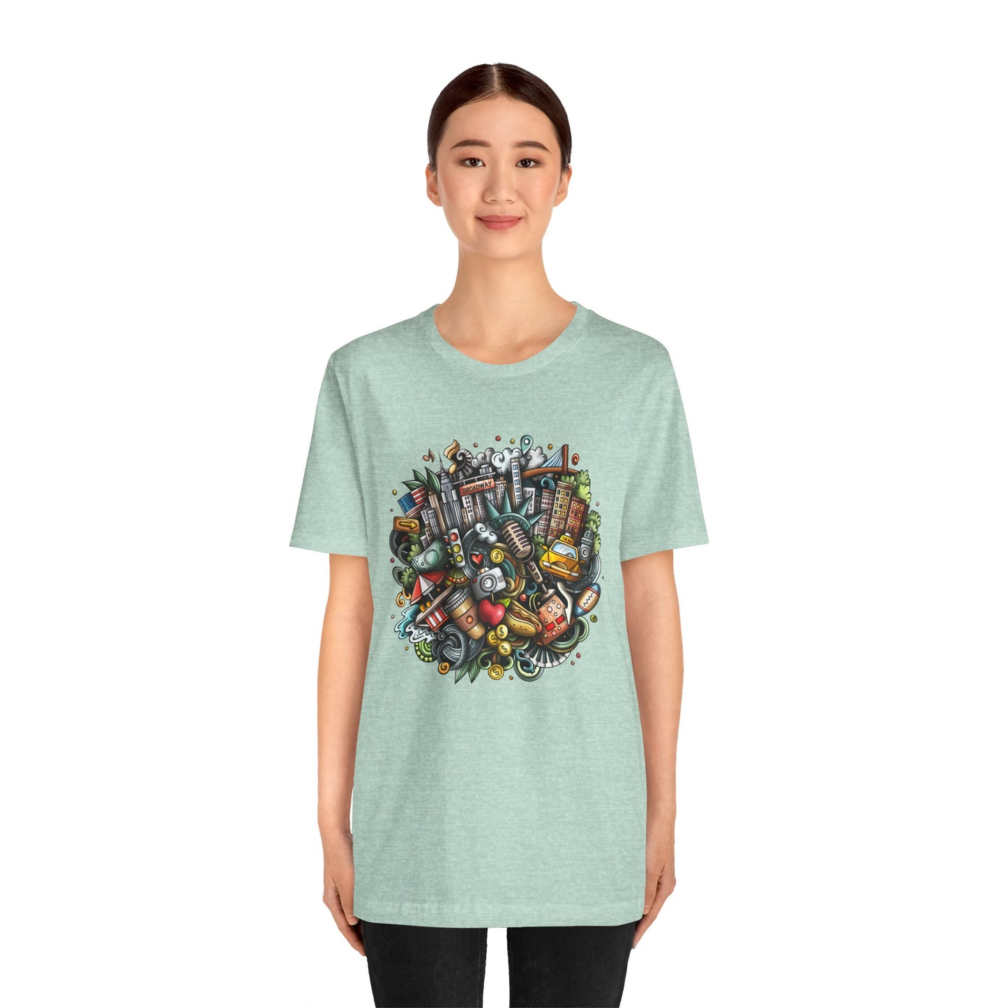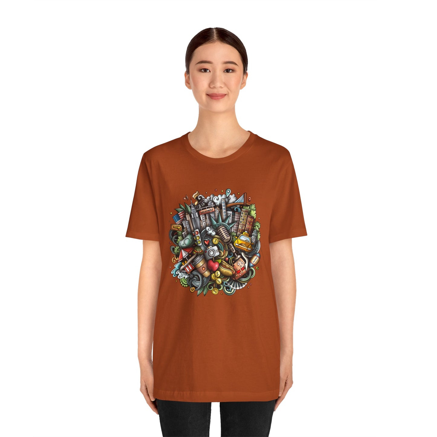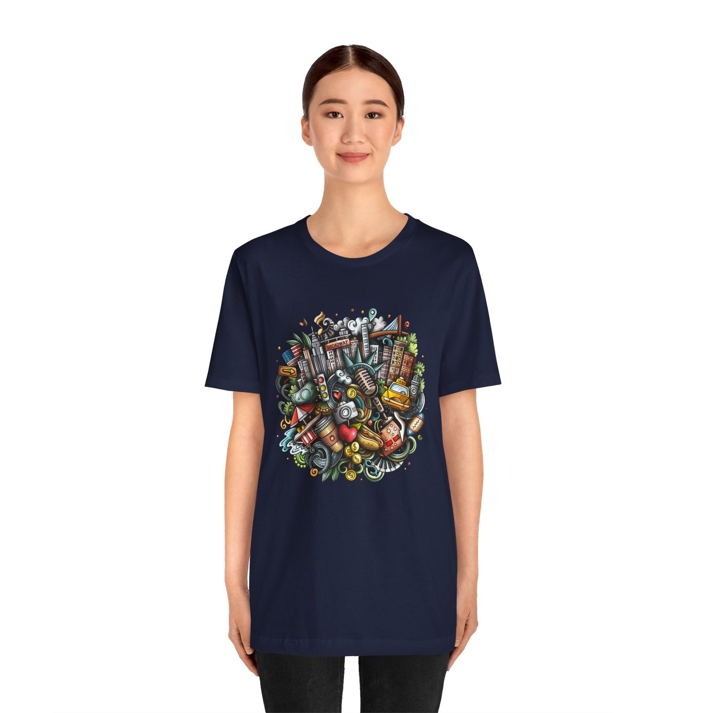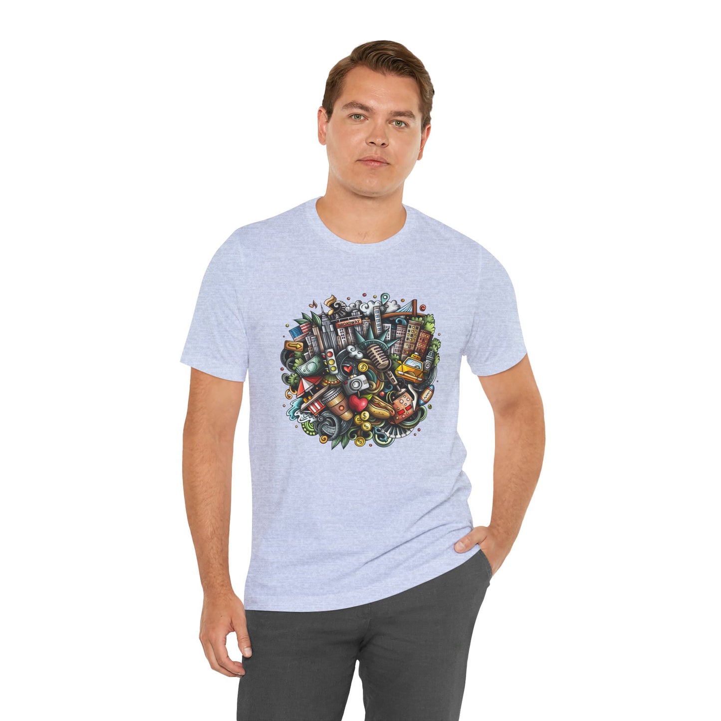 New York, Urban Art Short Sleeve Tee - Vibrant Cityscape Design - 12004
