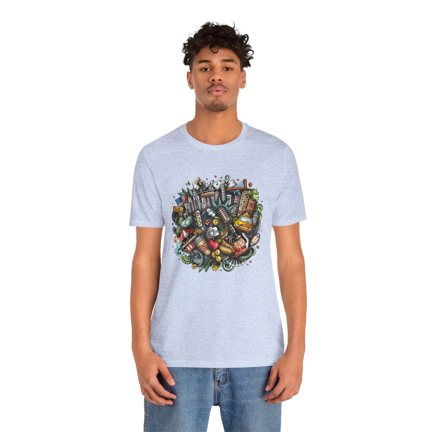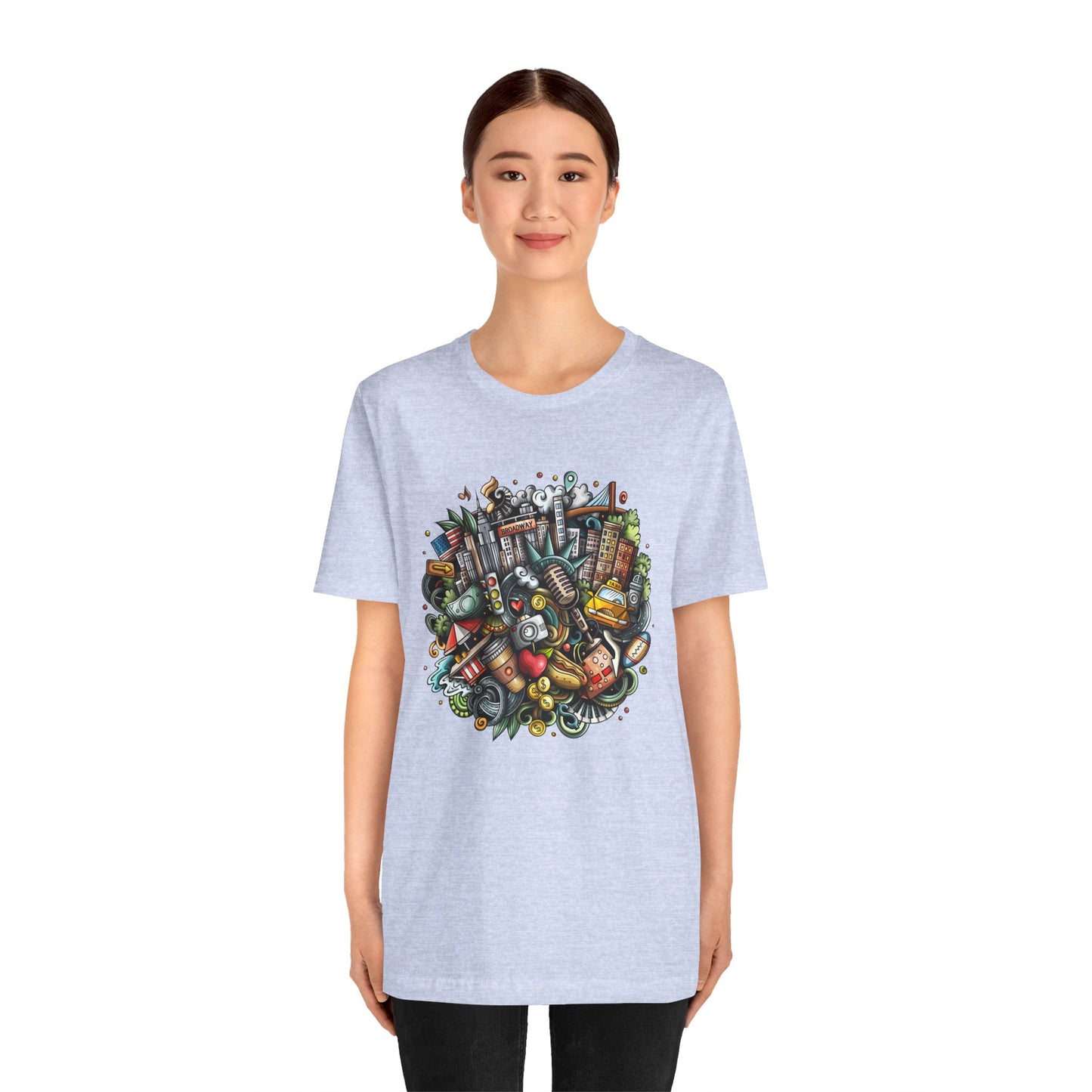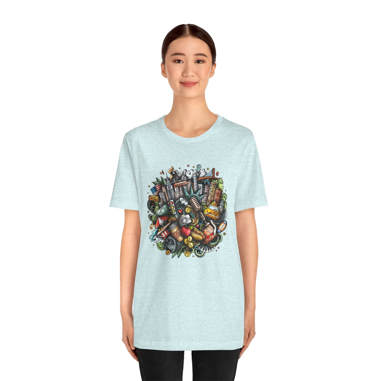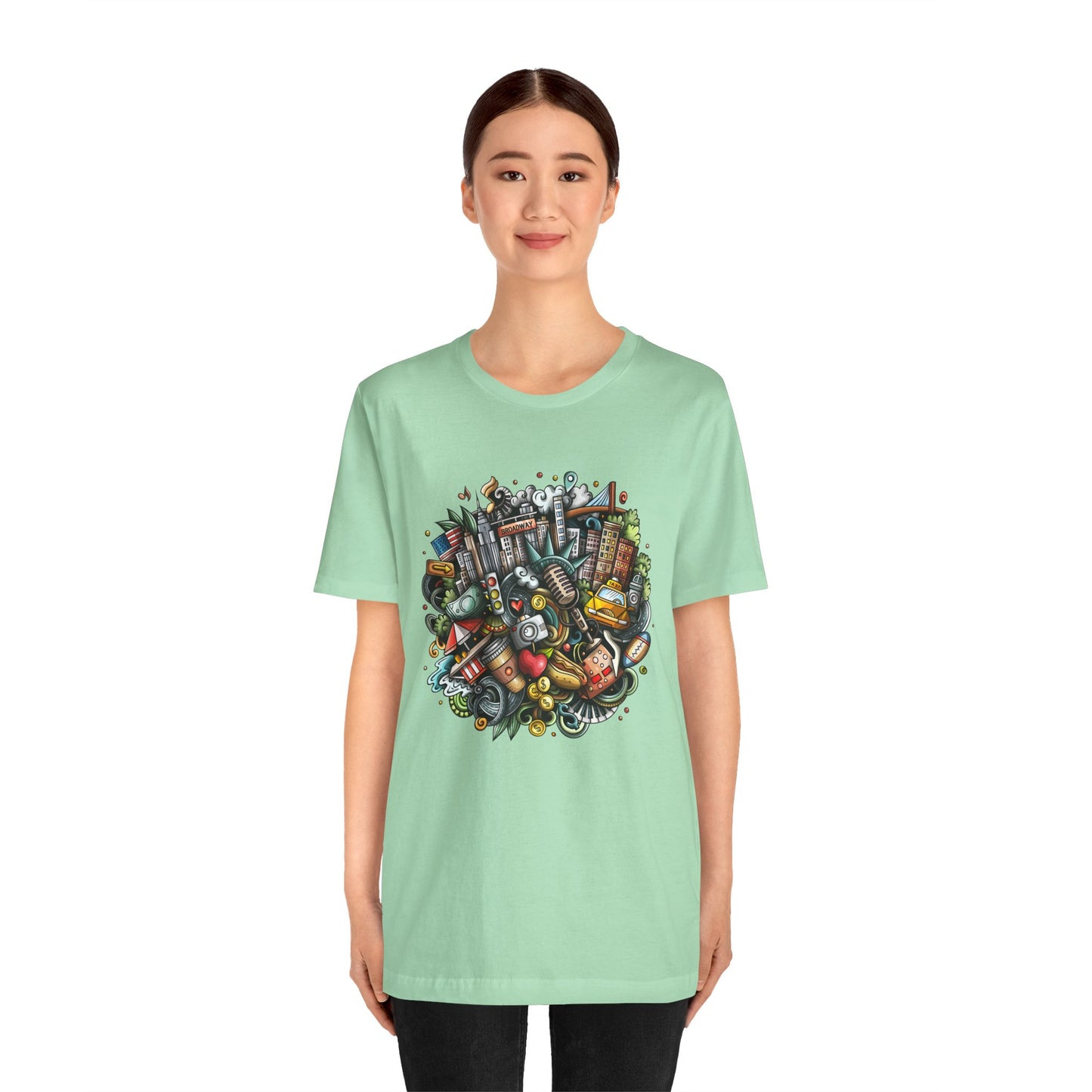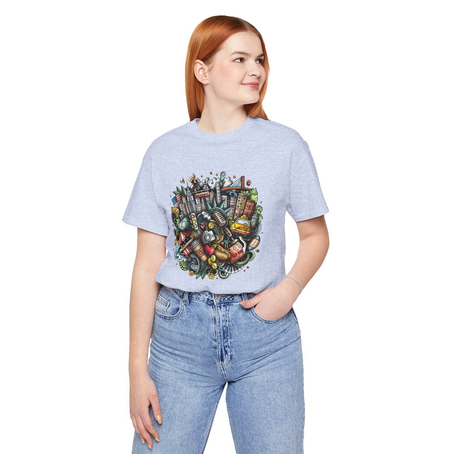 New York, Urban Art Short Sleeve Tee - Vibrant Cityscape Design - 12004