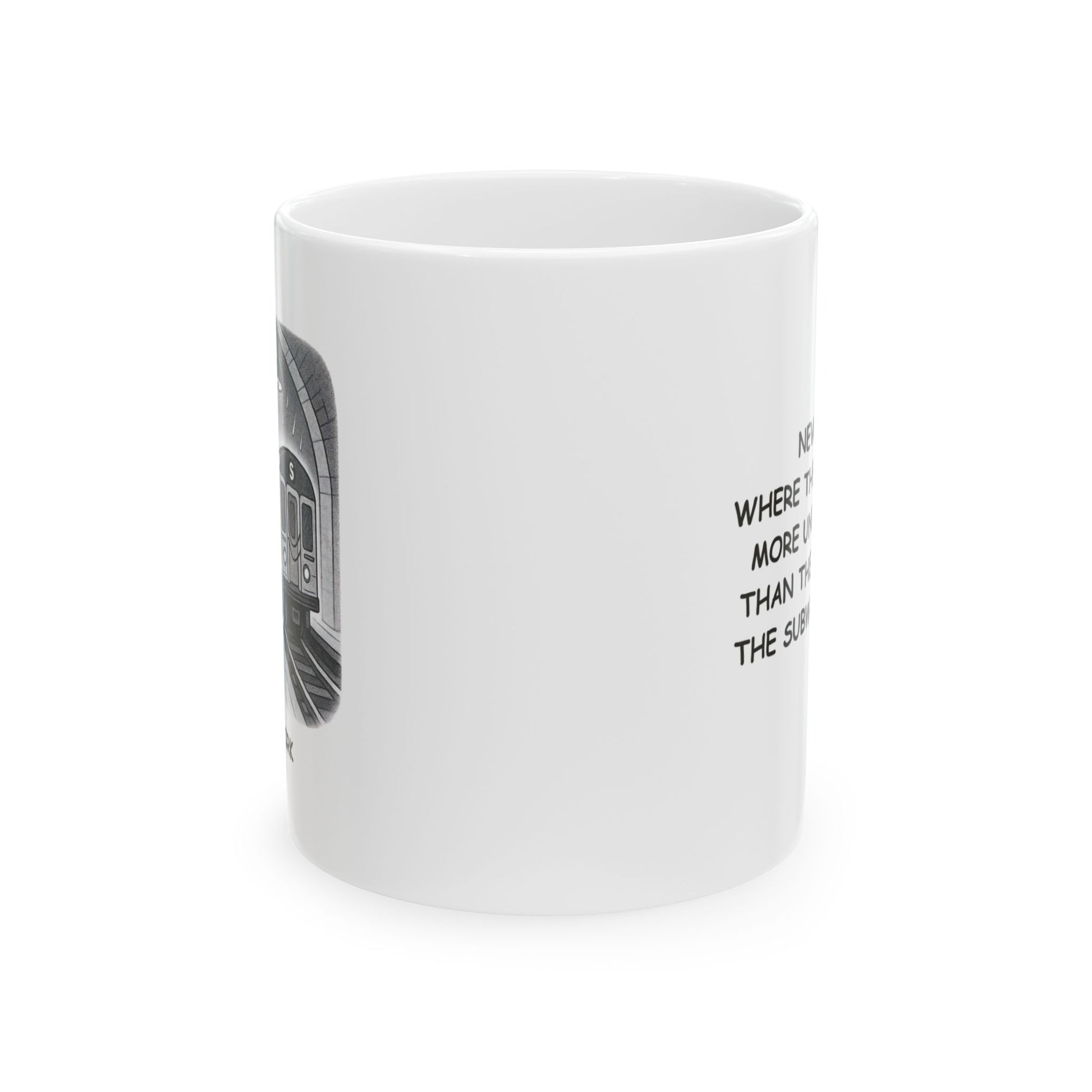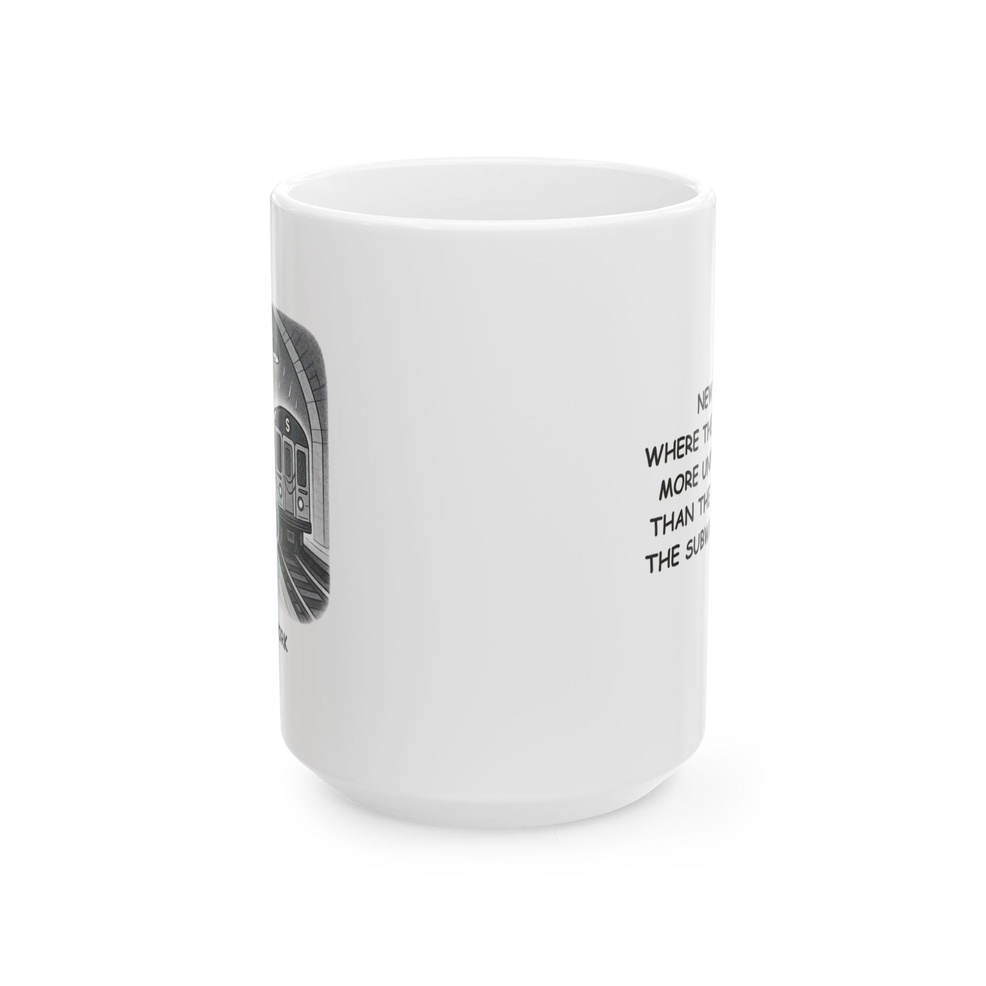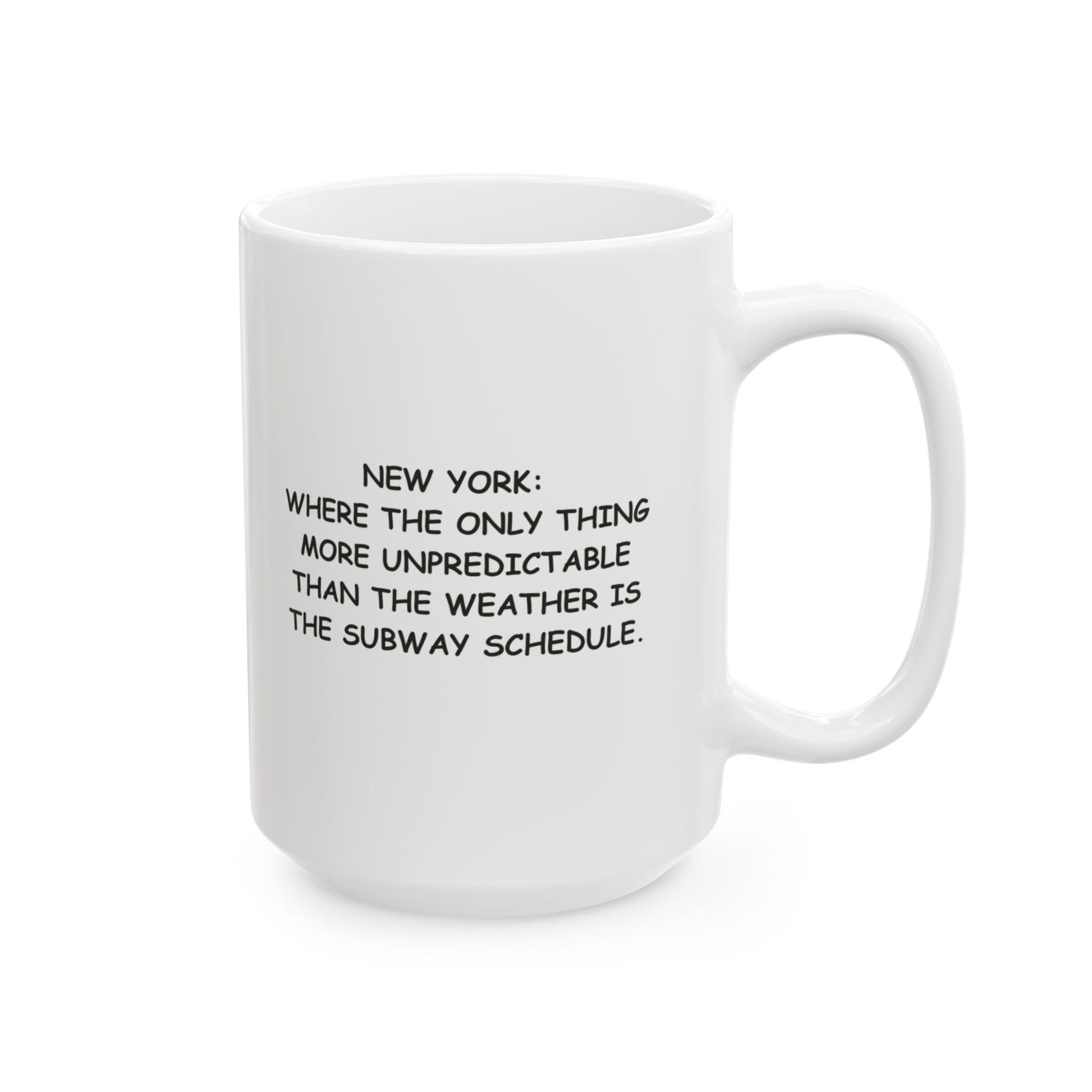 "New York: Where the only thing more unpredictable than the weather is the subway schedule." Ceramic Mug, (11oz, 15oz) - 12845