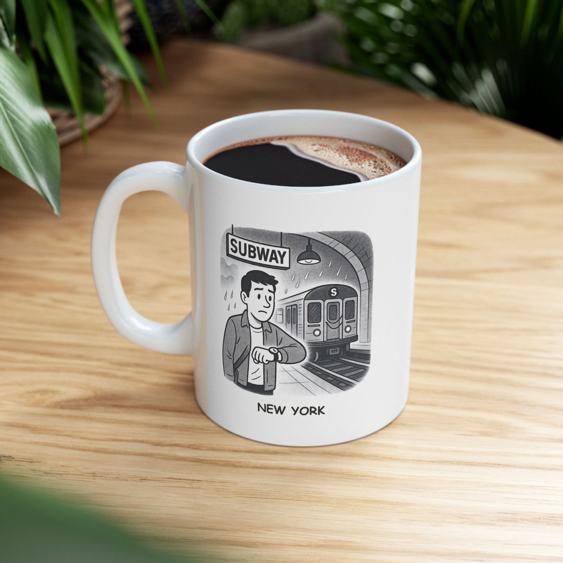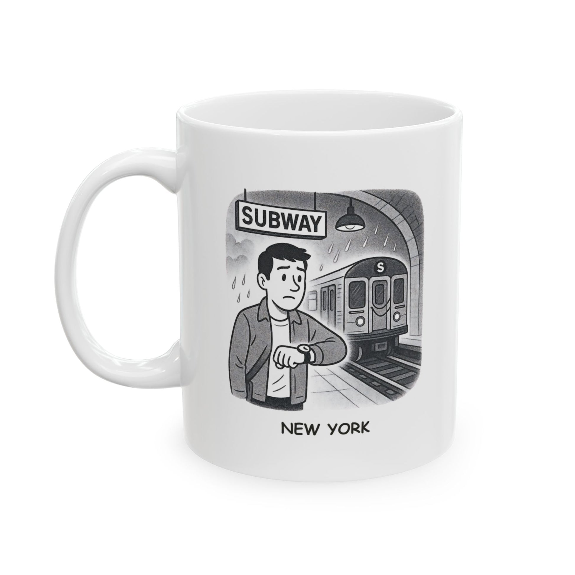 Brace yourself for delays—with a smile and a sip. Our “New York: Where the only thing more unpredictable than the weather is the subway schedule” ceramic mug captures the everyday chaos that makes city life unforgettable. Whether you're dodging raindrops or waiting for that mysteriously delayed train, this mug is your trusty sidekick through it all.