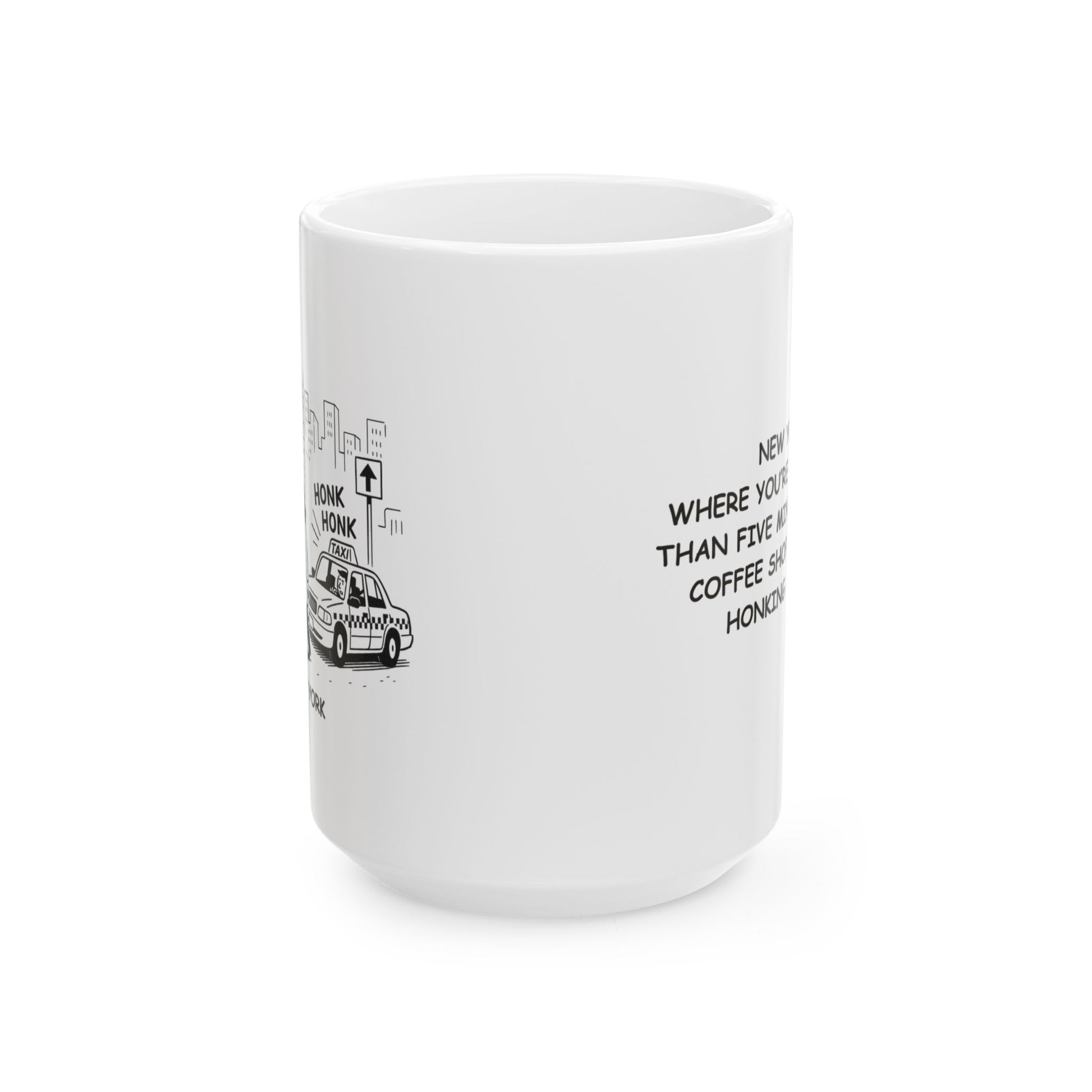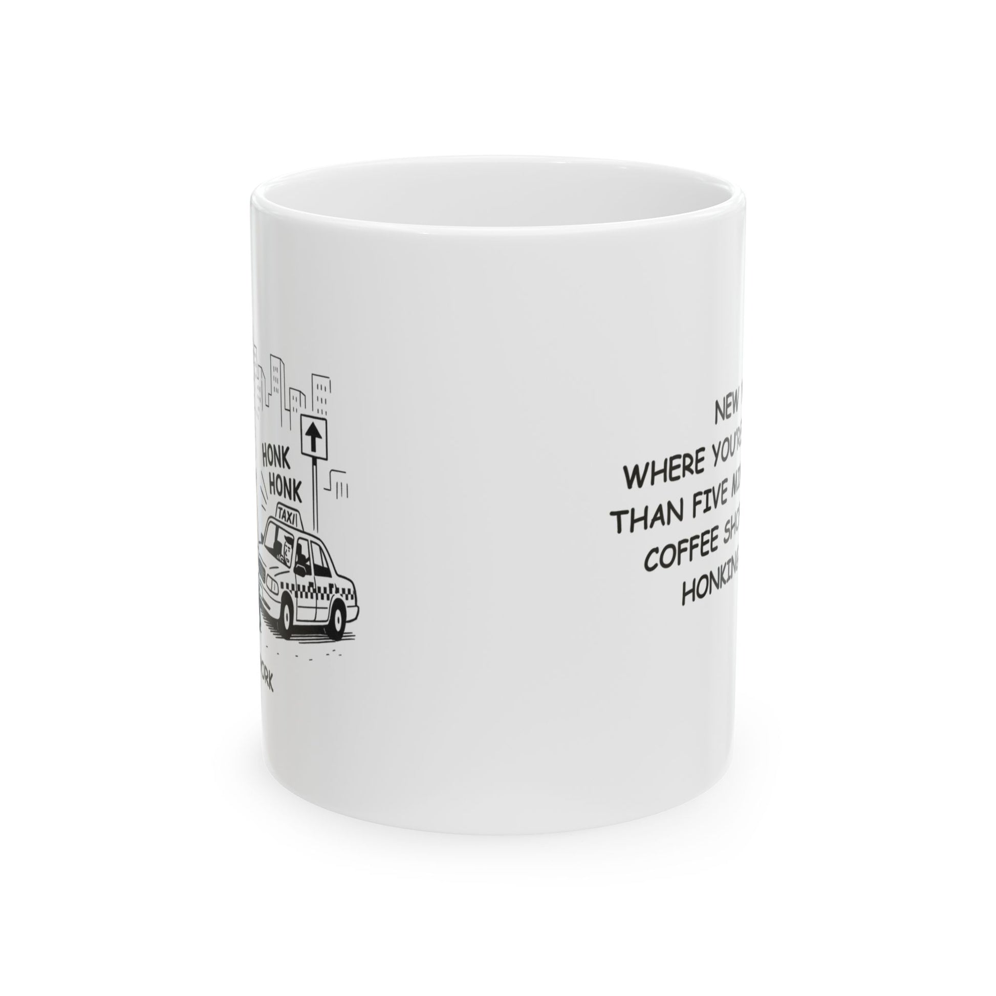 "New York: Where you’re never more than five minutes from a coffee shop or a taxi honking at you." Ceramic Mug - 11oz & 15oz | 12839