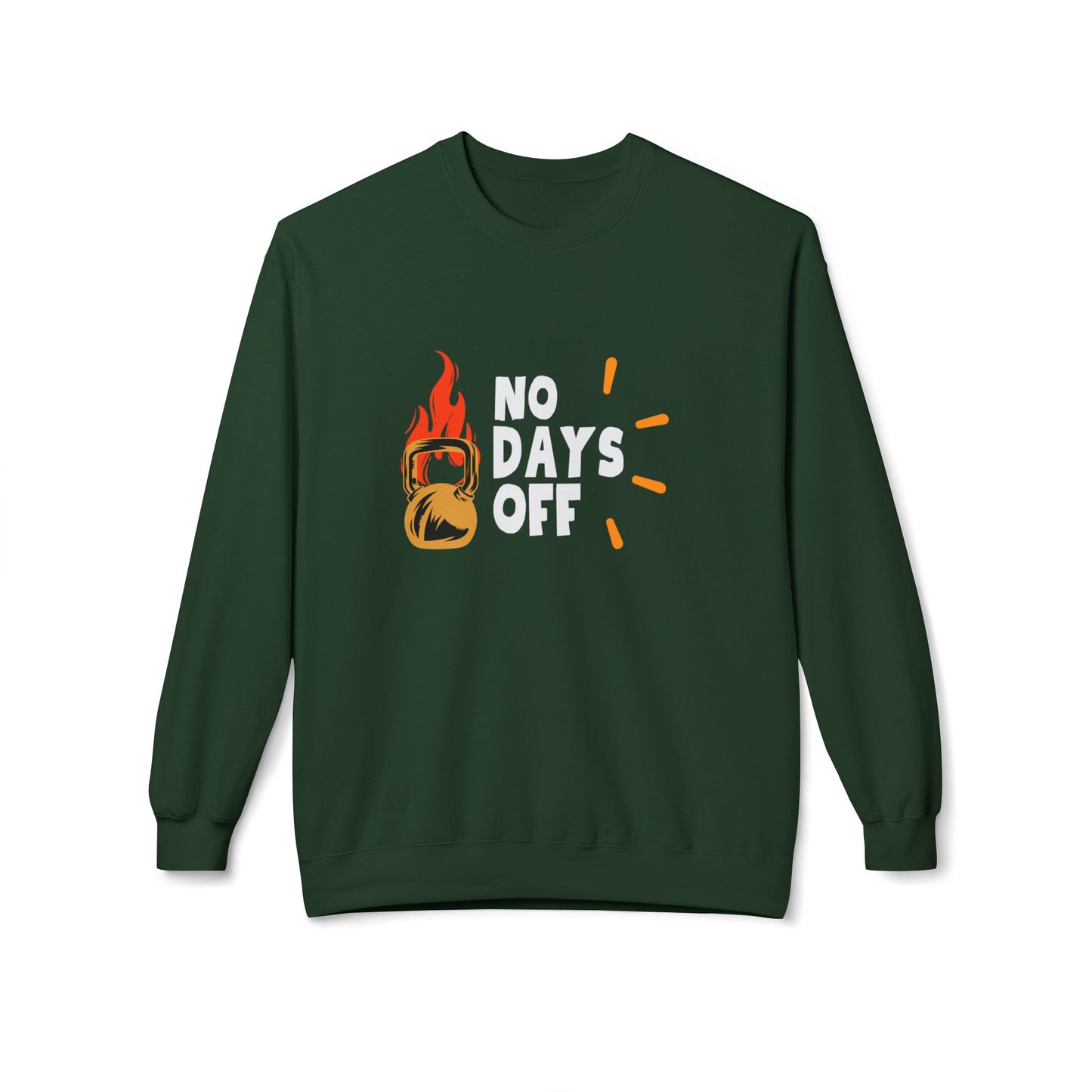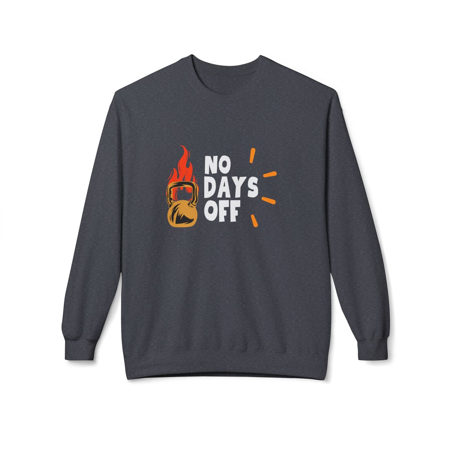 Stay committed to your fitness goals with the No Days Off Crewneck Sweatshirt! Perfect for those who hustle hard every day, this midweight fleece sweatshirt offers the perfect balance of warmth and comfort.