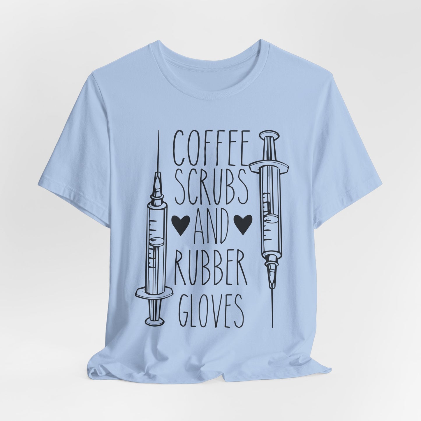 Celebrate the essentials that get you through your day with our "Nurse: Coffee, Scrubs & Rubber Gloves" tee. Whether you're enhancing your own wardrobe or looking for the perfect gift for a fellow nurse, this t-shirt combines comfort, style, and a dose of humor. Get yours today and proudly wear your nursing essentials!