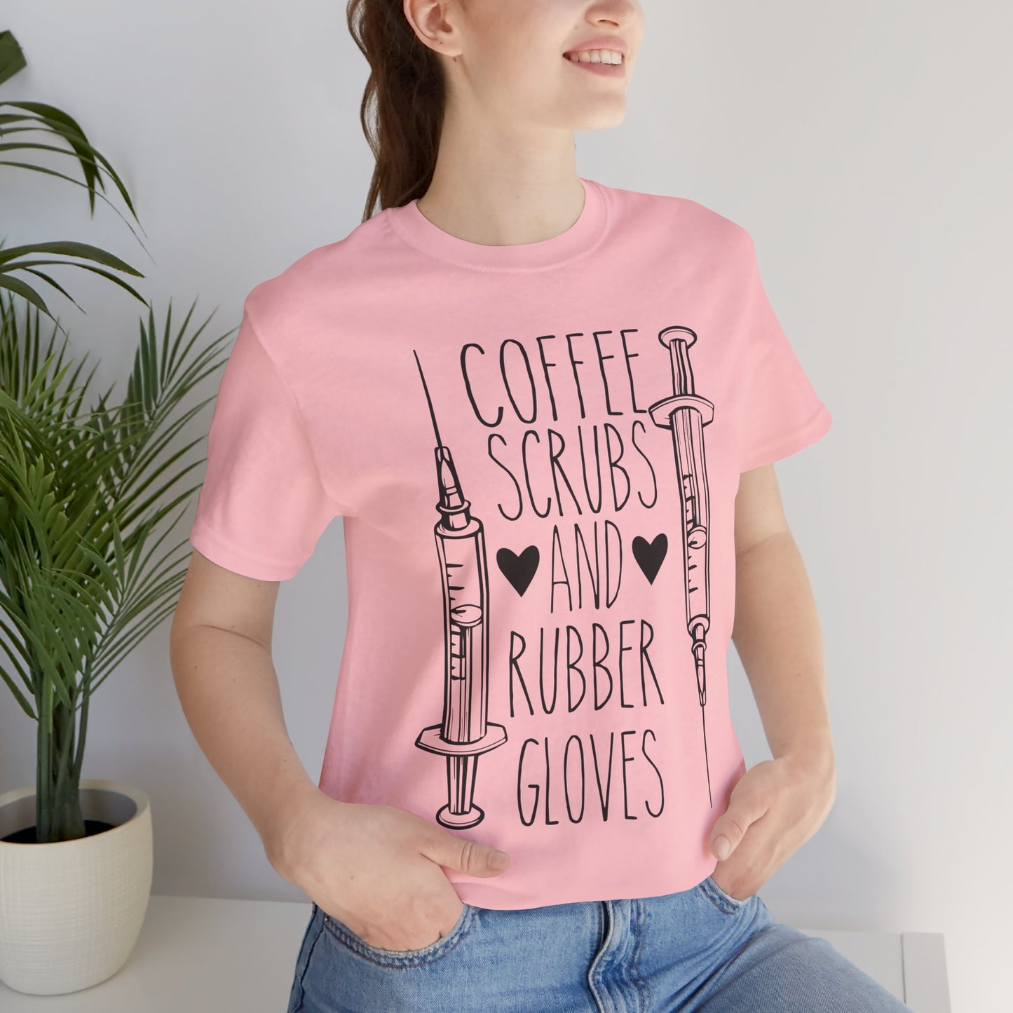 Embrace the essentials of nursing life with our "Nurse: Coffee, Scrubs & Rubber Gloves" Unisex Jersey Short Sleeve Tee. This stylish and comfortable t-shirt is perfect for healthcare professionals who know that these three items are crucial for getting through the day.