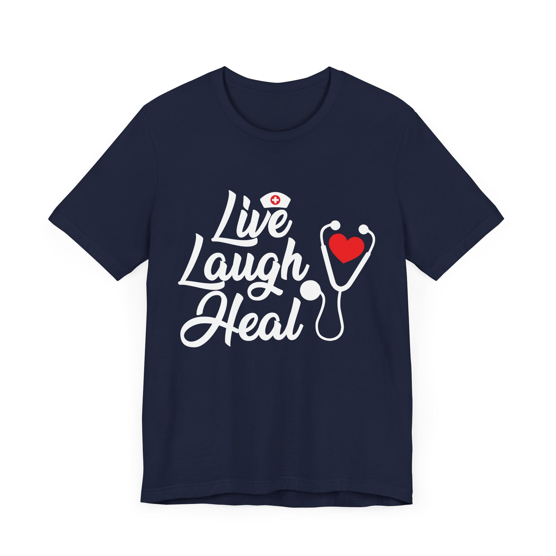 Embrace the heart of nursing with our "Nurse: Live Laugh Heal" Unisex Jersey Short Sleeve Tee. This t-shirt captures the essence of the nursing profession, combining joy, laughter, and healing in a comfortable and stylish design.