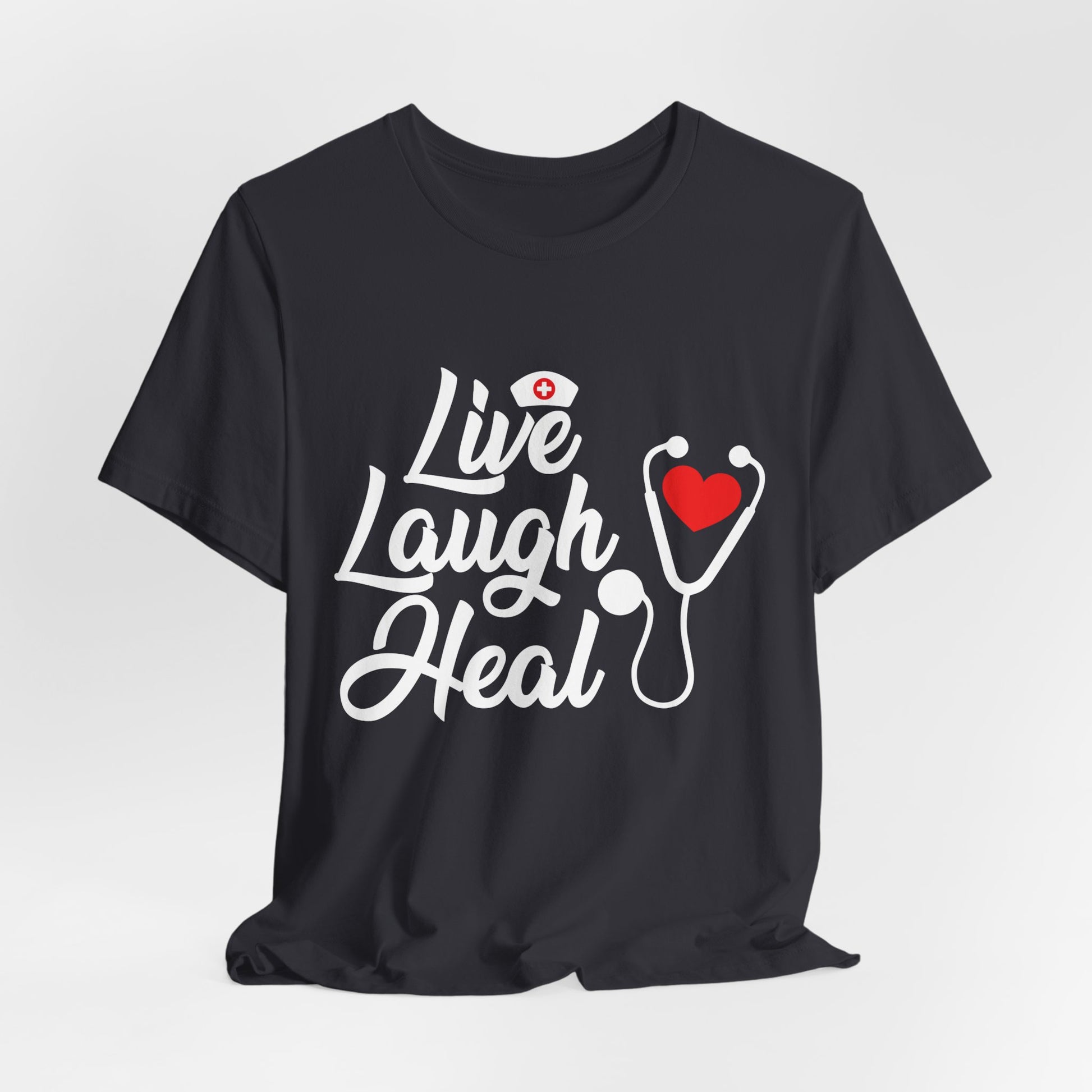 Celebrate the joy and impact of nursing with our "Nurse: Live Laugh Heal" tee. Whether you're treating yourself or gifting it to a fellow nurse, this t-shirt is a stylish and meaningful way to express the essence of the nursing profession. Get yours today and wear your nursing pride with positivity and warmth!