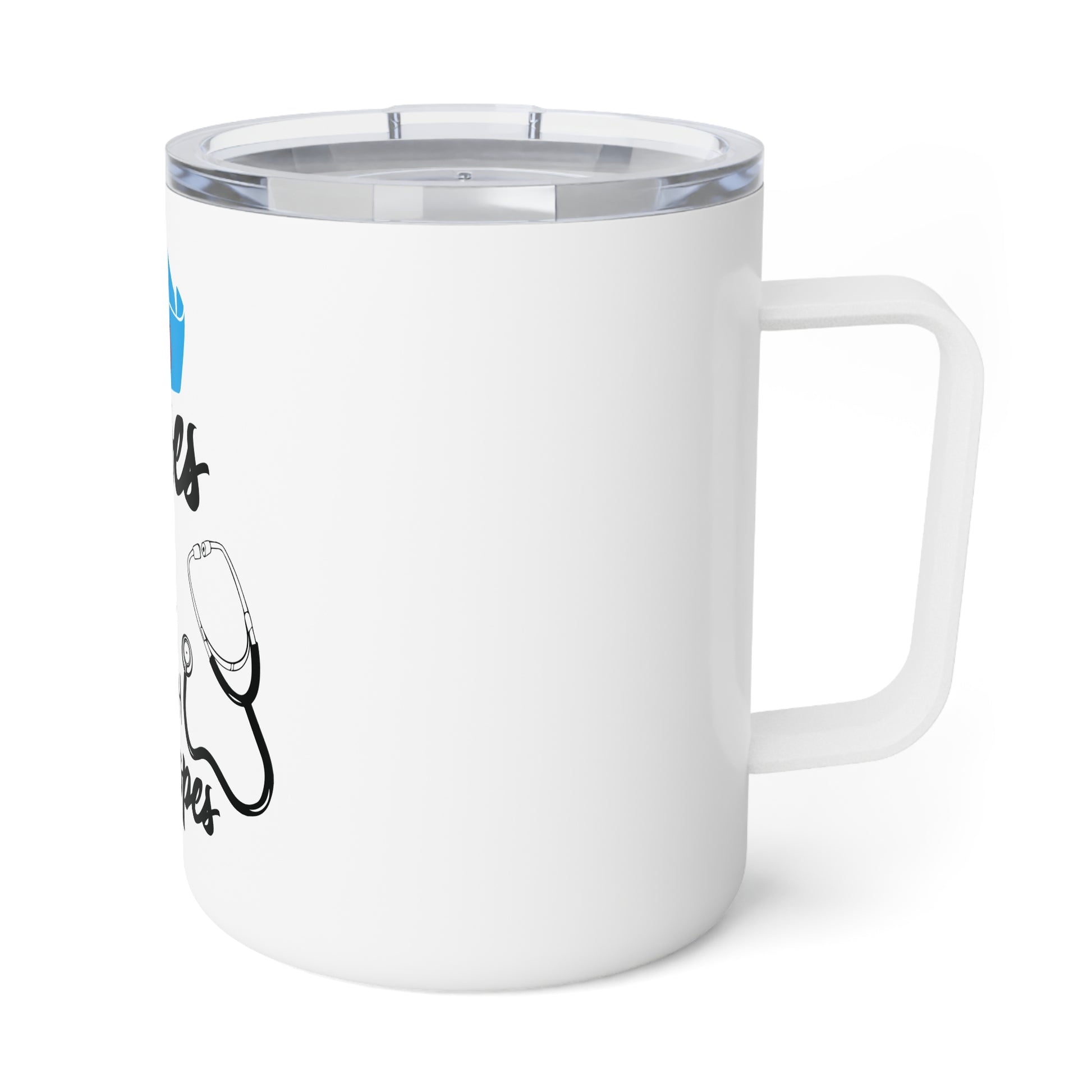 Celebrate the incredible work of nurses with our "Nurses Are Angels With Stethoscopes" Insulated Coffee Mug. This 10oz travel-friendly mug combines practicality with a heartfelt message, making it a perfect gift for the healthcare heroes in your life.