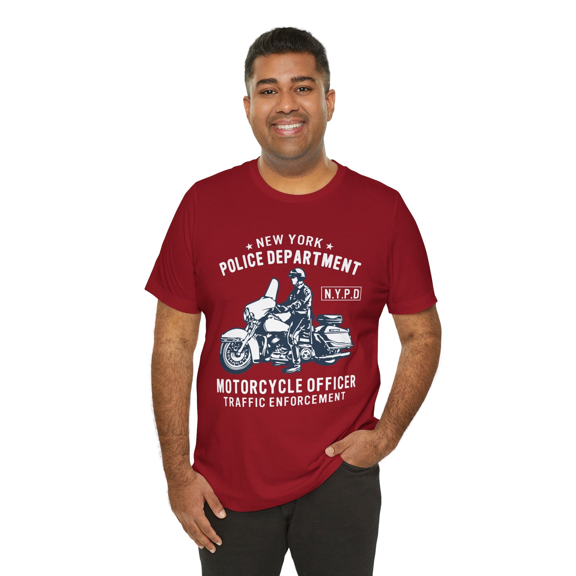 Honor the bravery and dedication of New York's finest with our "NY Police Department, Motorcycle Officer" Unisex Jersey Short Sleeve Tee. This tee is a tribute to the men and women who patrol the streets of New York on two wheels, combining style, comfort, and a strong sense of duty.